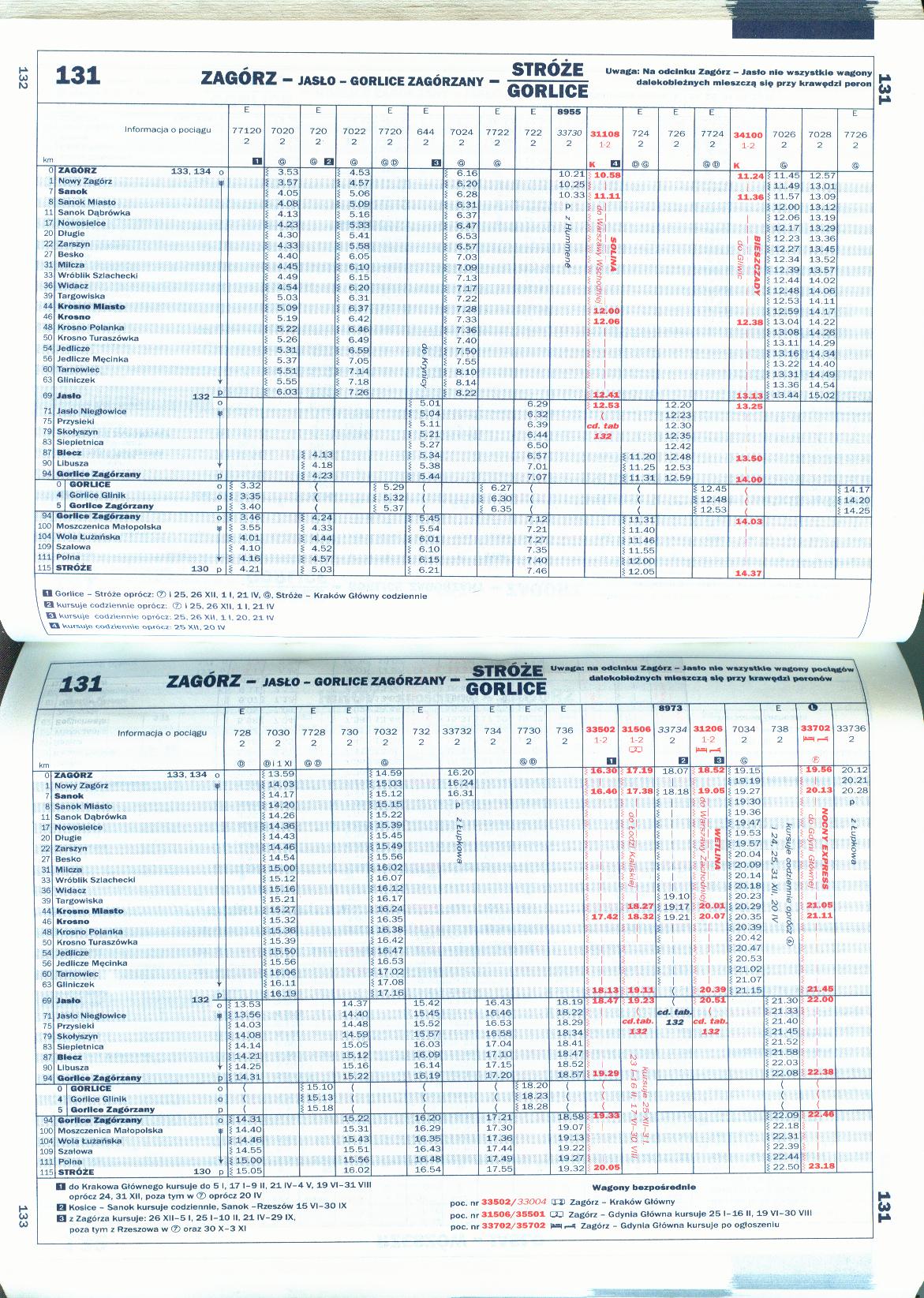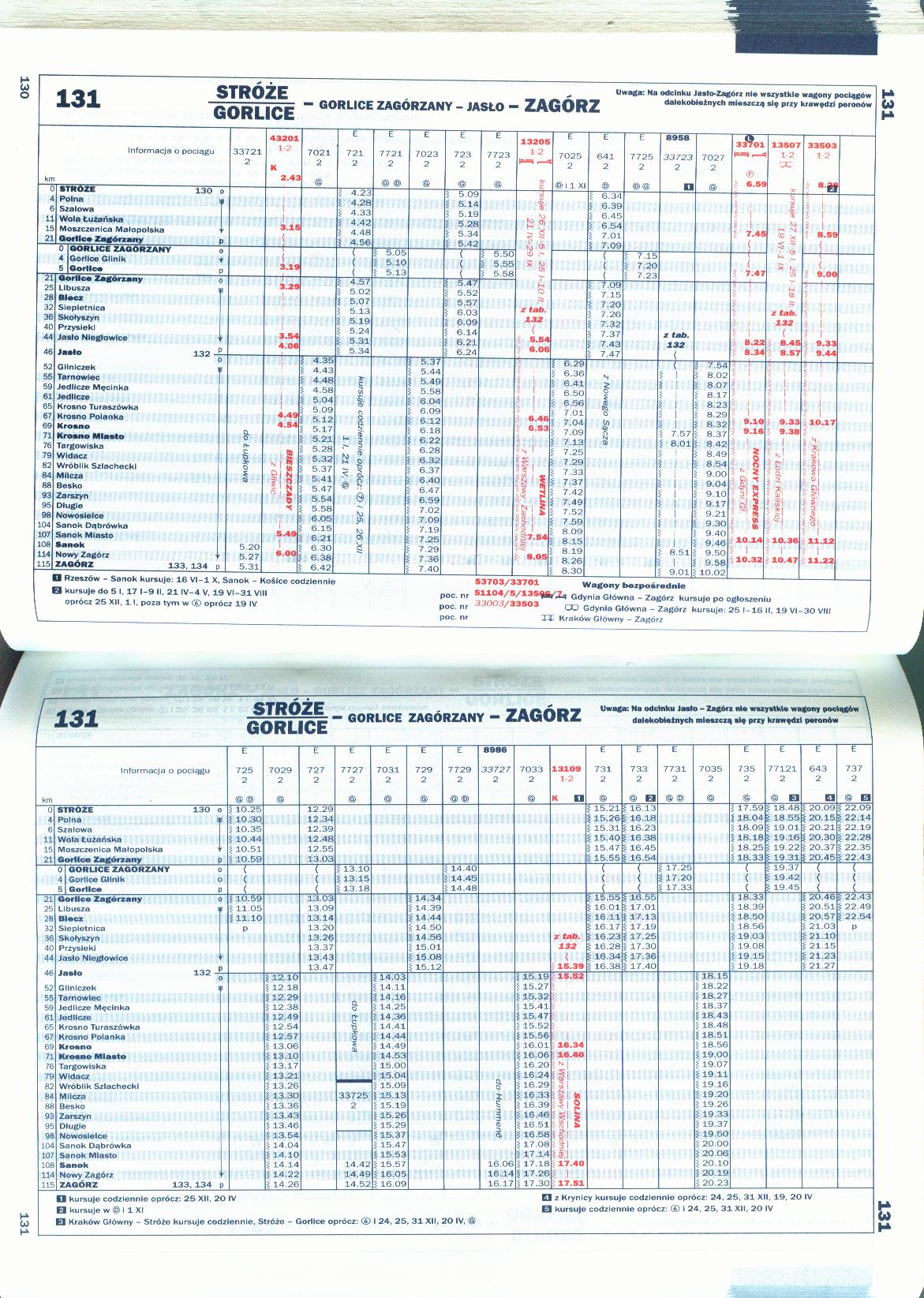 131 Stróże/Gorlice – Gorlice Zagórzany – Jasło – Zagórz str. 130