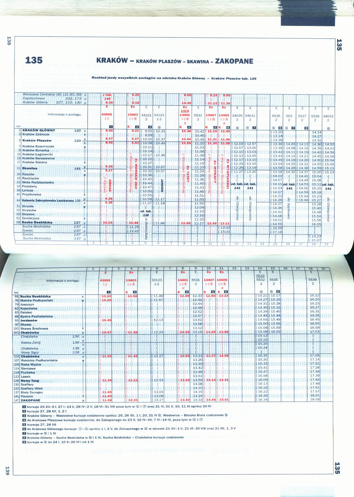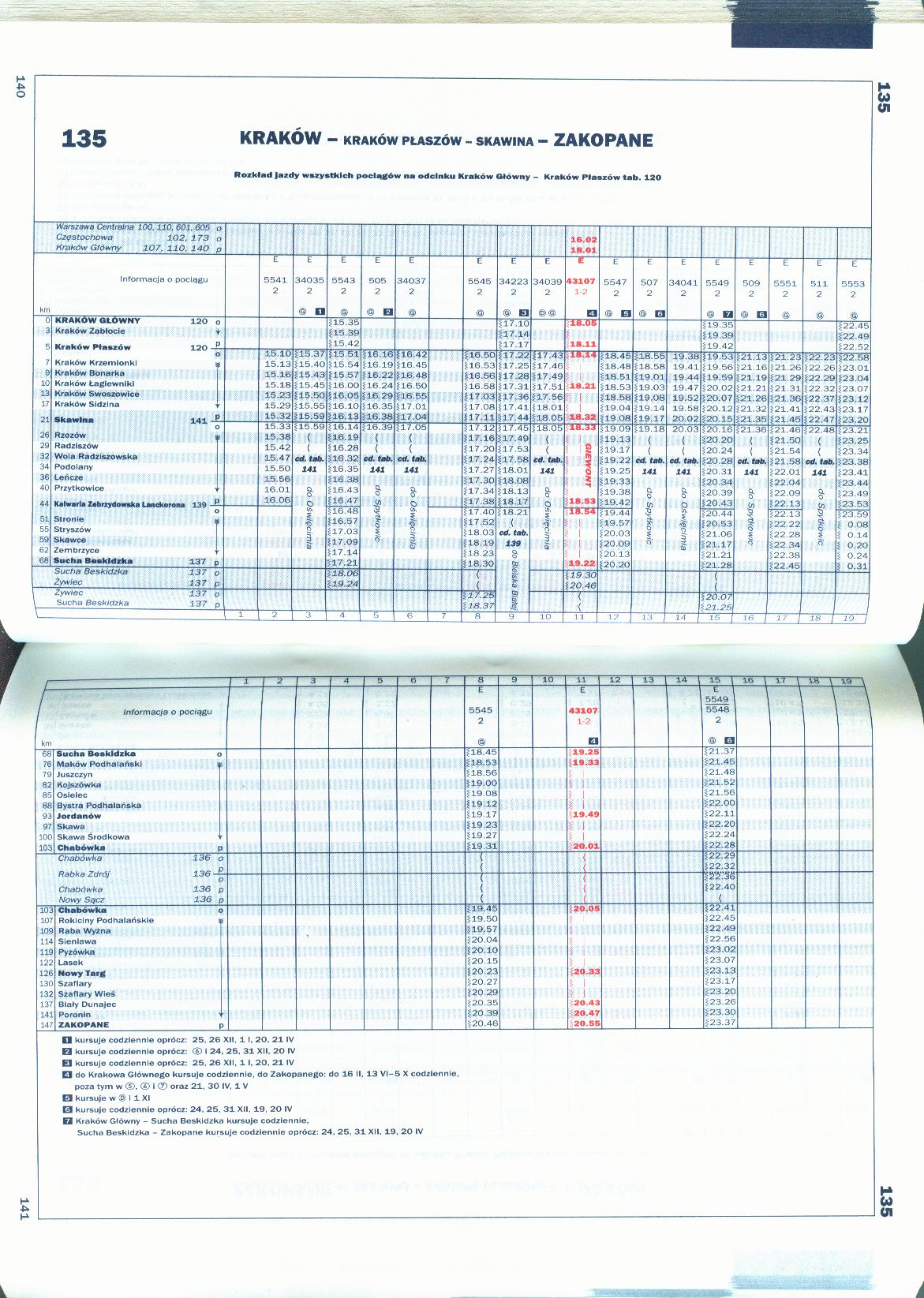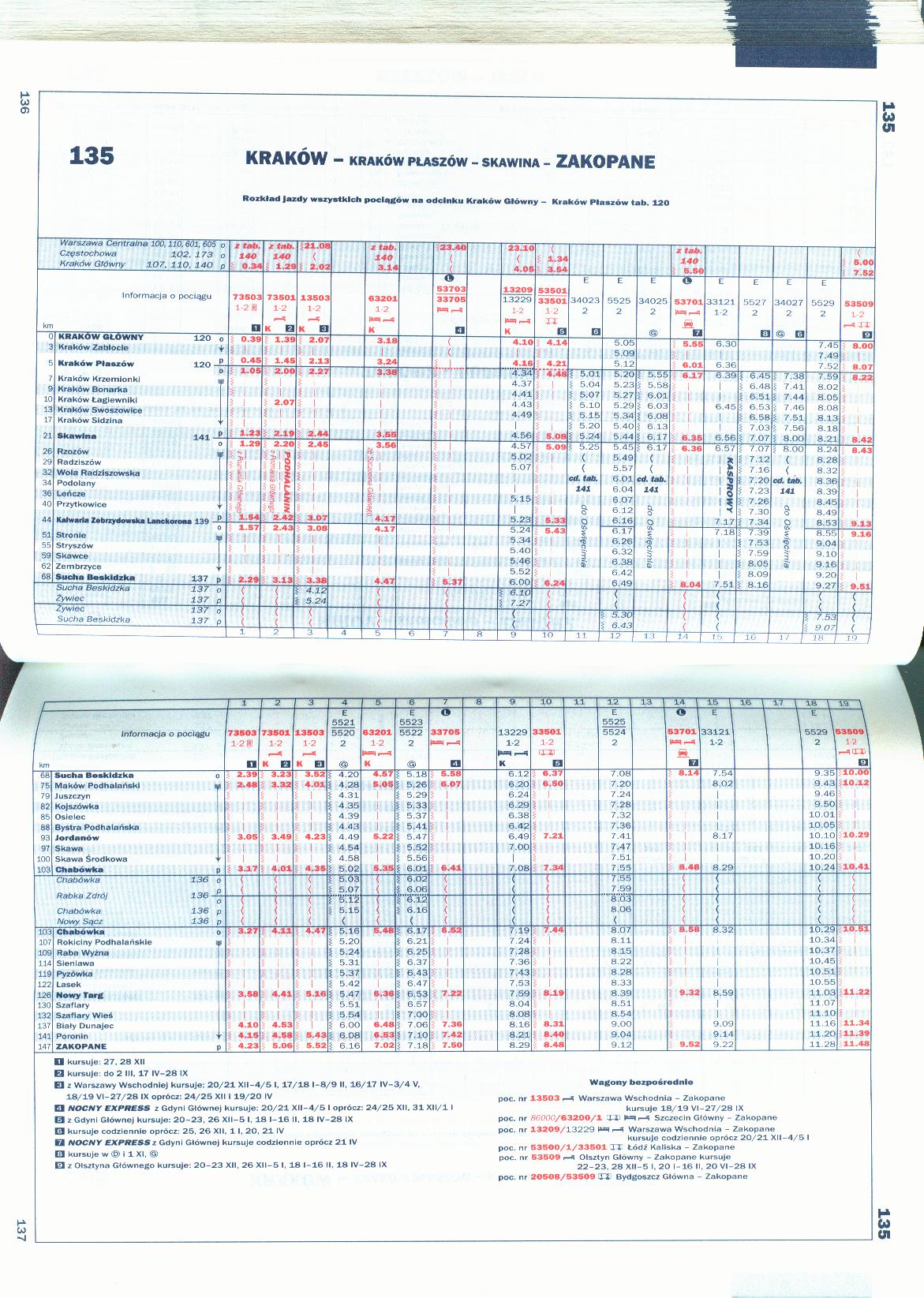 135 Kraków – Kraków Płaszów – Skawina – Zakopane str. 136