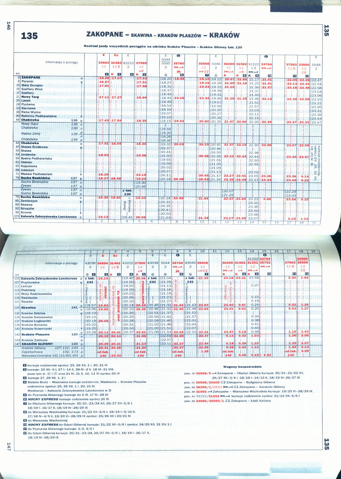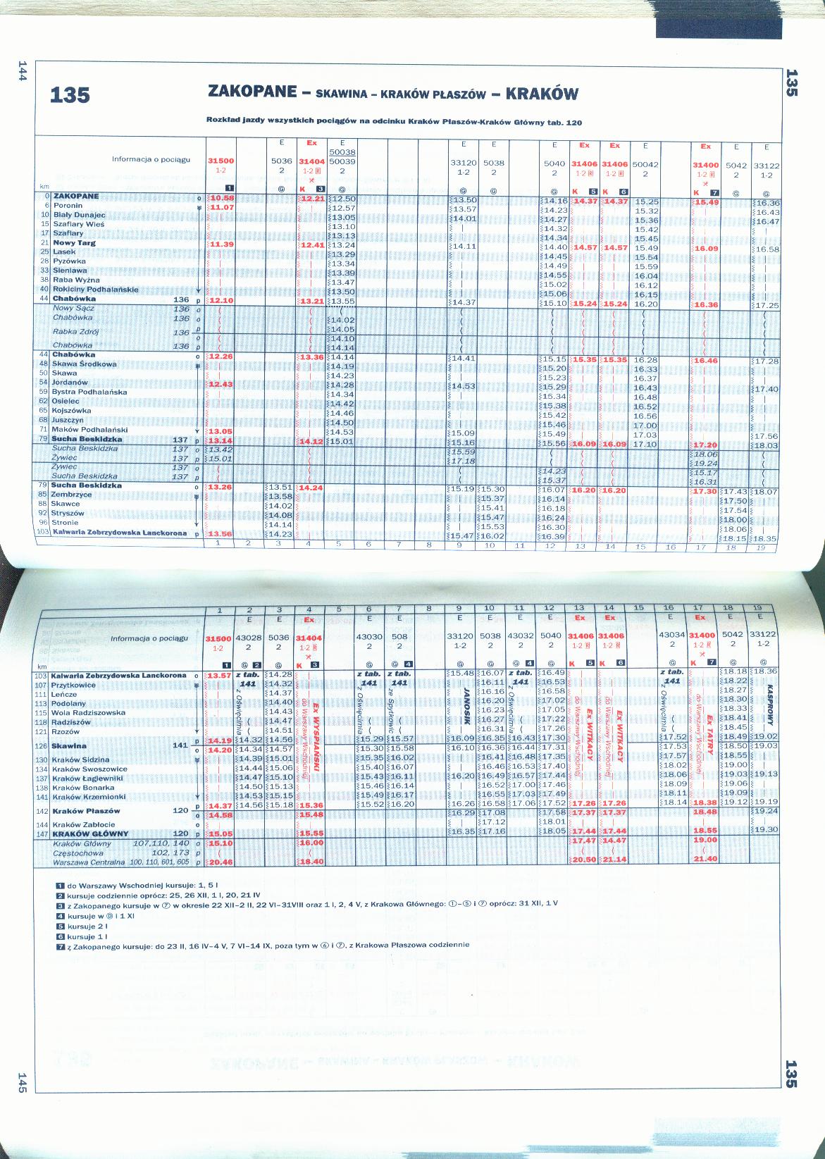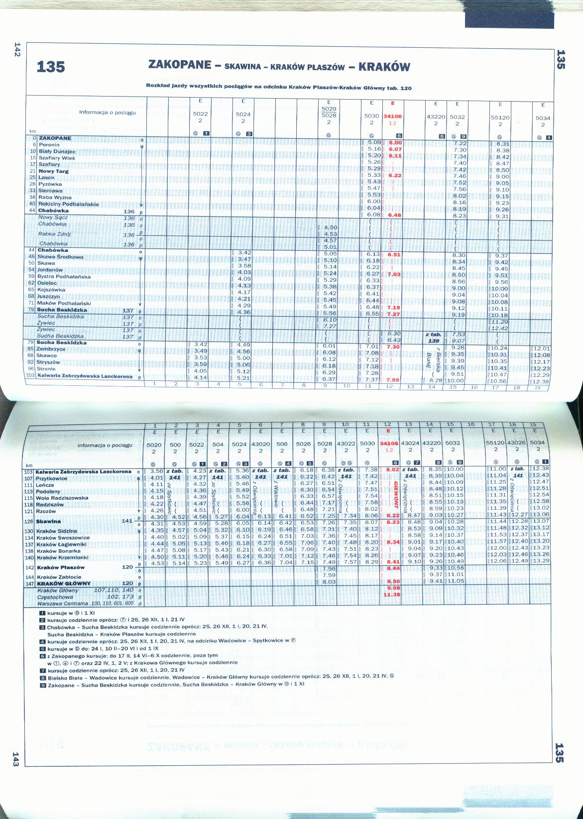 135 Kraków – Kraków Płaszów – Skawina – Zakopane str. 136