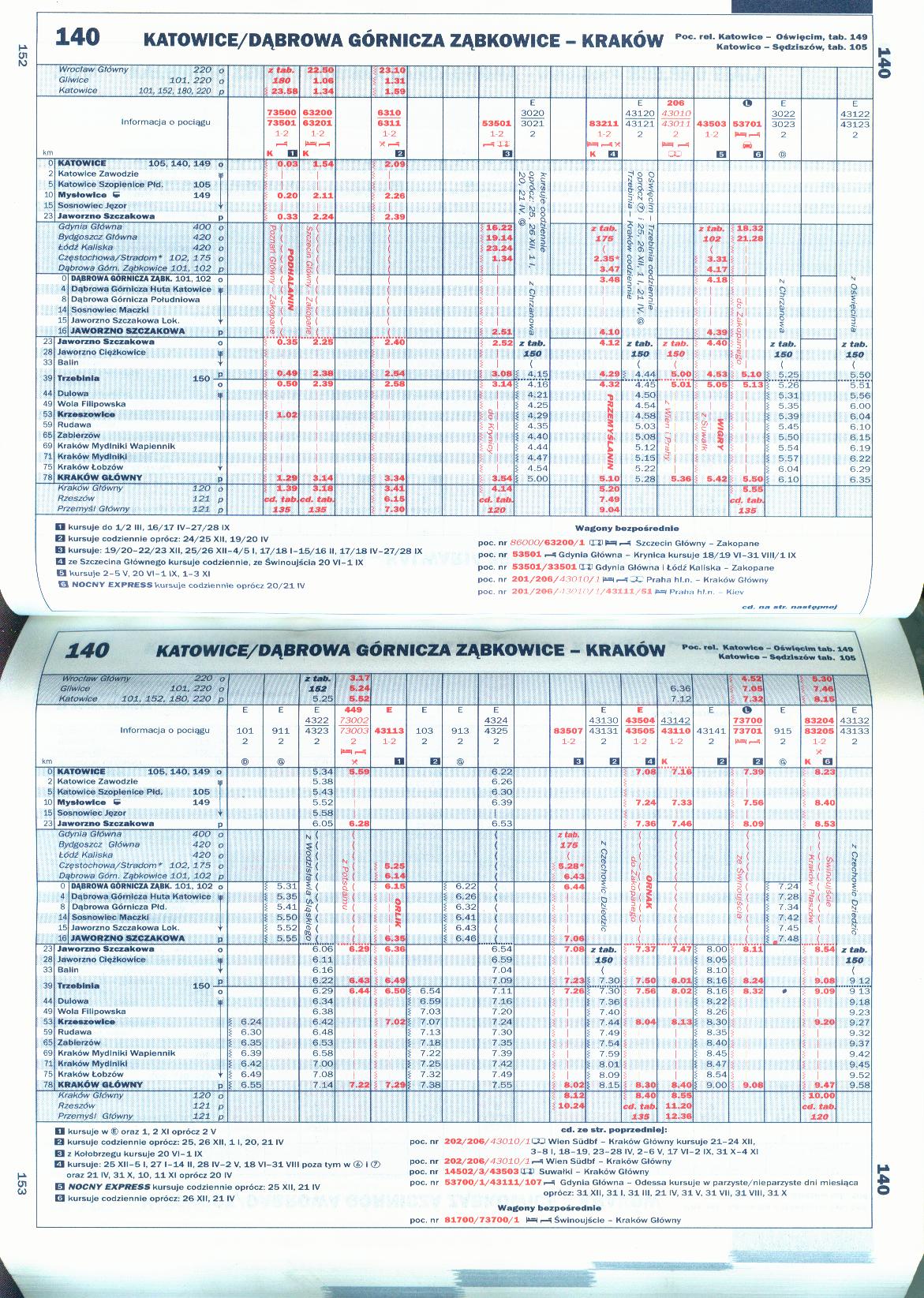 140 Katowice/Dąbrowa Górnicza Ząbkowice – Kraków str. 152
