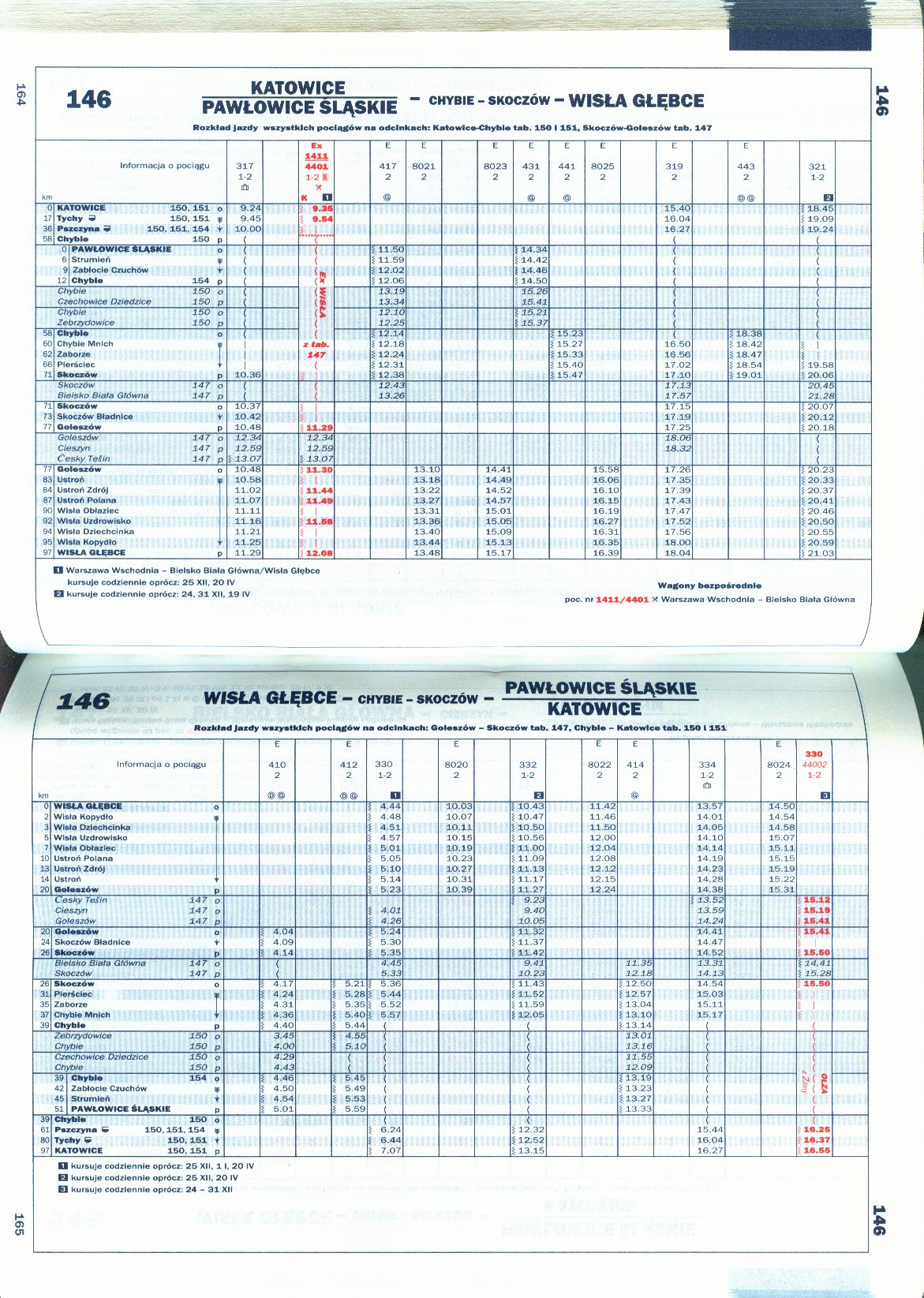146 Katowice/Pawłowice Śl. – Chybie – Skoczów – Wisła Głębce str. 162