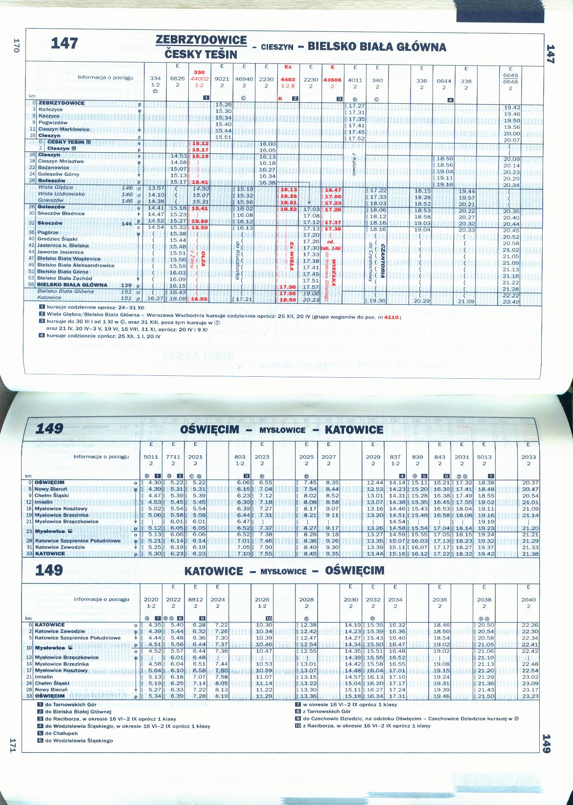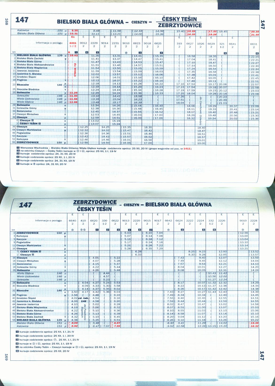 147 Bielsko Biała Gł. – Cieszyn – Český Těšín/Zebrzydowice str. 166