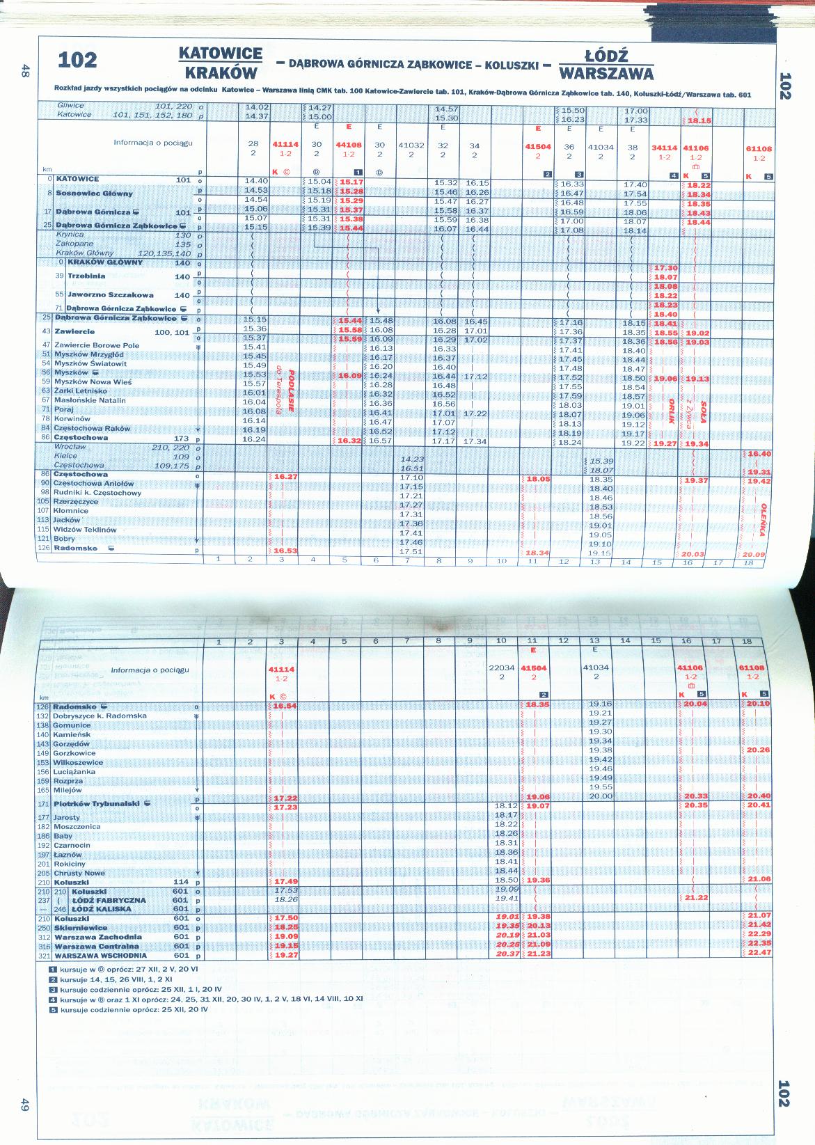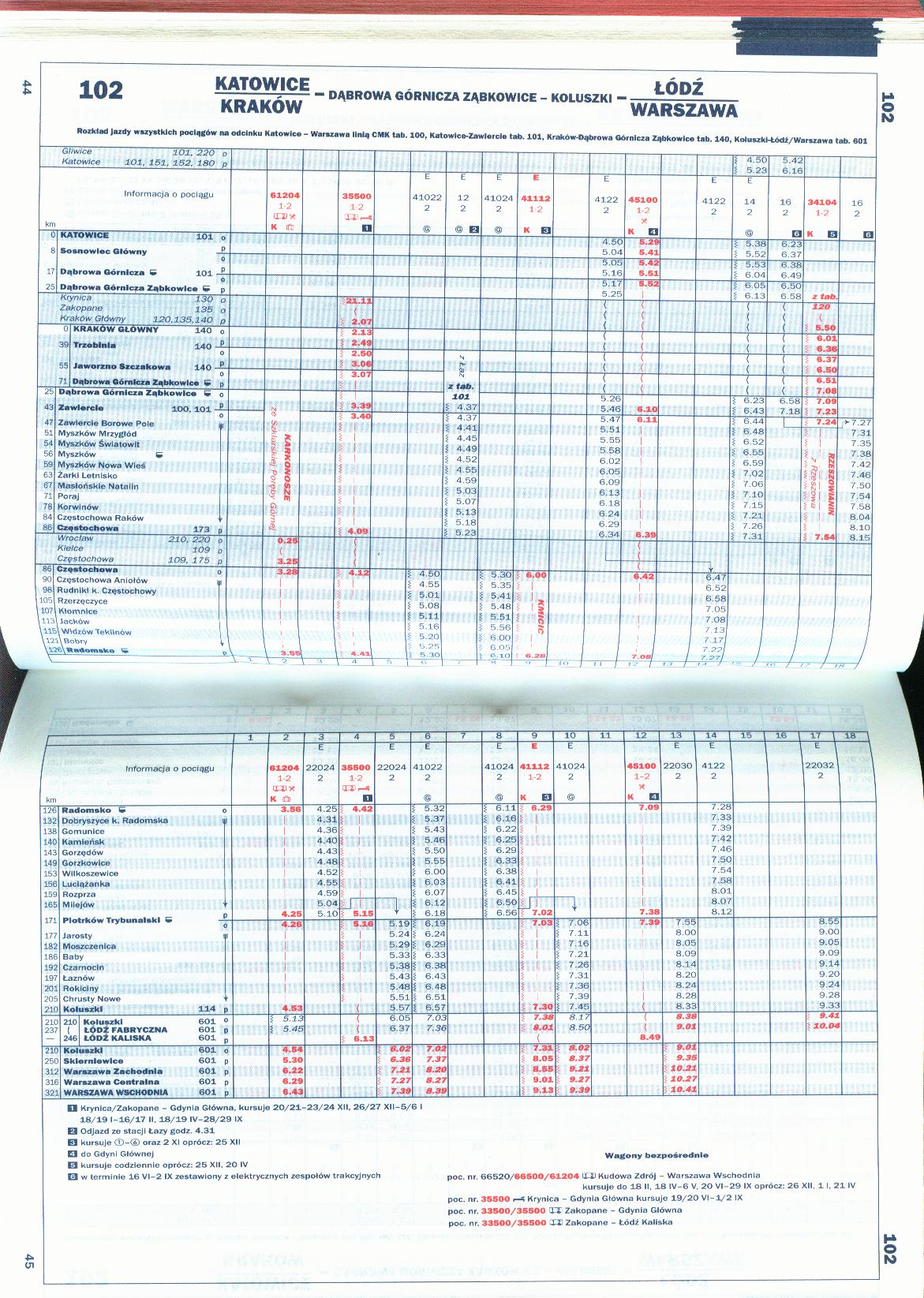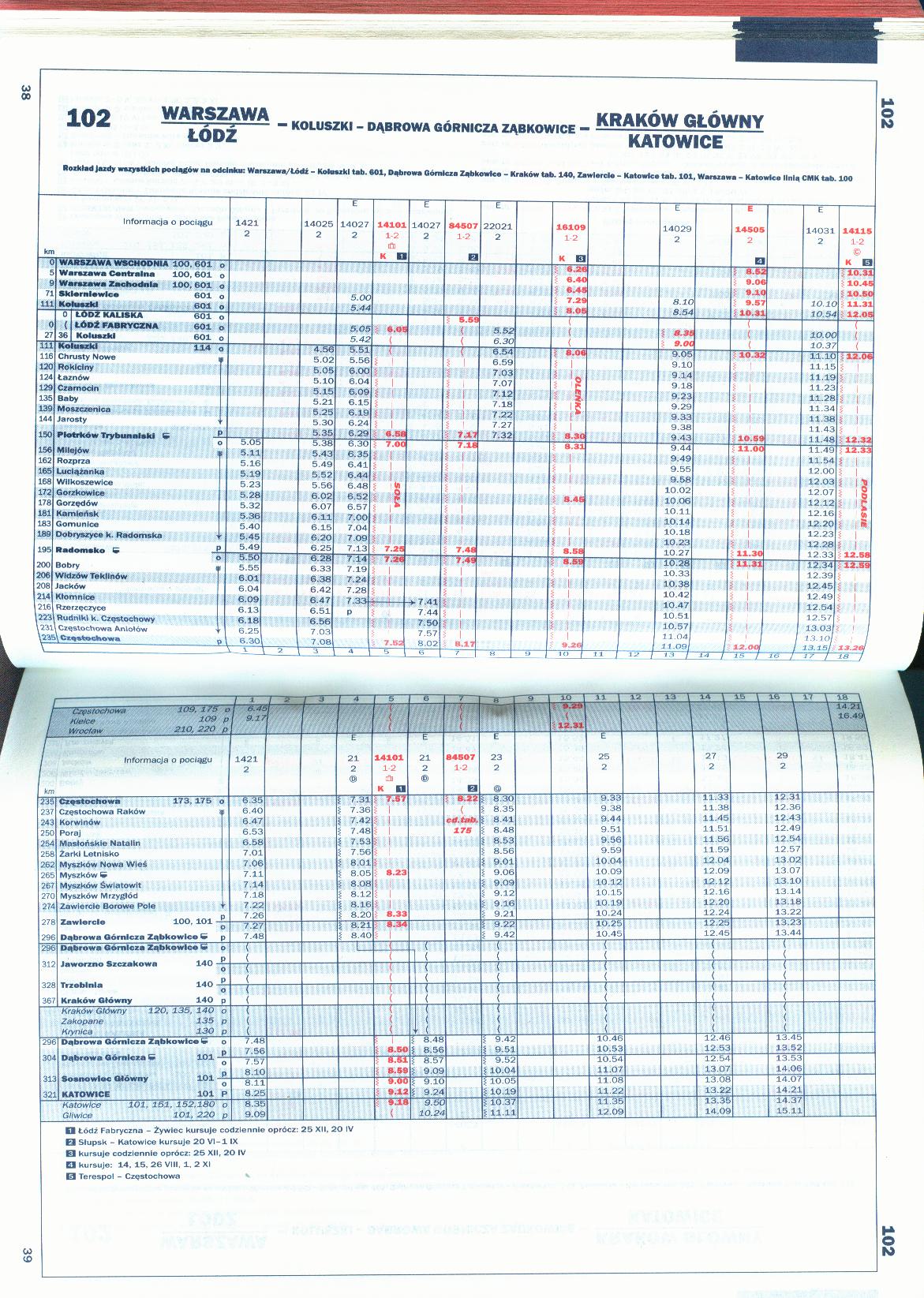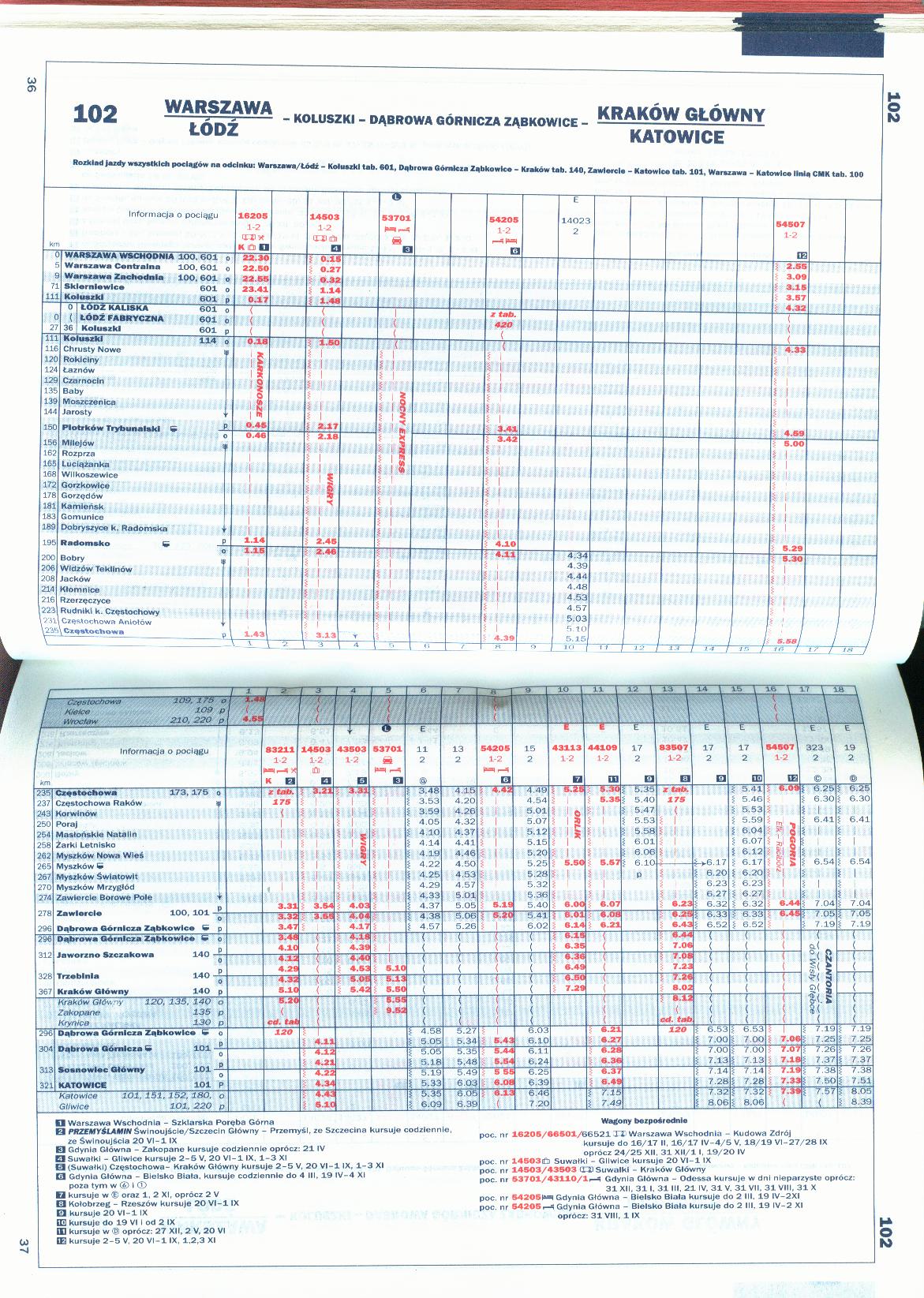 102 Warszawa/Łódź – Koluszki – Dąbrowa Górnicza Ząbkowice – Kraków Gł./Katowice str. 36