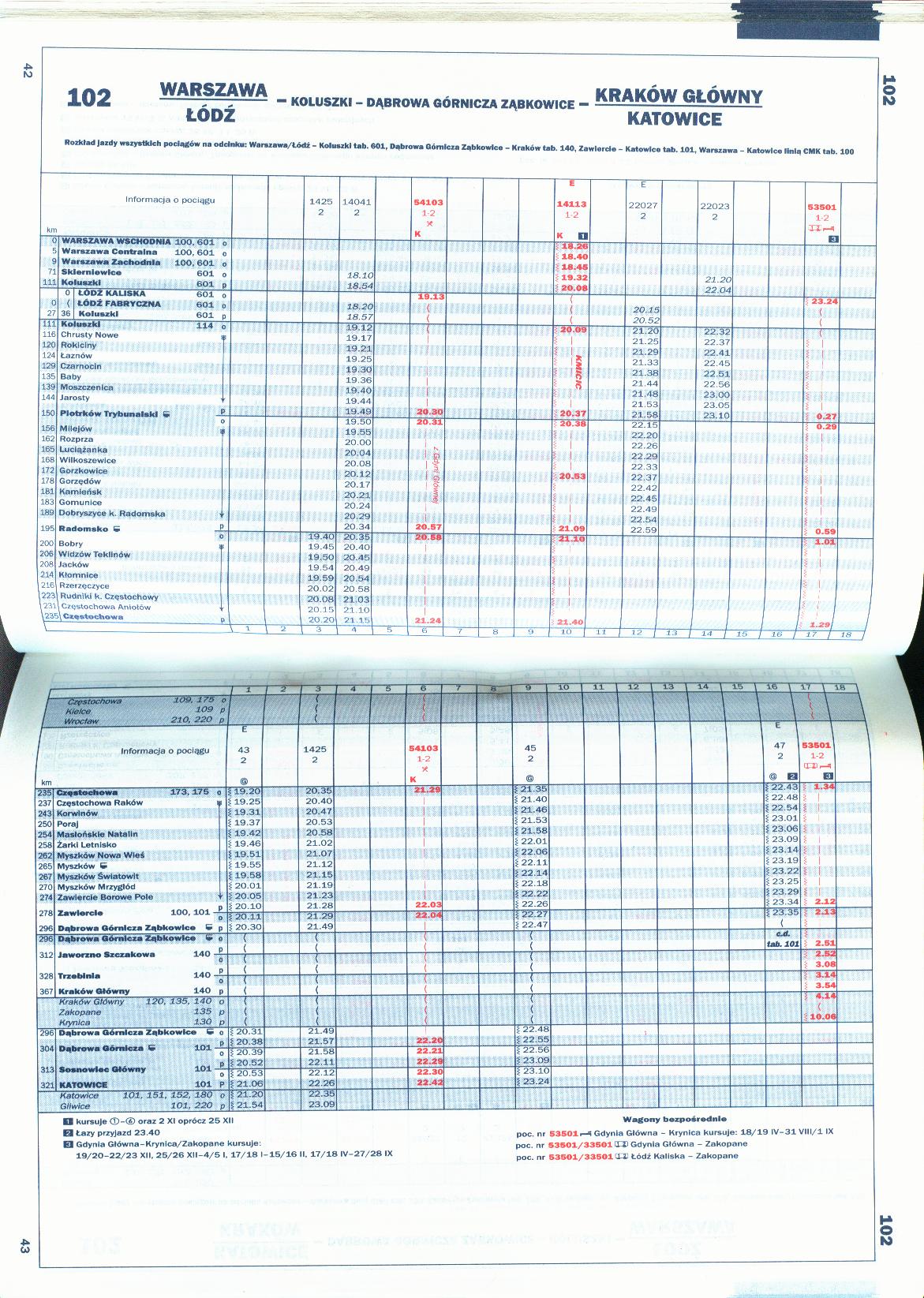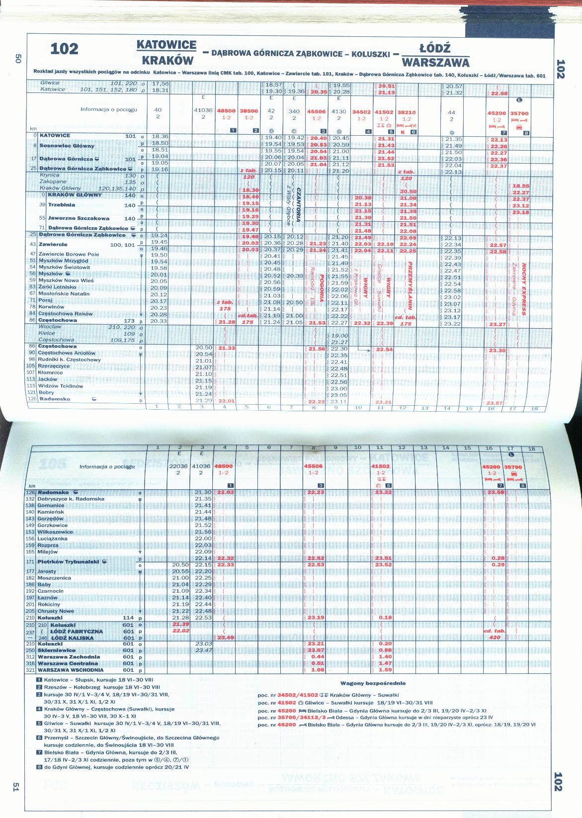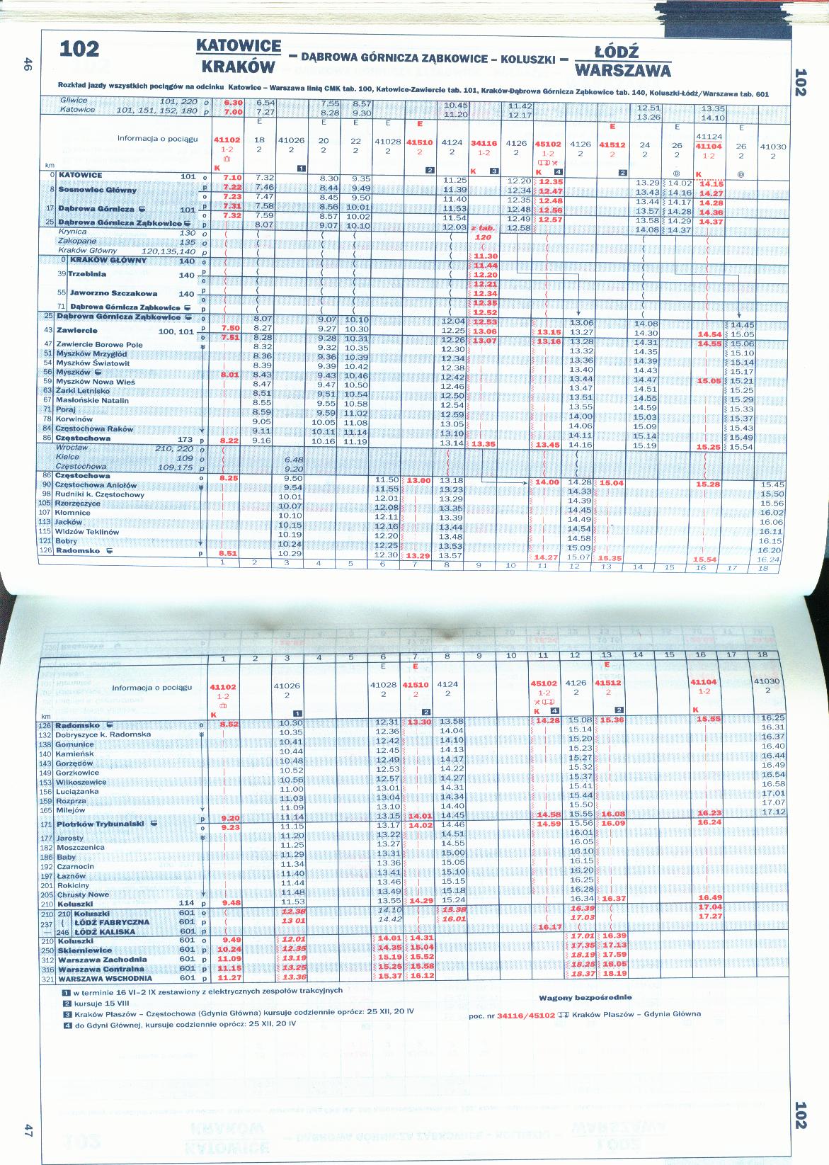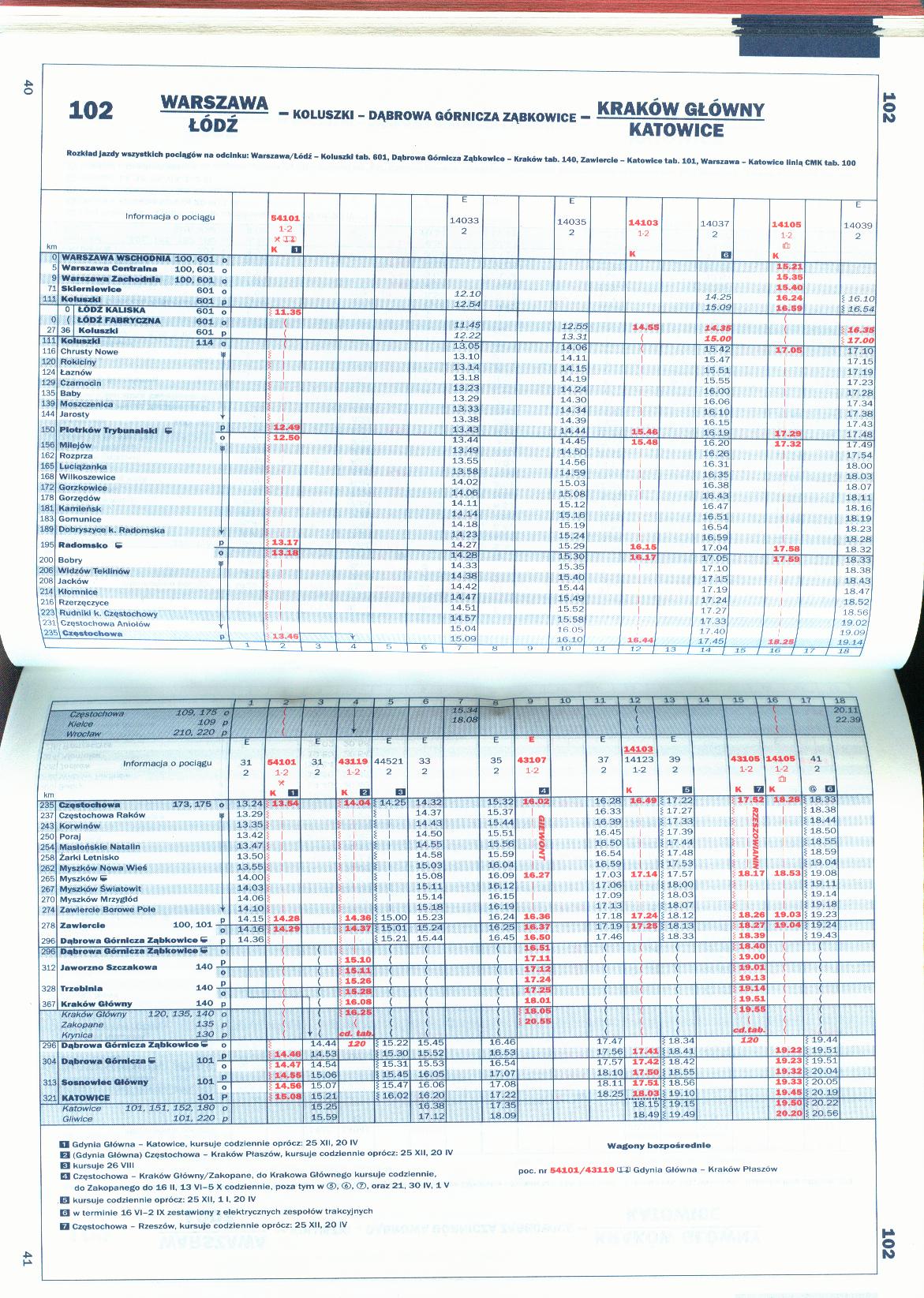 102 Warszawa/Łódź – Koluszki – Dąbrowa Górnicza Ząbkowice – Kraków Gł./Katowice str. 36