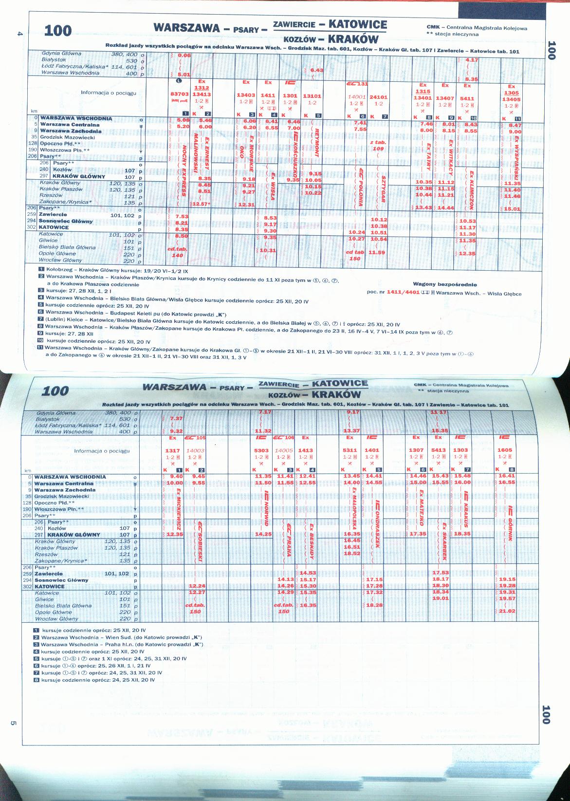 100 Warszawa – Psary – (Zawiercie – Katowice)/(Kozłów – Kraków) str. 4 - 5