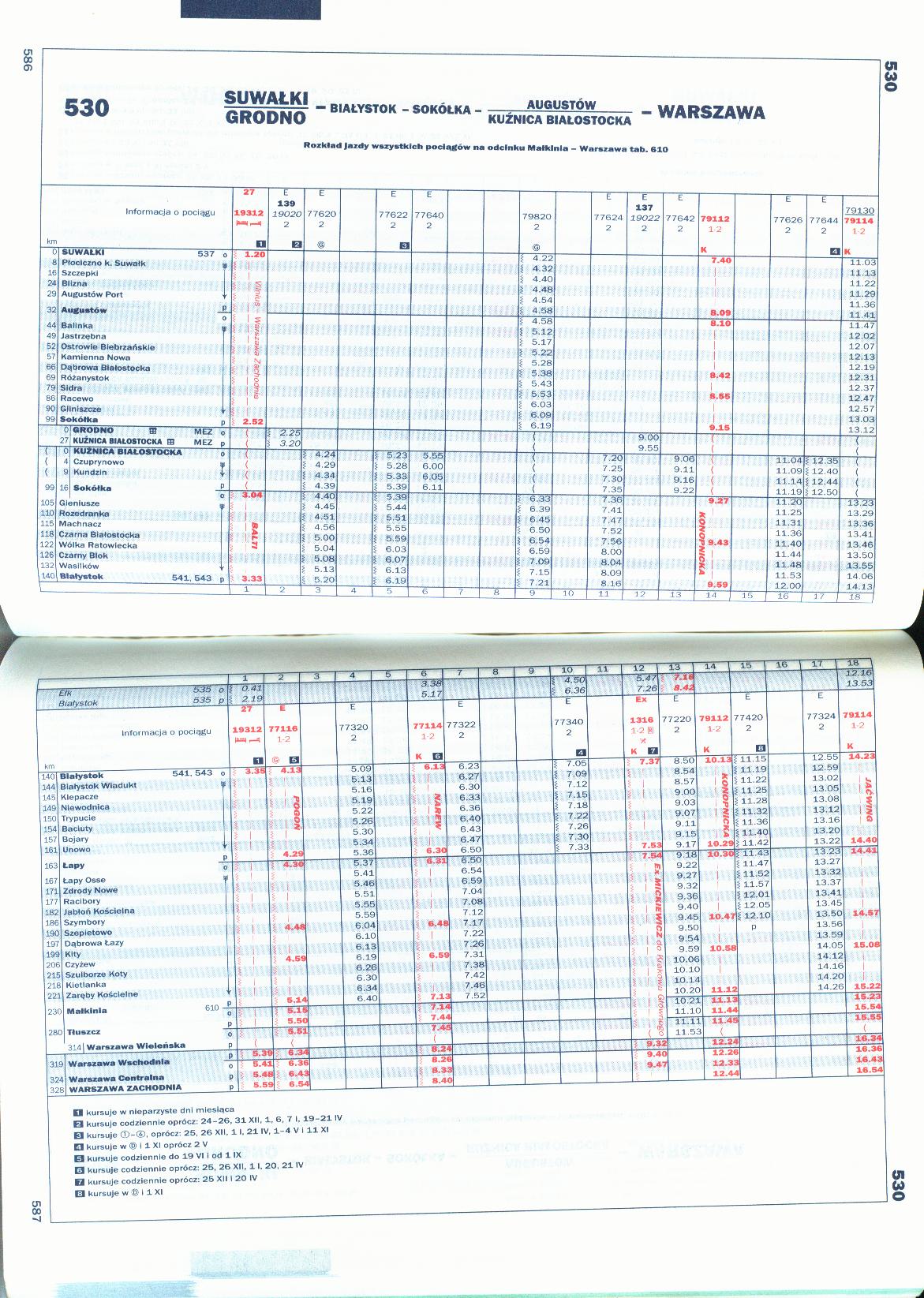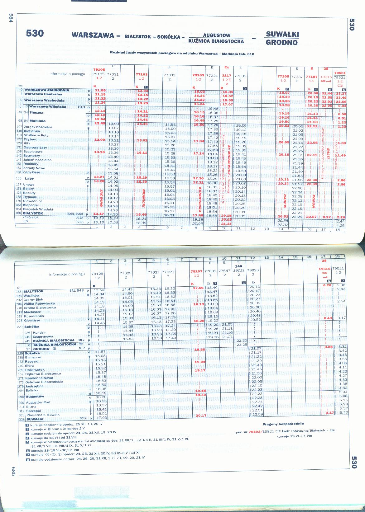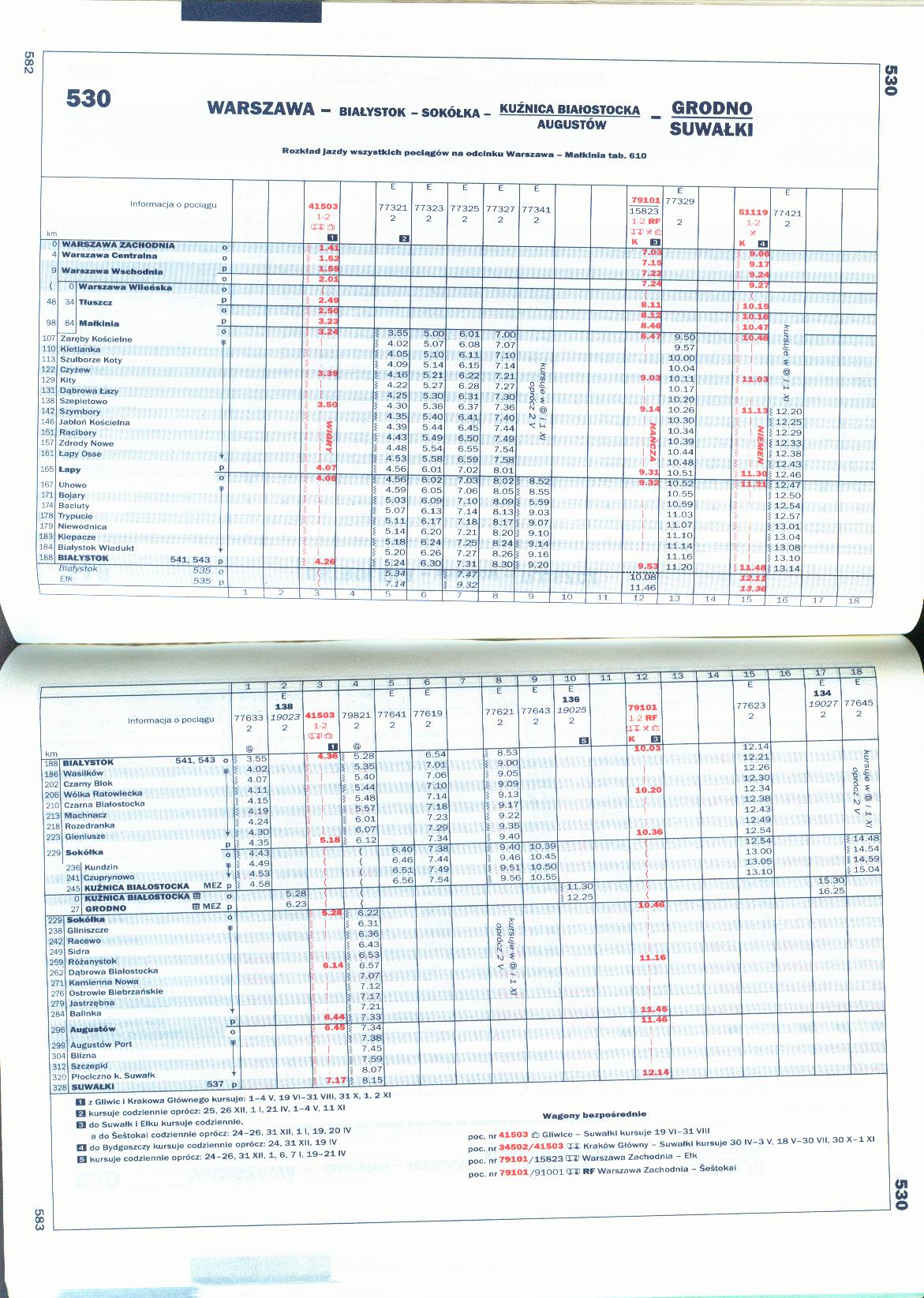530 Warszawa – Białystok – Sokółka – (Kuźnica Białostocka – Grodno)/(Augustów – Suwałki) str. 582 - 583