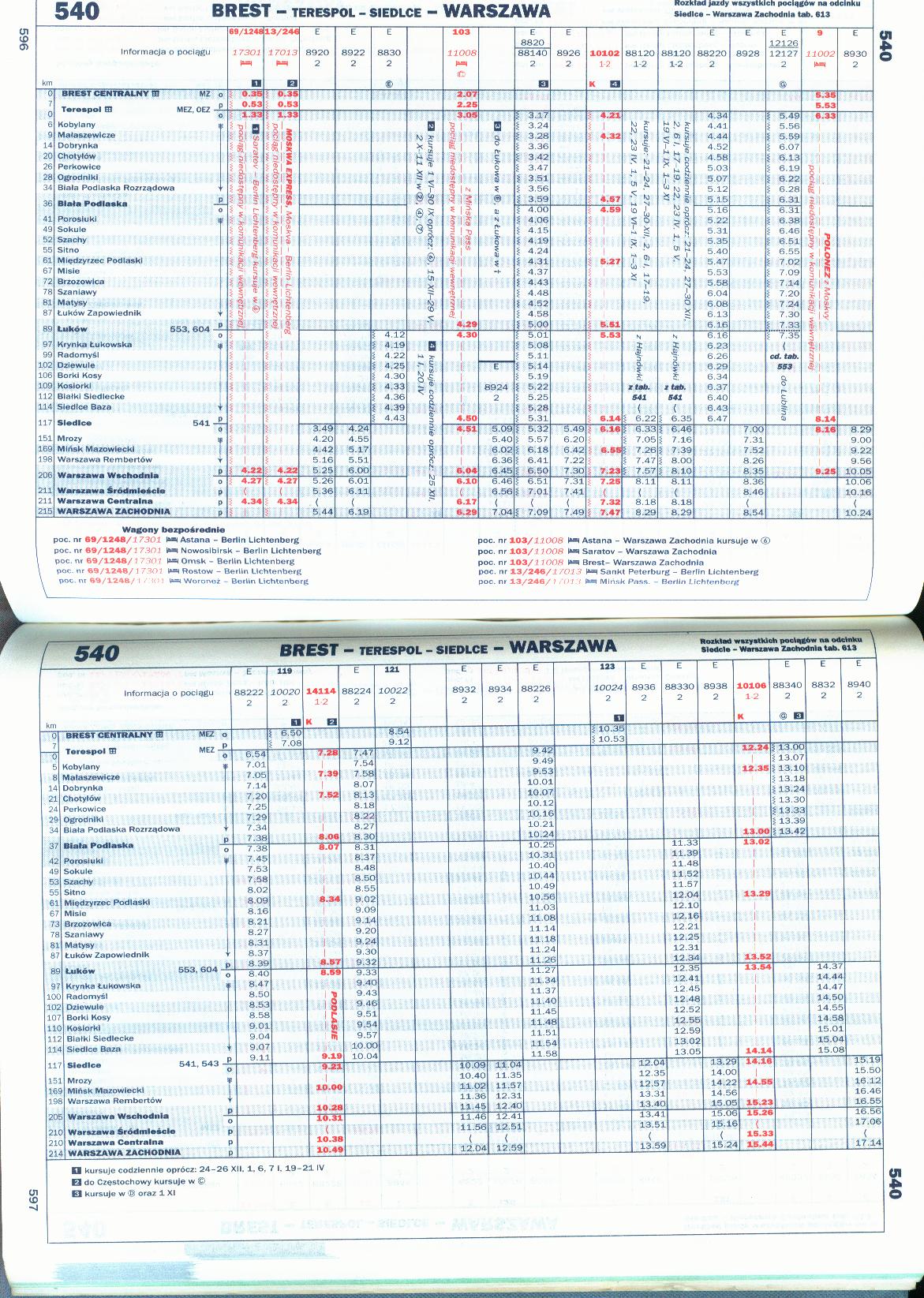 540 Warszawa – Siedlce – Terespol – Brest str. 592 - 593