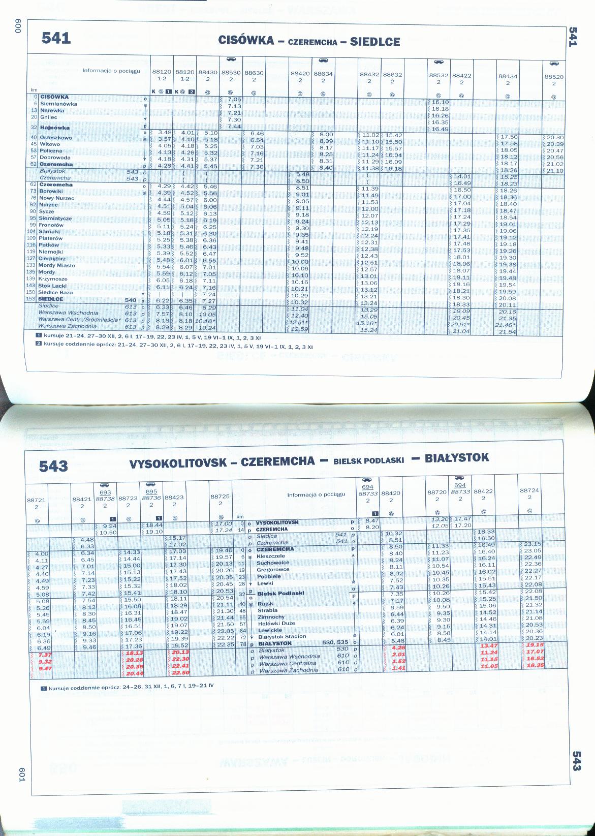 543 Vysokolitovsk – Czeremcha – Bielsk Podlaski – Białystok str. 600 - 601