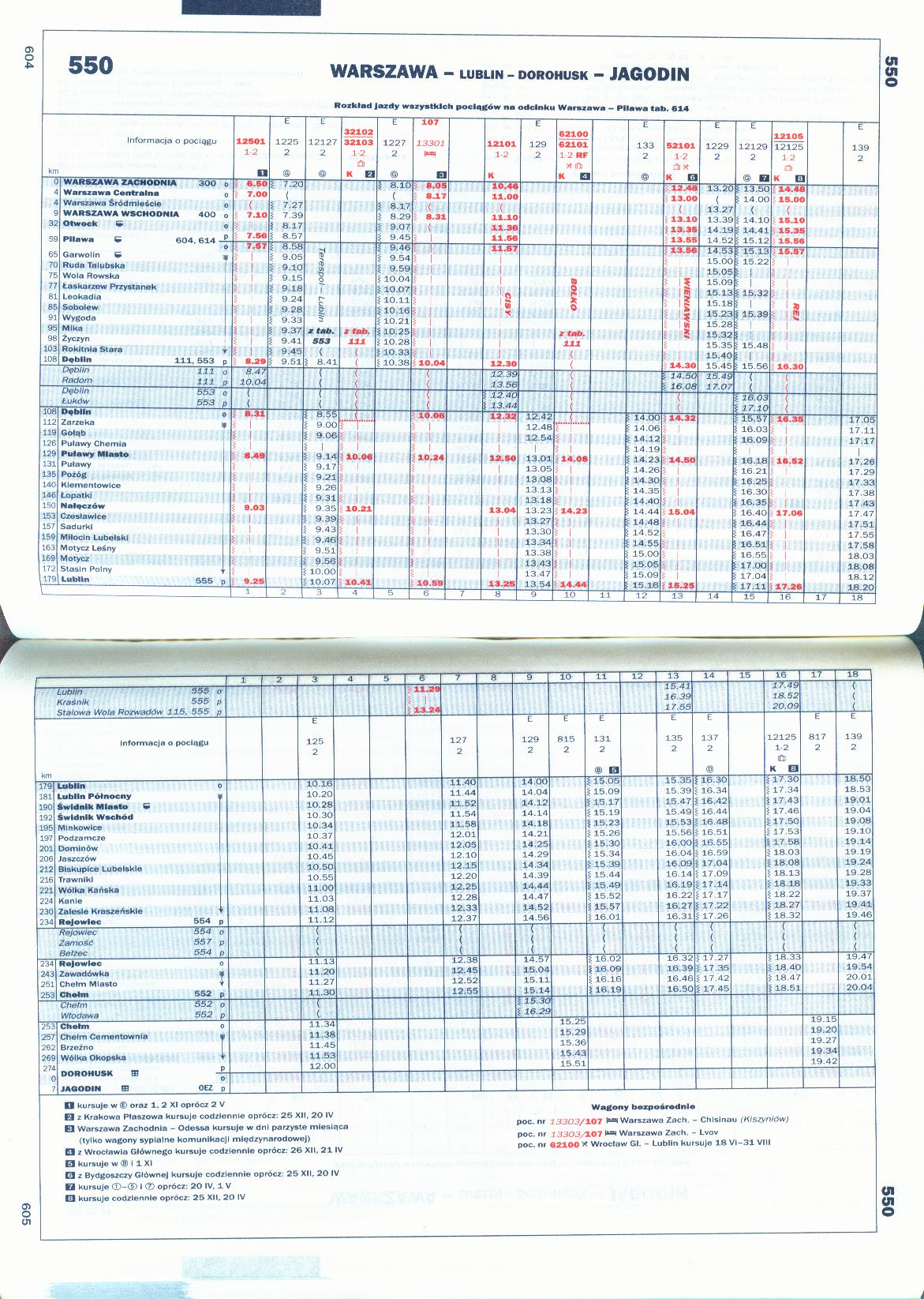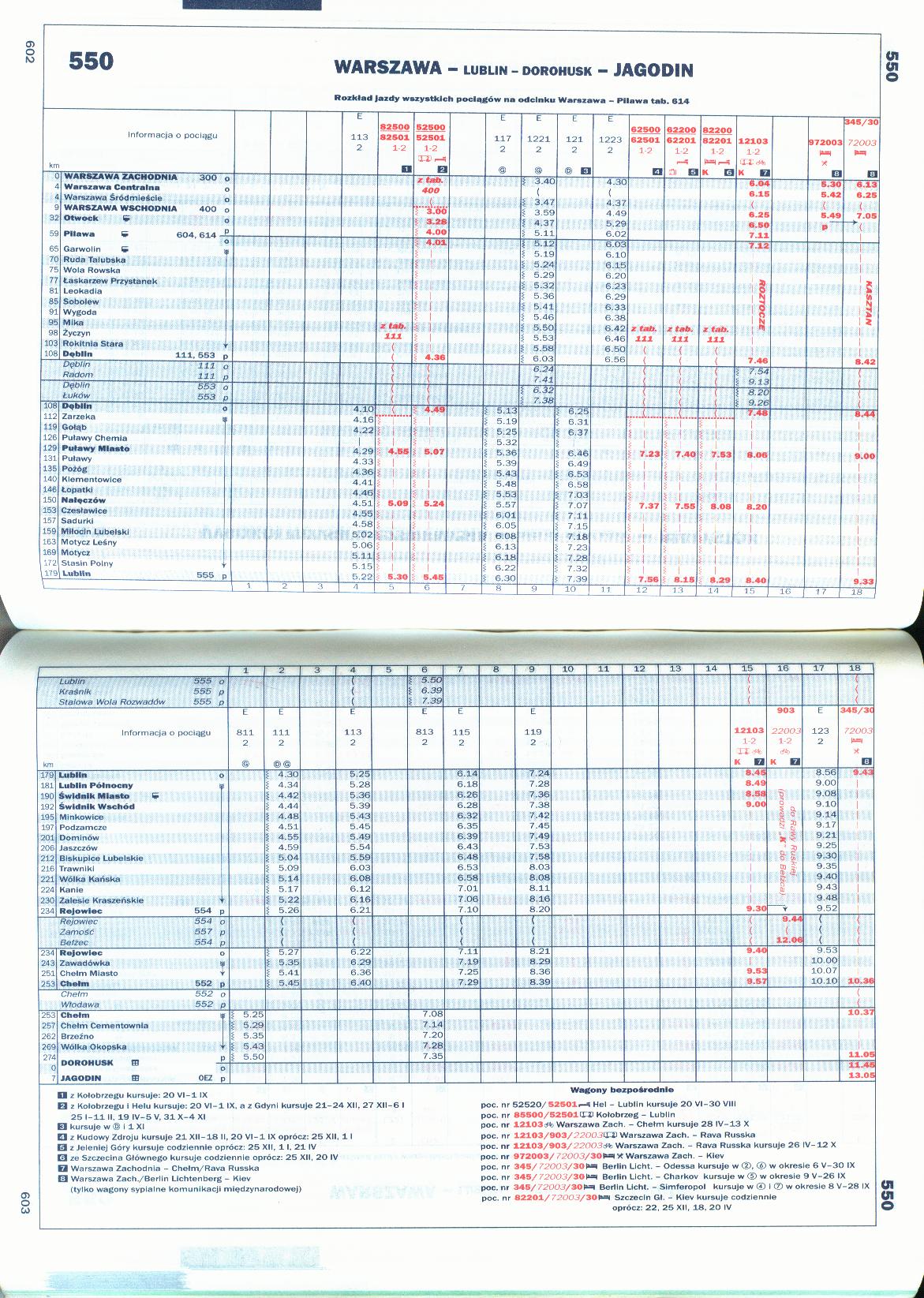 550 Warszawa – Lublin – Dorohusk – Jagodin str. 602 - 603