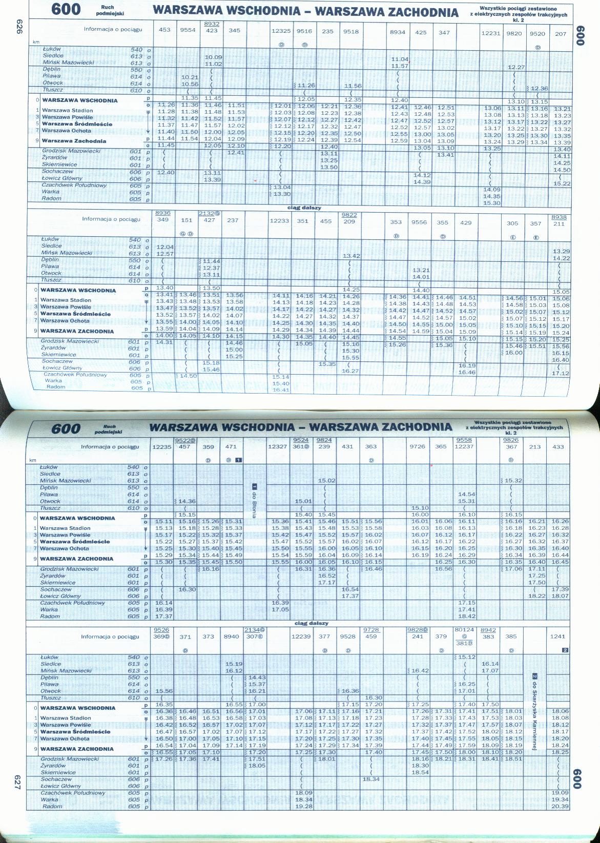 600 Warszawa Wschodnia – Warszawa Zachodnia str. 624 - 625