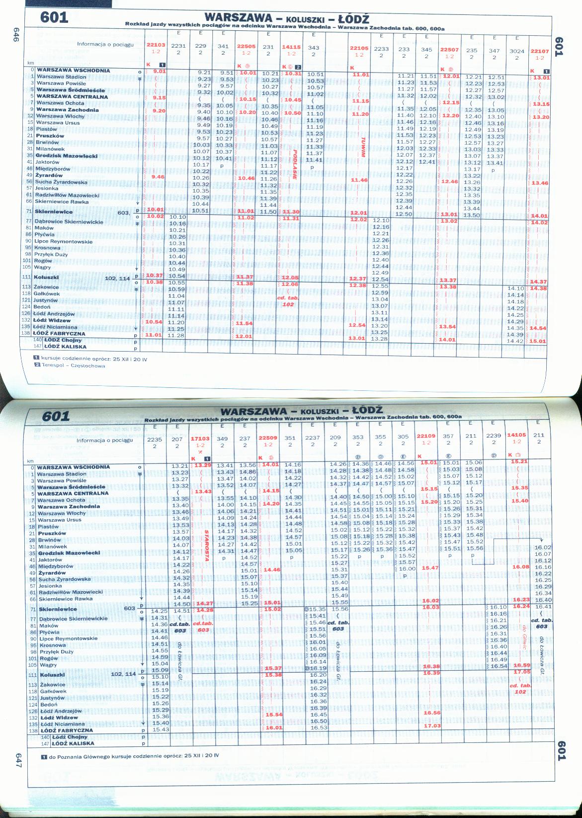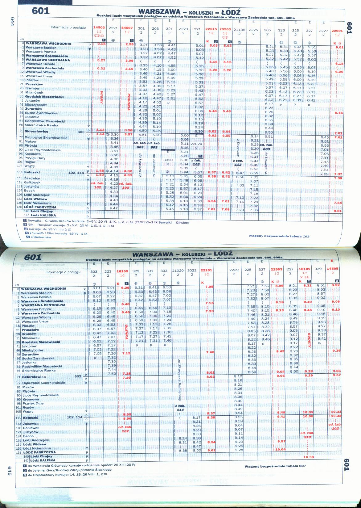 601 Warszawa – Koluszki – Łódź str. 644 - 645