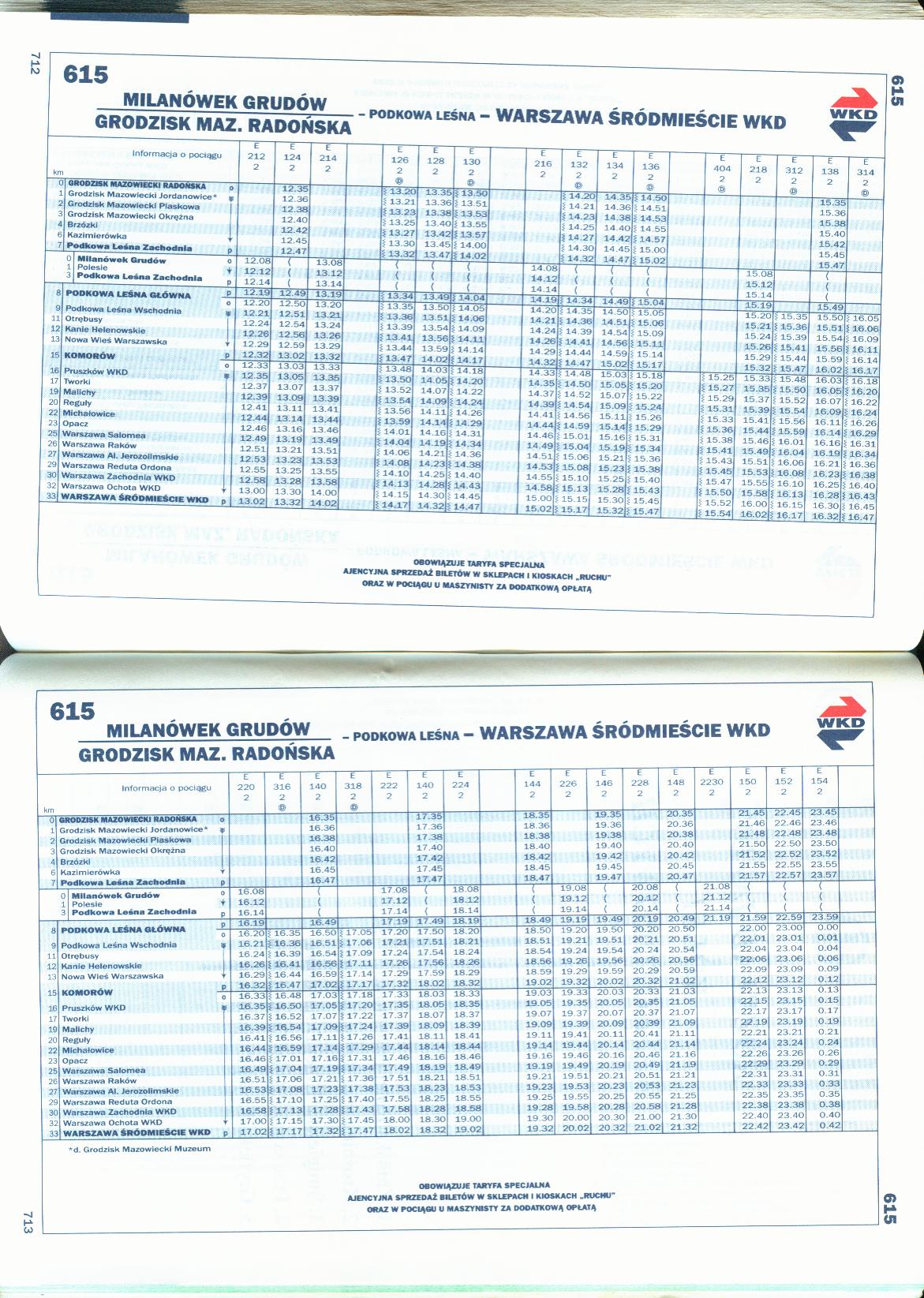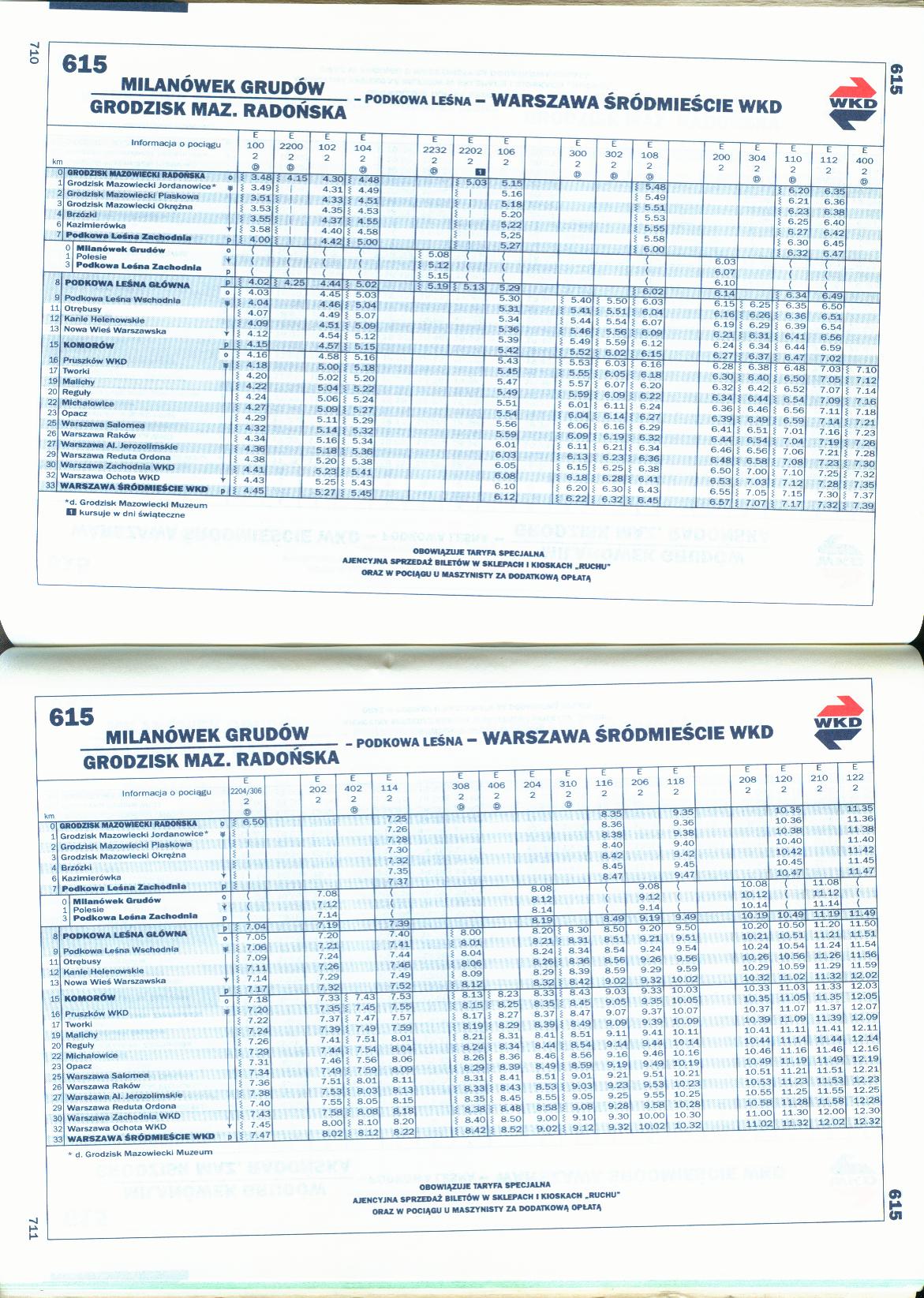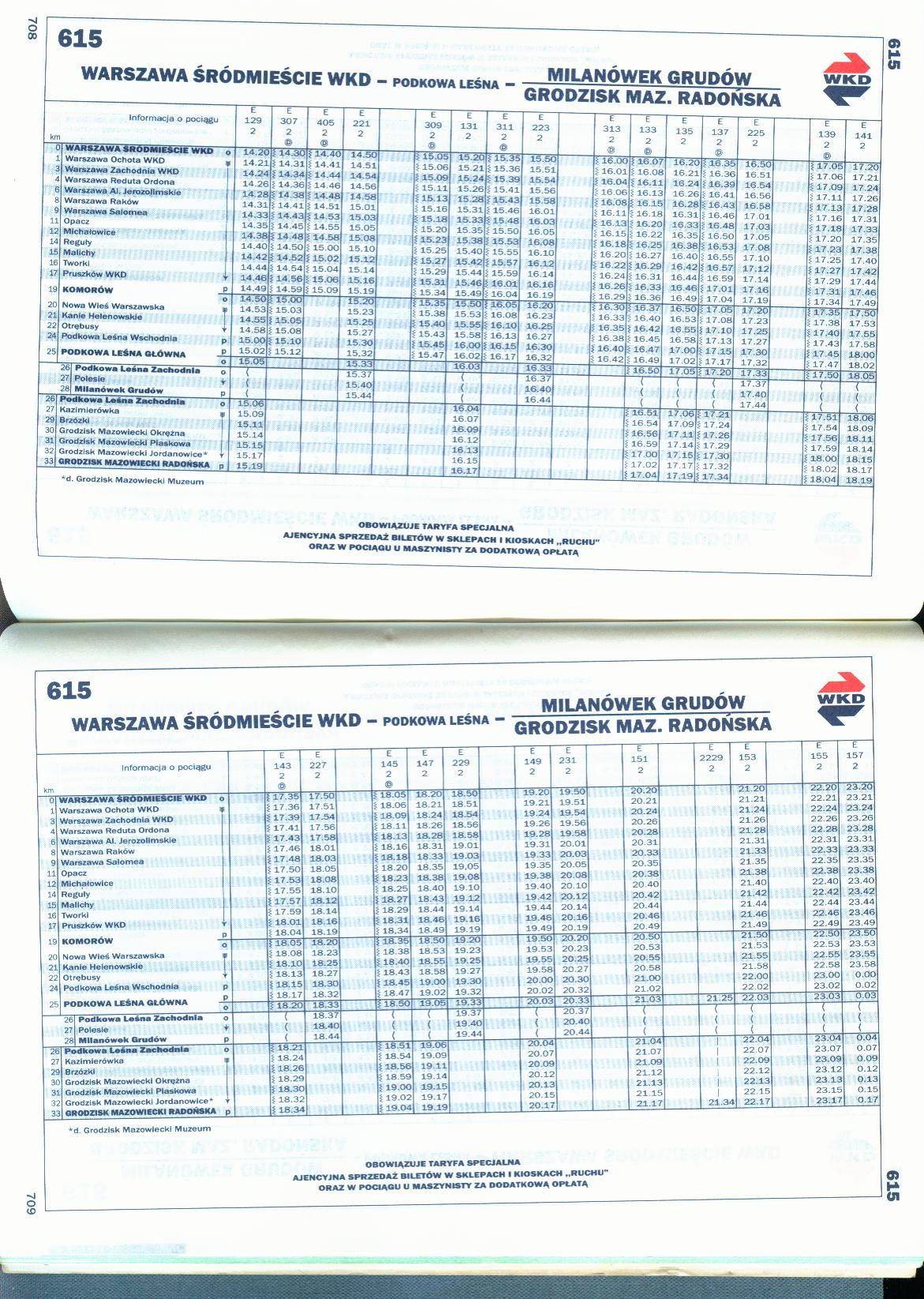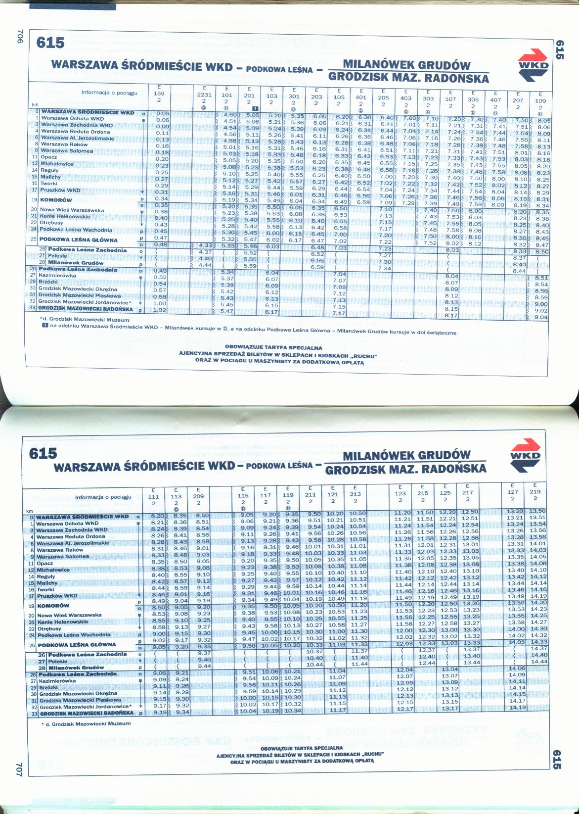 615 Warszawa Śródmieście WKD – Podkowa Leśna – Milanówek Grudów/Grodzisk Maz. Radońska str. 706 - 707