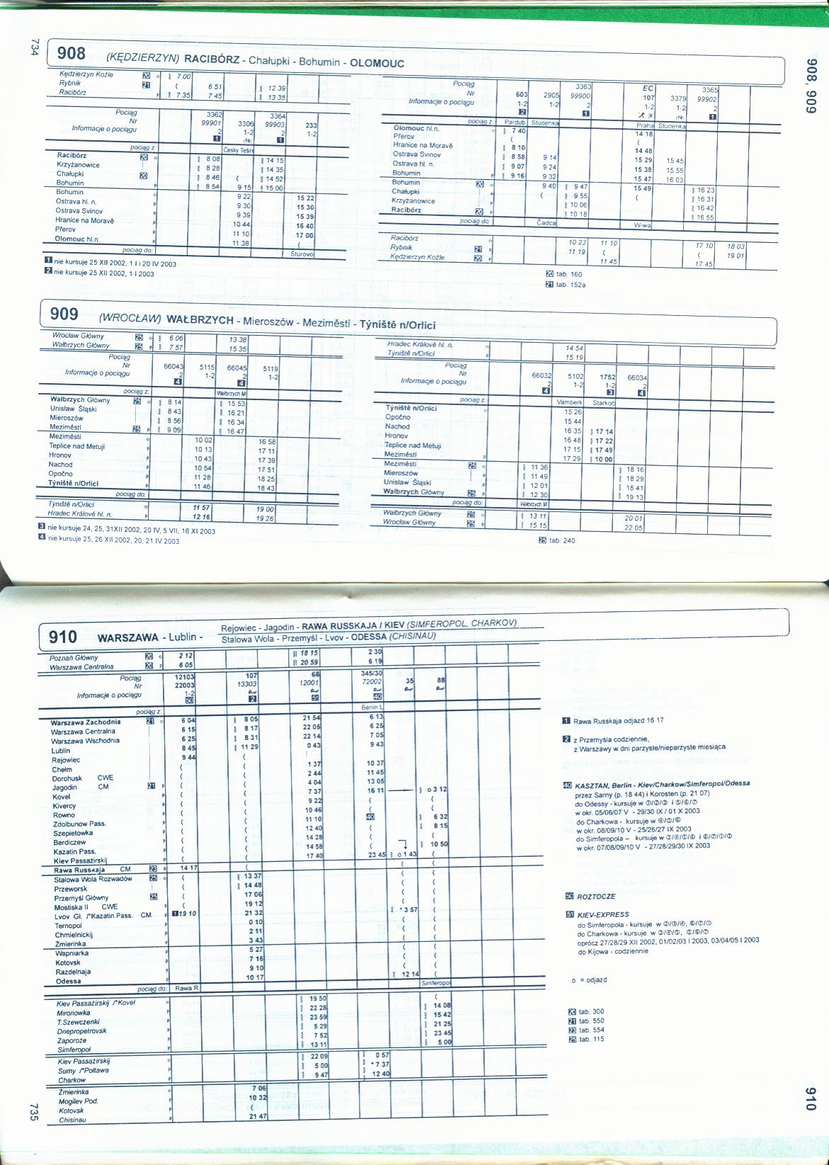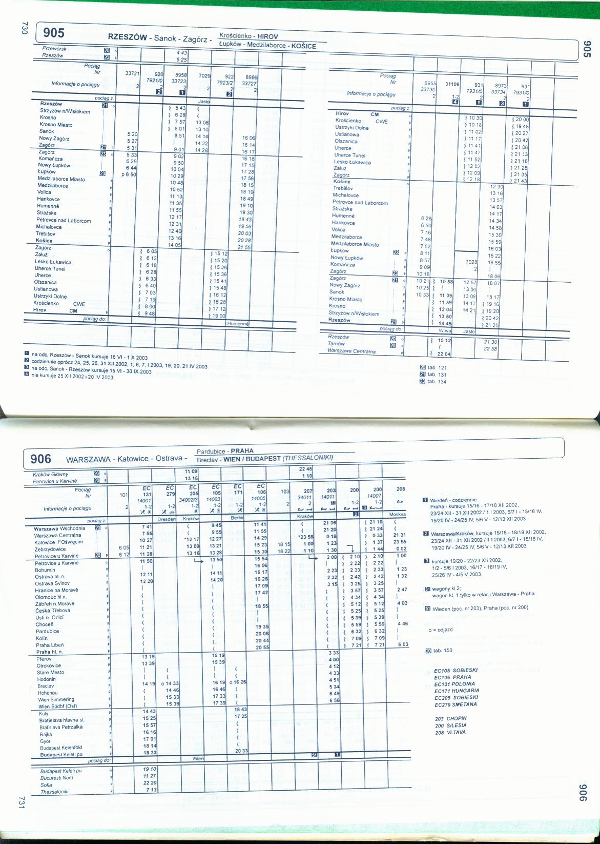 W 104 Przeworsk Wąsk. – Dynów str. 718 - 719 + Schemat połączeń międzynarodowych