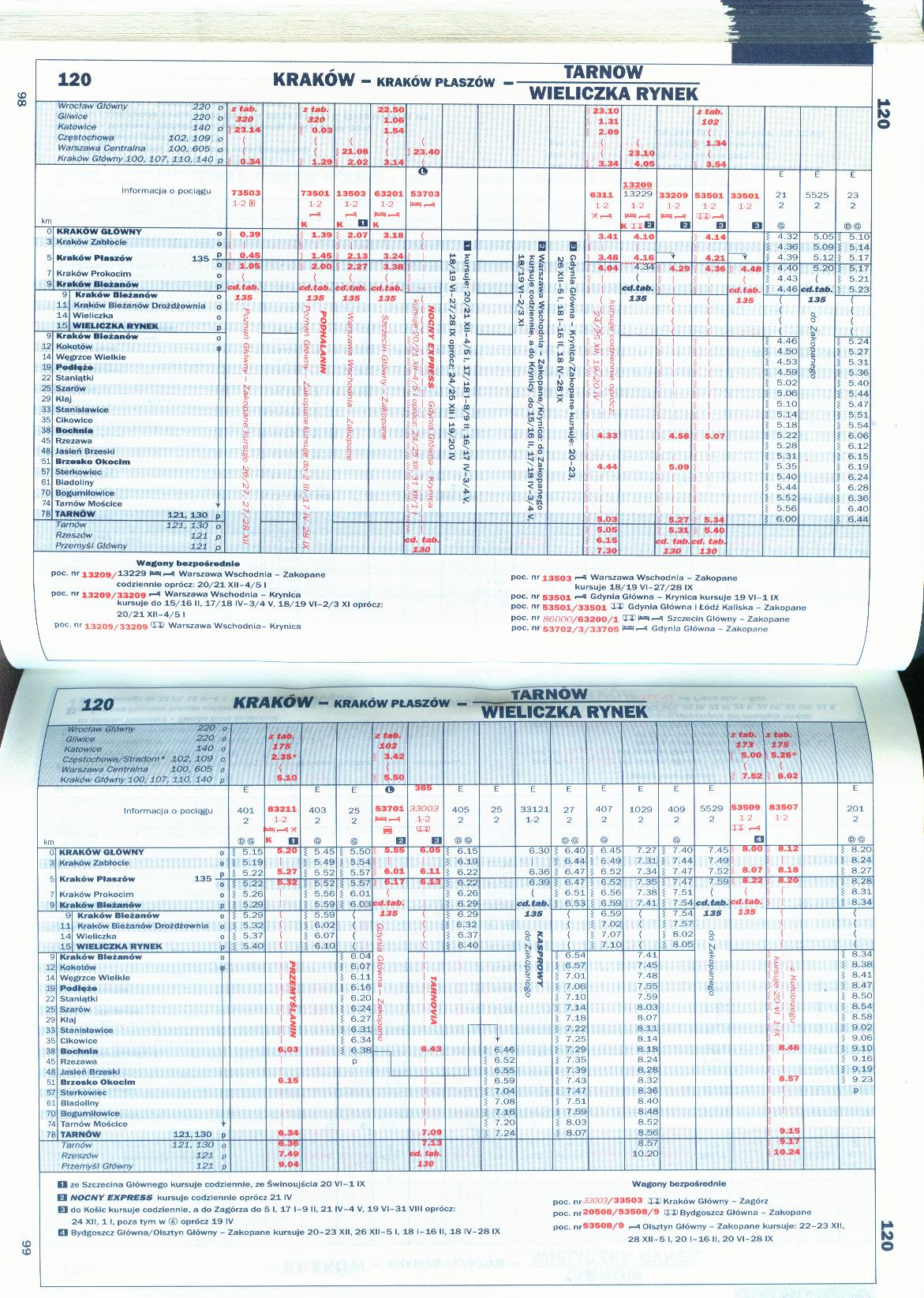 120 Kraków – Kraków Płaszów – Tarnów/Wieliczka Rynek str. 98