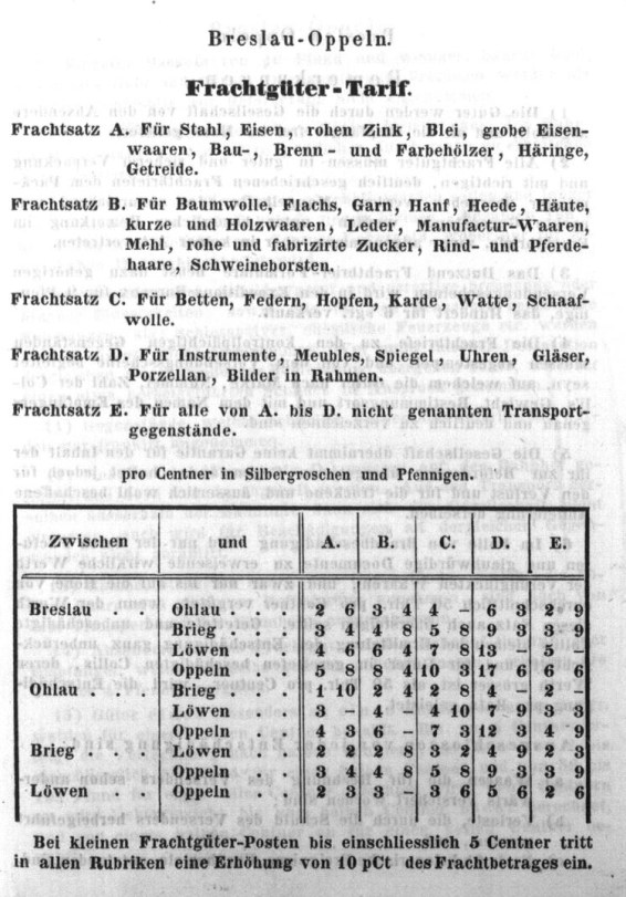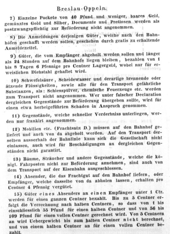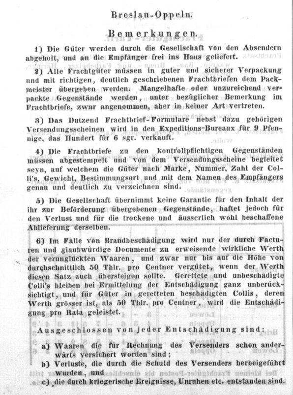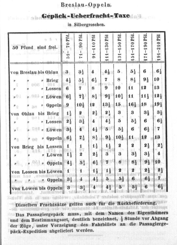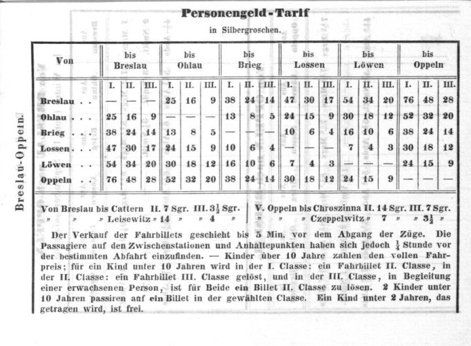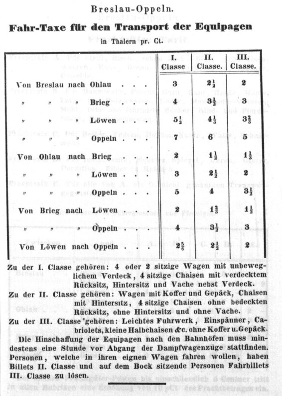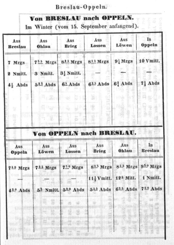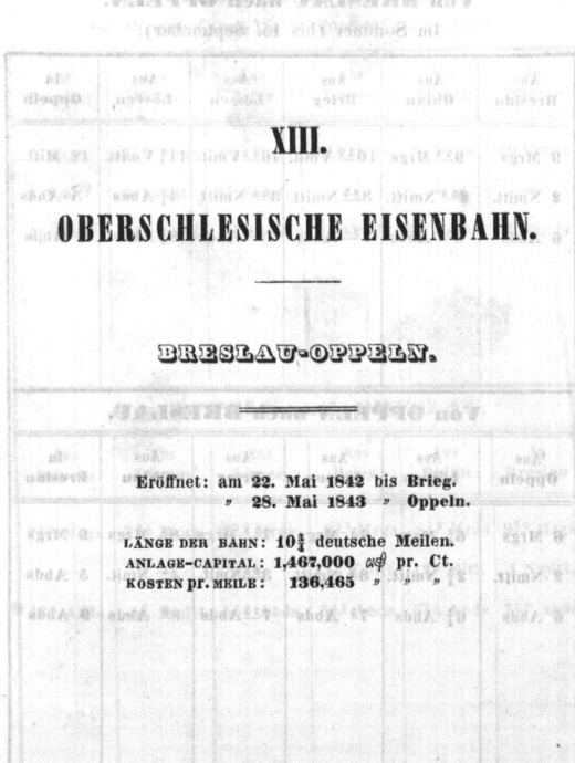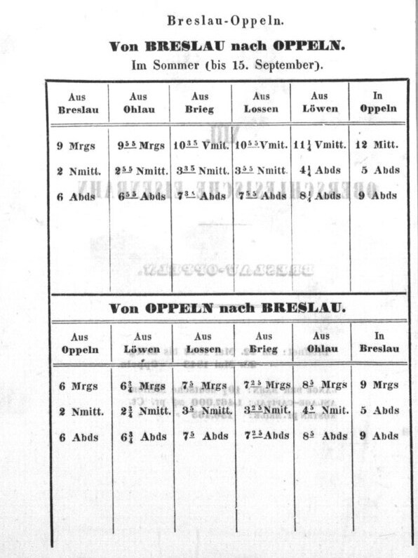 Rozkład Kolej Górnośląska, lato 1843