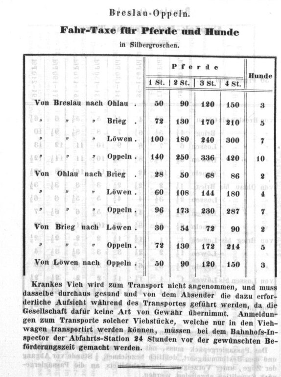 Rozkład jazdy pociągów Kolej Górnośląska, lato 1843