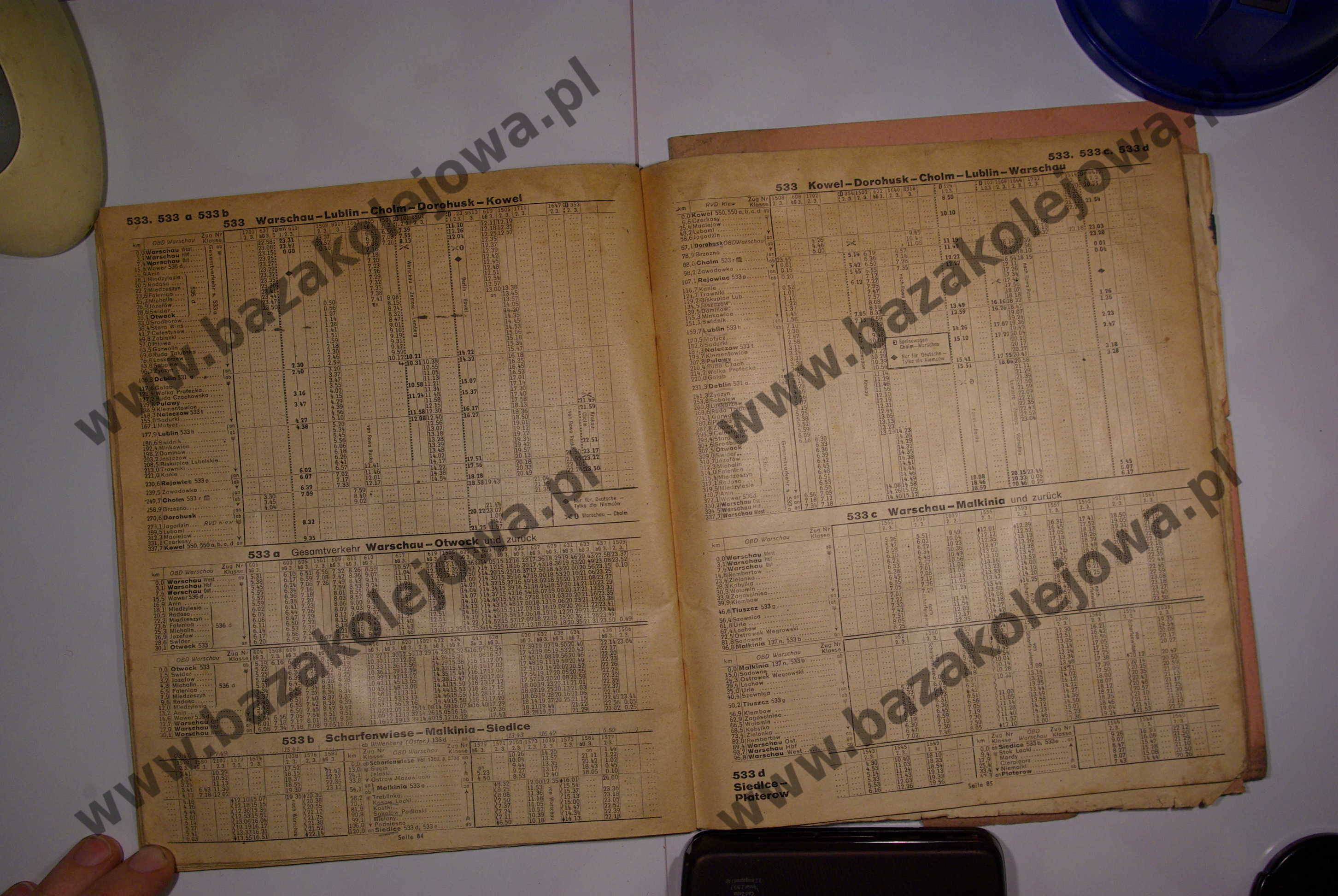 Rozkład Generalne Gubernatorstwo, zima 1943/1944, Str. 84-85, Tab. 533, 533a, 533b, 533c, 533d