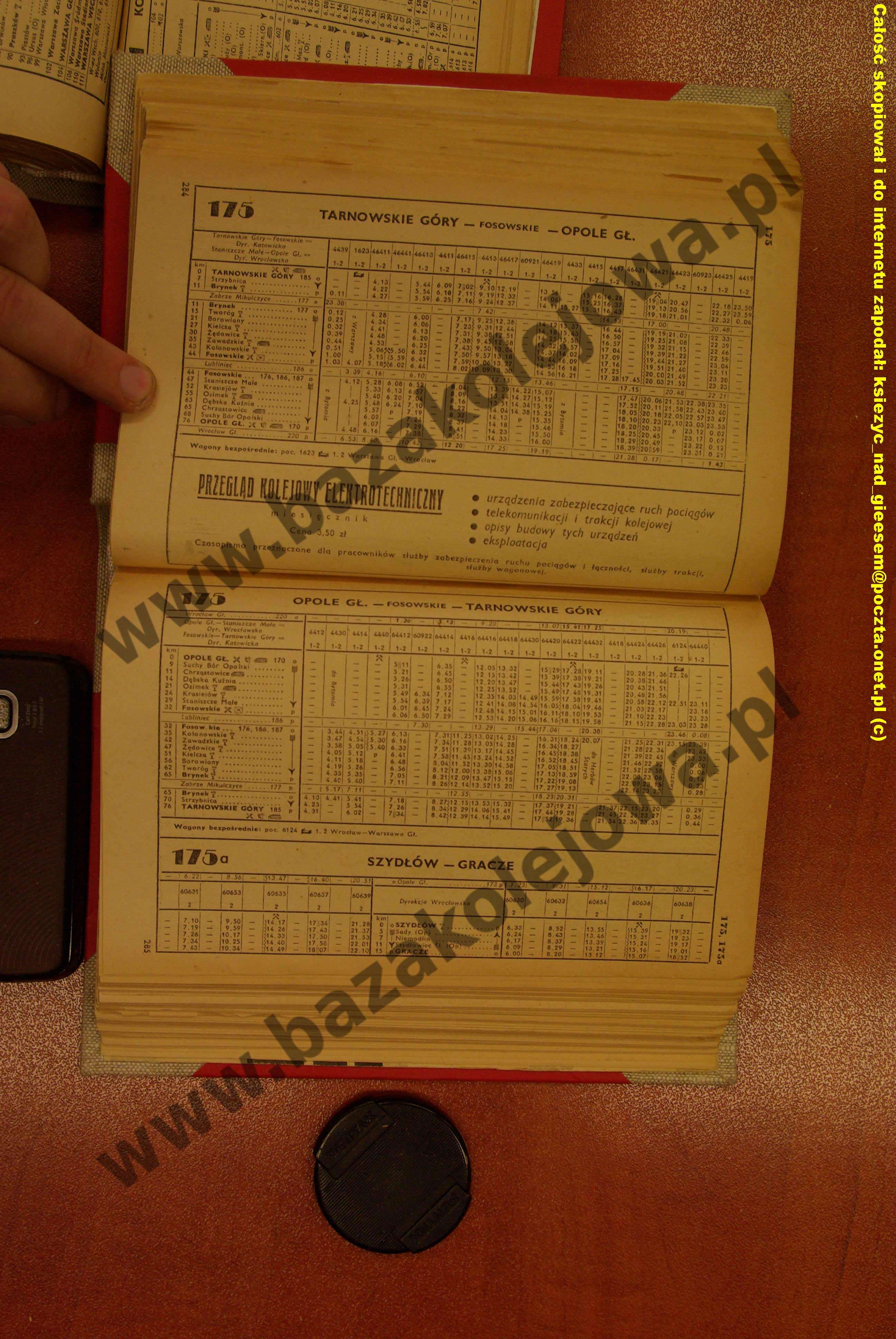 Rozkład Polska, lato 1958, Str. 284-285, Tab. 175, 175a