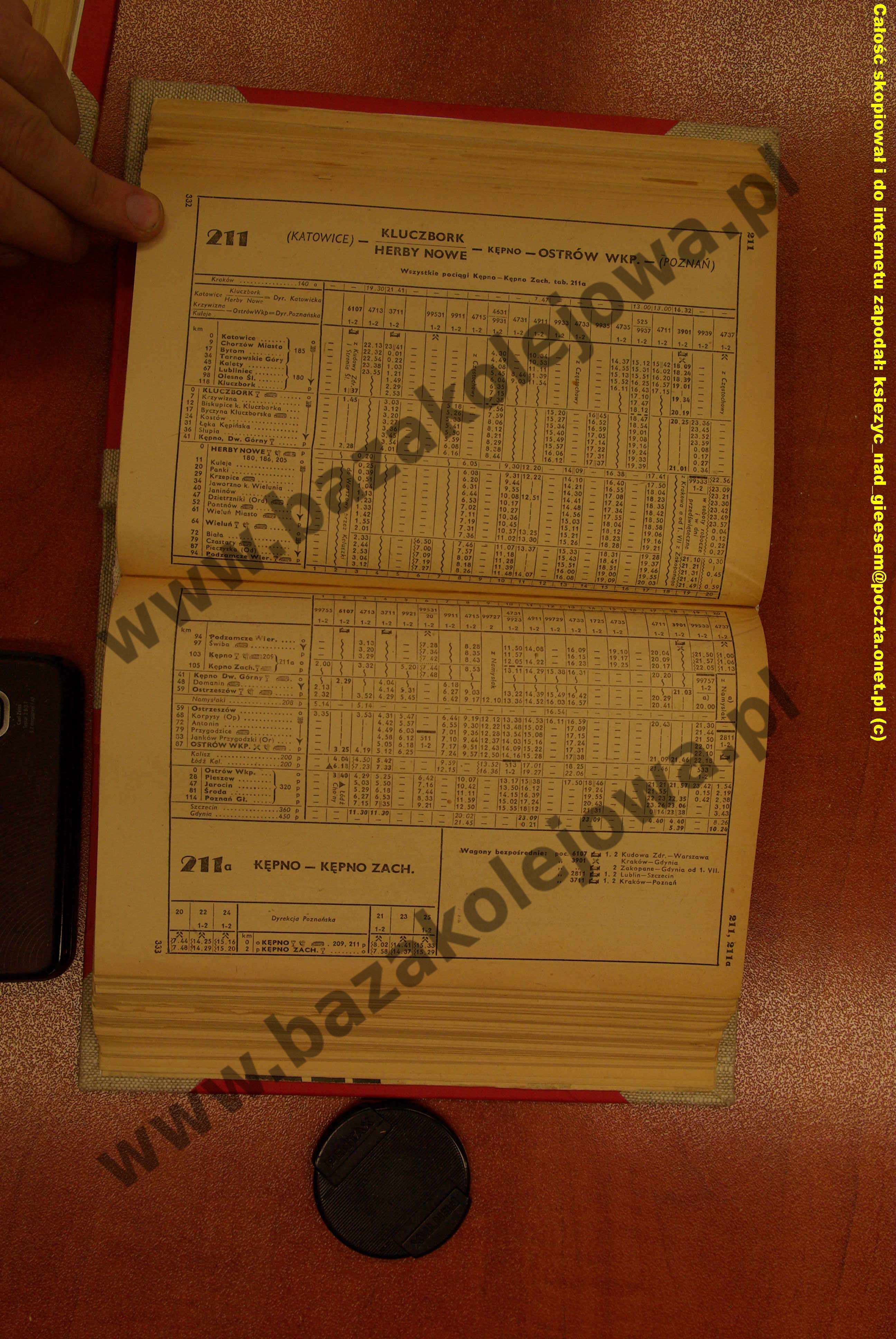 Rozkład Polska, lato 1958, Str. 332-333, Tab. 211, 211a