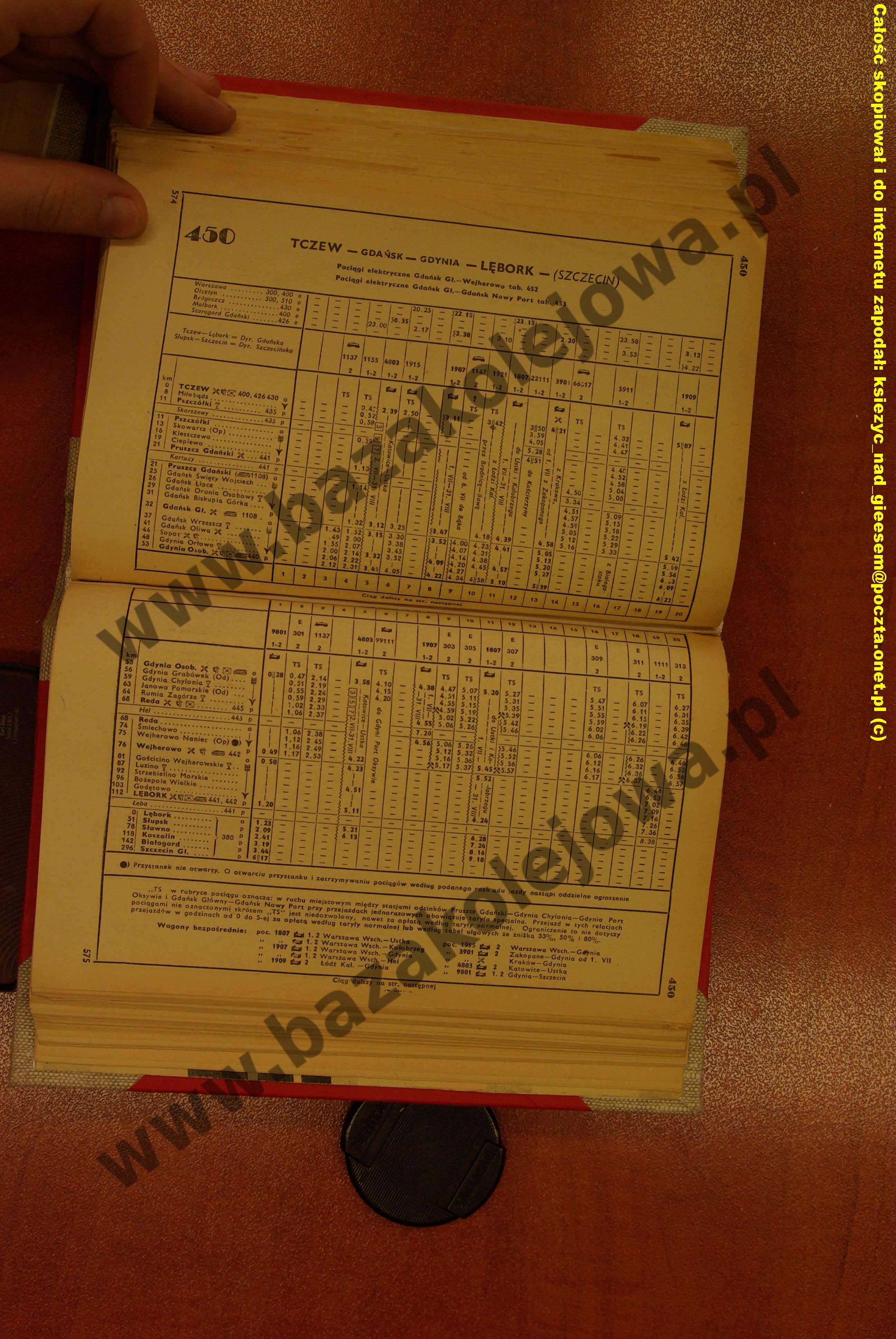 Rozkład Polska, lato 1958, Str. 574-575, Tab. 450