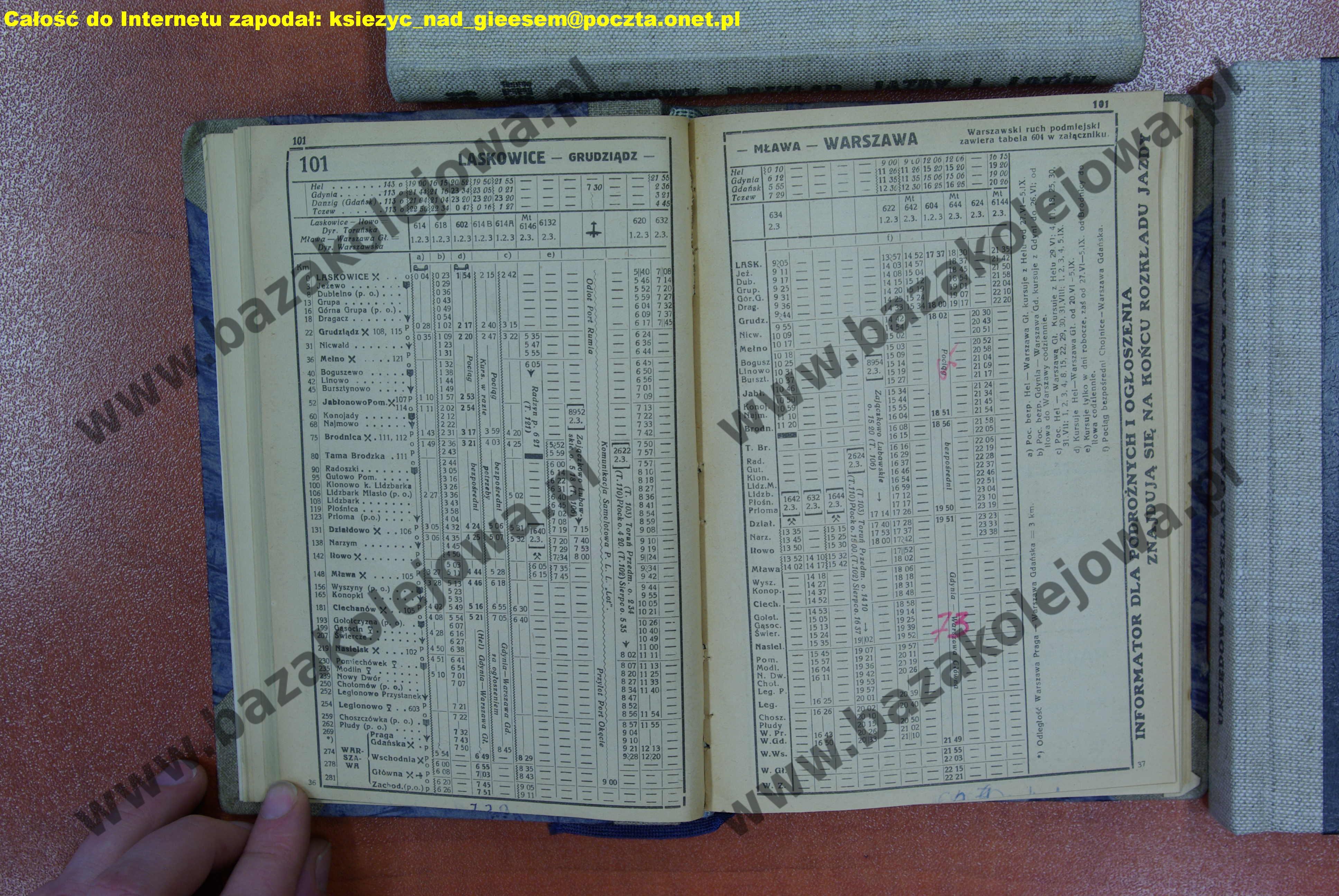 Rozkład Polska, lato 1937, Str. 36-37, Tab. 101