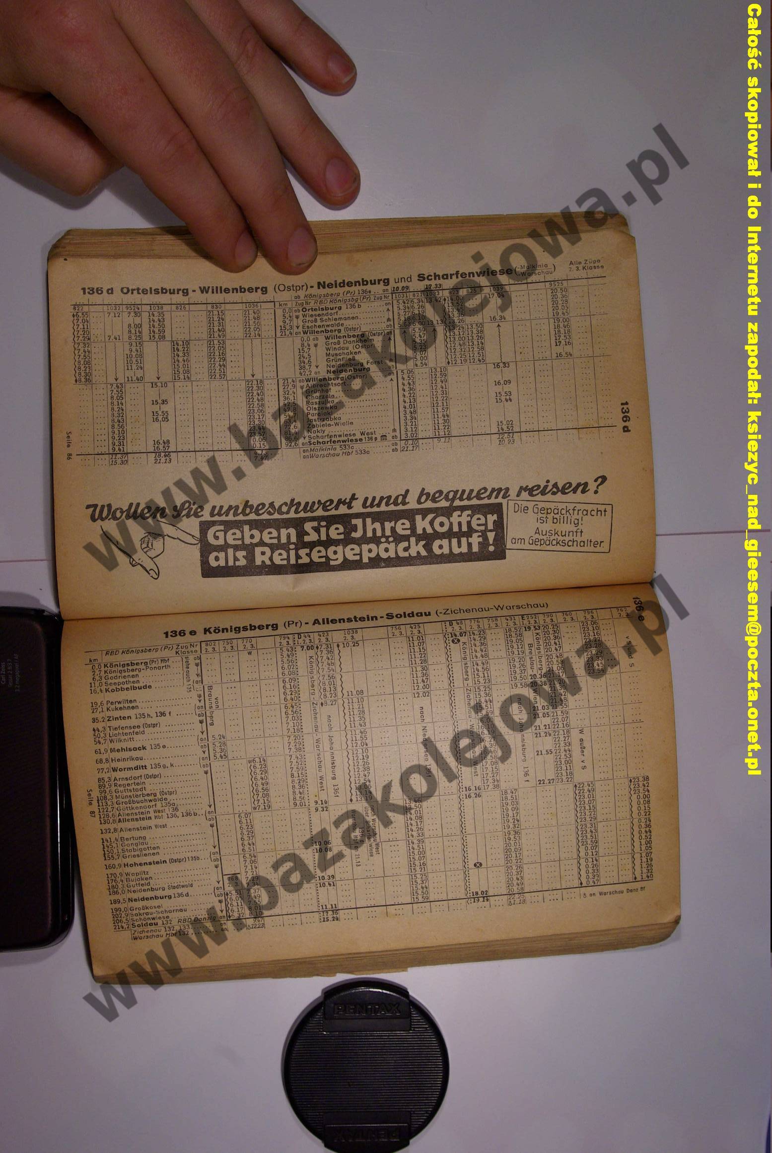 136d: Ortelsburg – Willenberg (Ostpr.) – Neidenburg und Scharfenwiese (– Malkinia/Warschau) | Linie w tabeli »