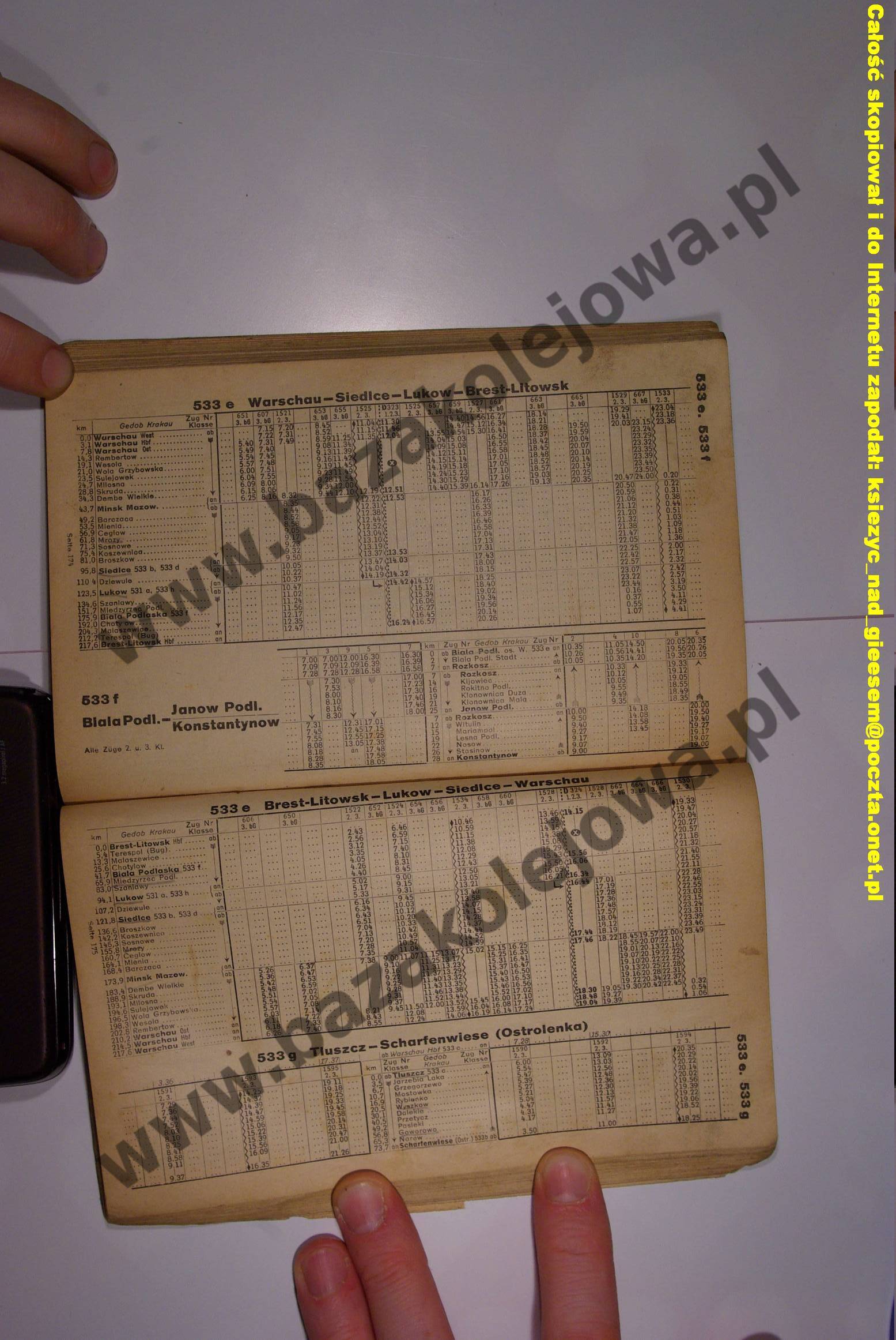 Rozkład Generalne Gubernatorstwo, lato 1942, Str. 174-175, Tab. 533e, 533f, 533g