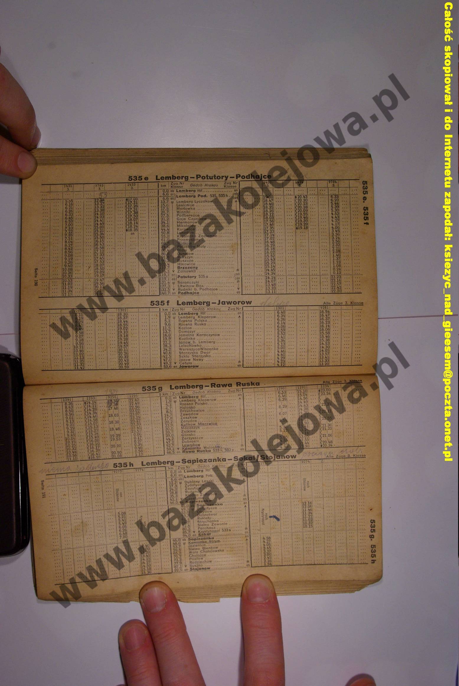 Rozkład Generalne Gubernatorstwo, lato 1942, Str. 190-191, Tab. 535e, 535f, 535g, 535h