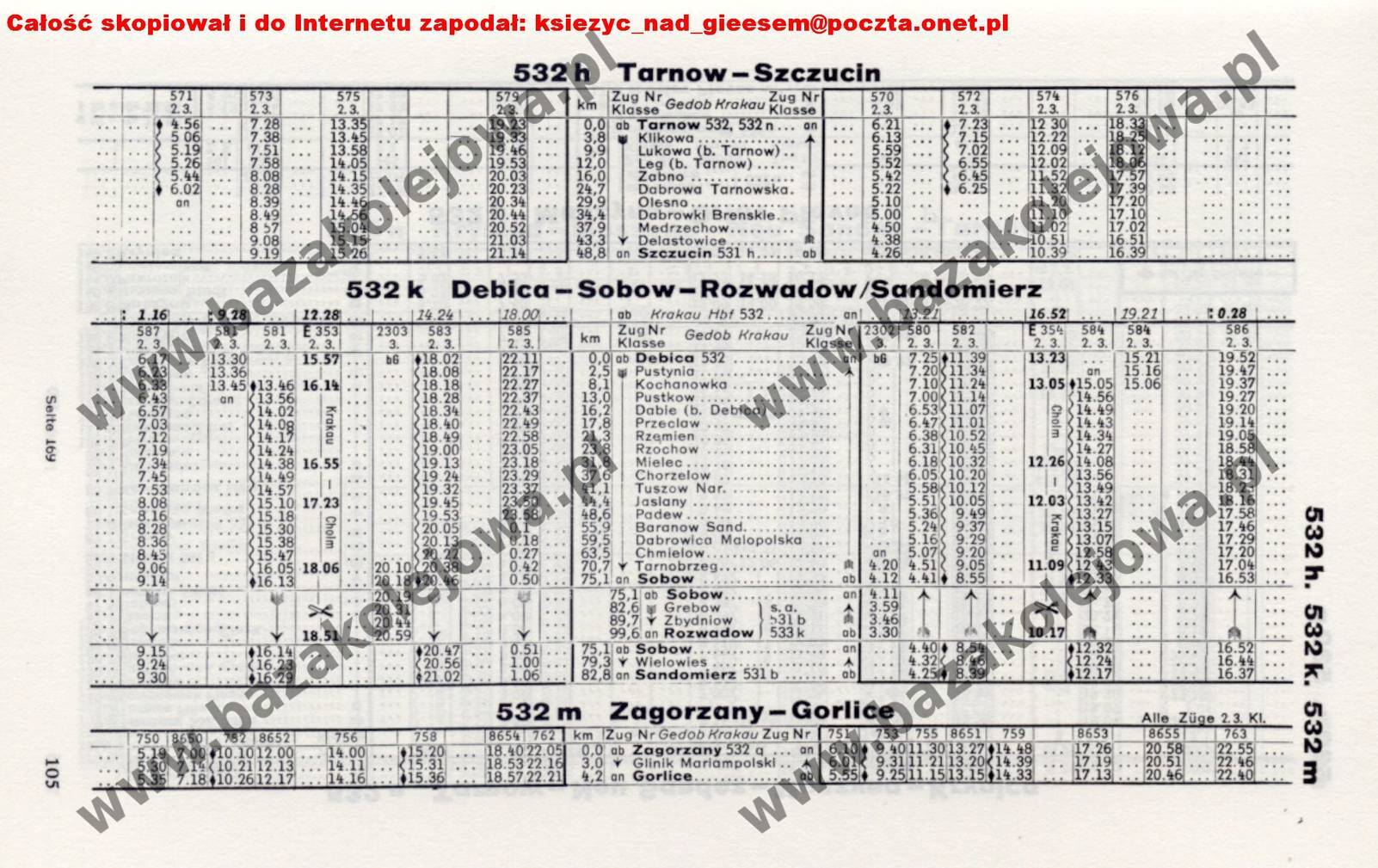 Rozkład Generalne Gubernatorstwo, zima 1942/1943, Str. 105, Tab. 532h, 532k, 532m