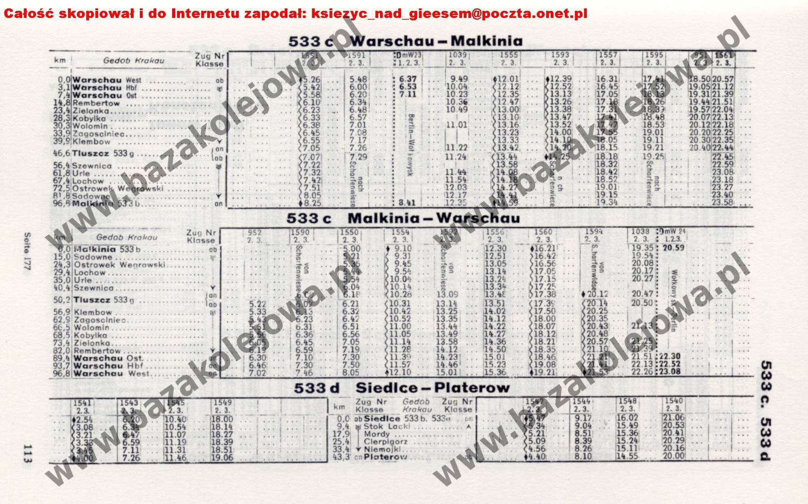 Rozkład Generalne Gubernatorstwo, zima 1942/1943, Str. 113, Tab. 533c, 533d