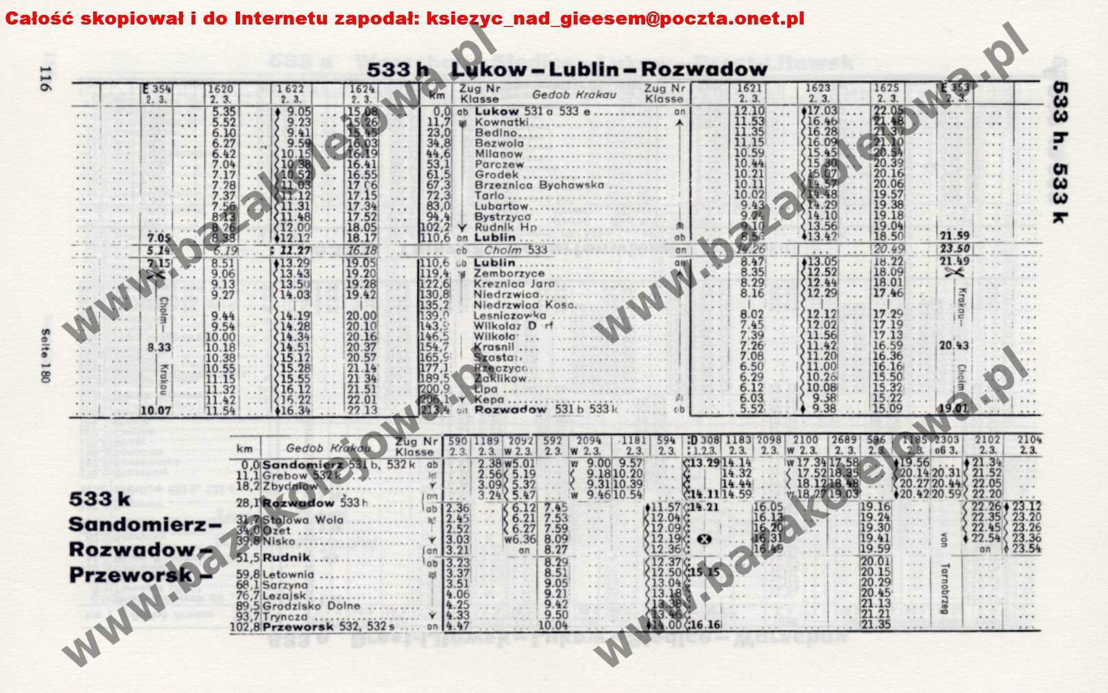 Rozkład Generalne Gubernatorstwo, zima 1942/1943, Str. 116, Tab. 533h, 533k