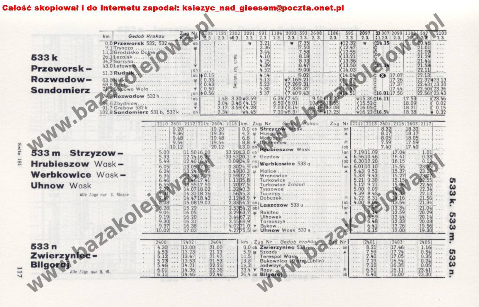 Rozkład Generalne Gubernatorstwo, zima 1942/1943, Str. 117, Tab. 533k, 533m, 533n