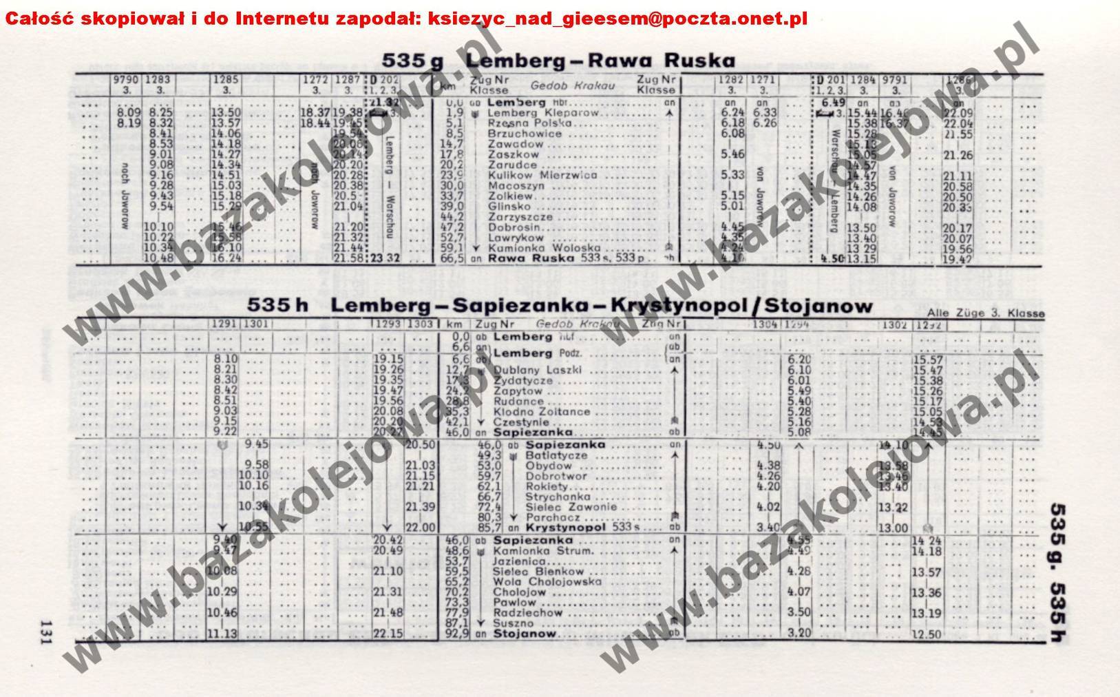Rozkład Generalne Gubernatorstwo, zima 1942/1943, Str. 131, Tab. 535g, 535h