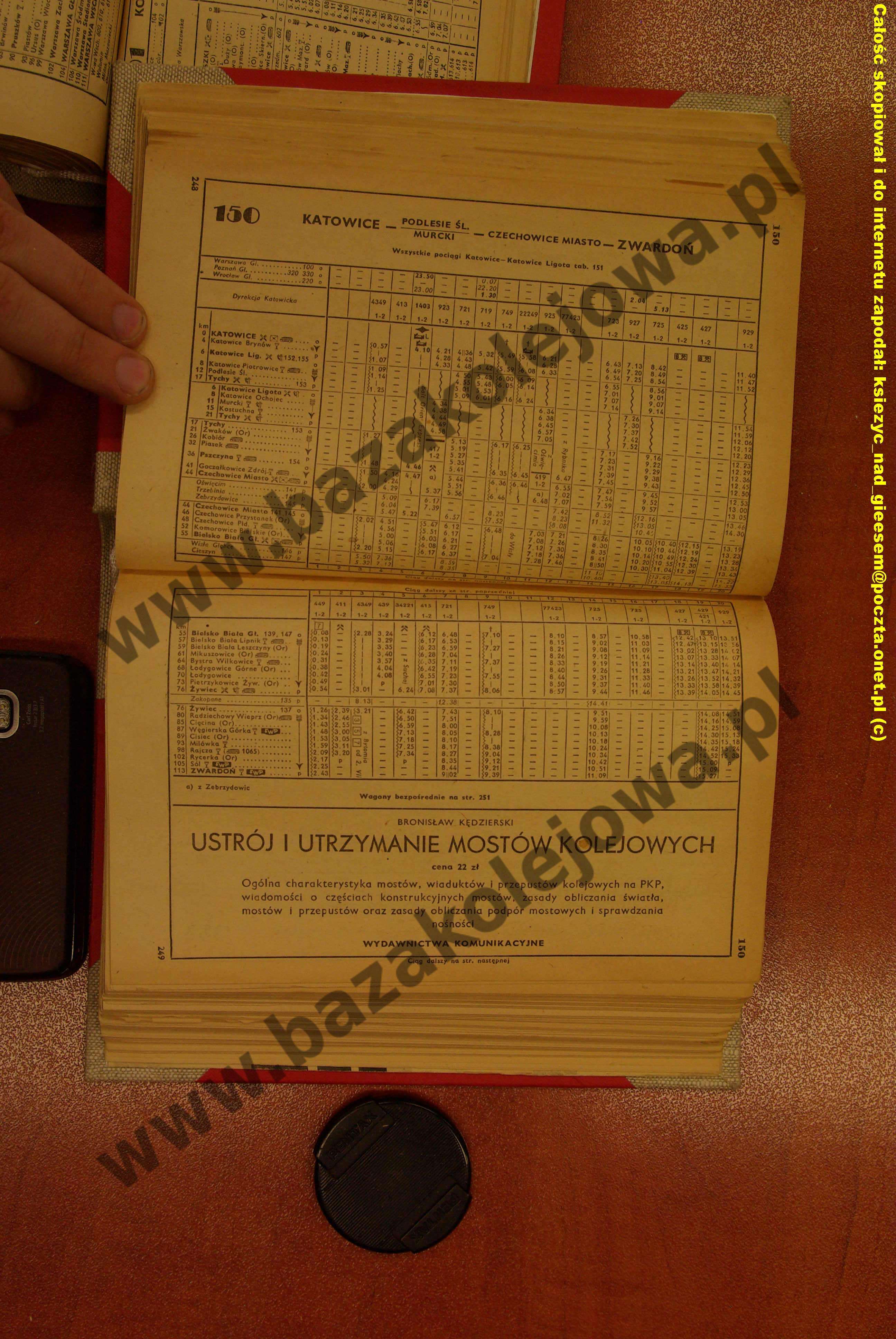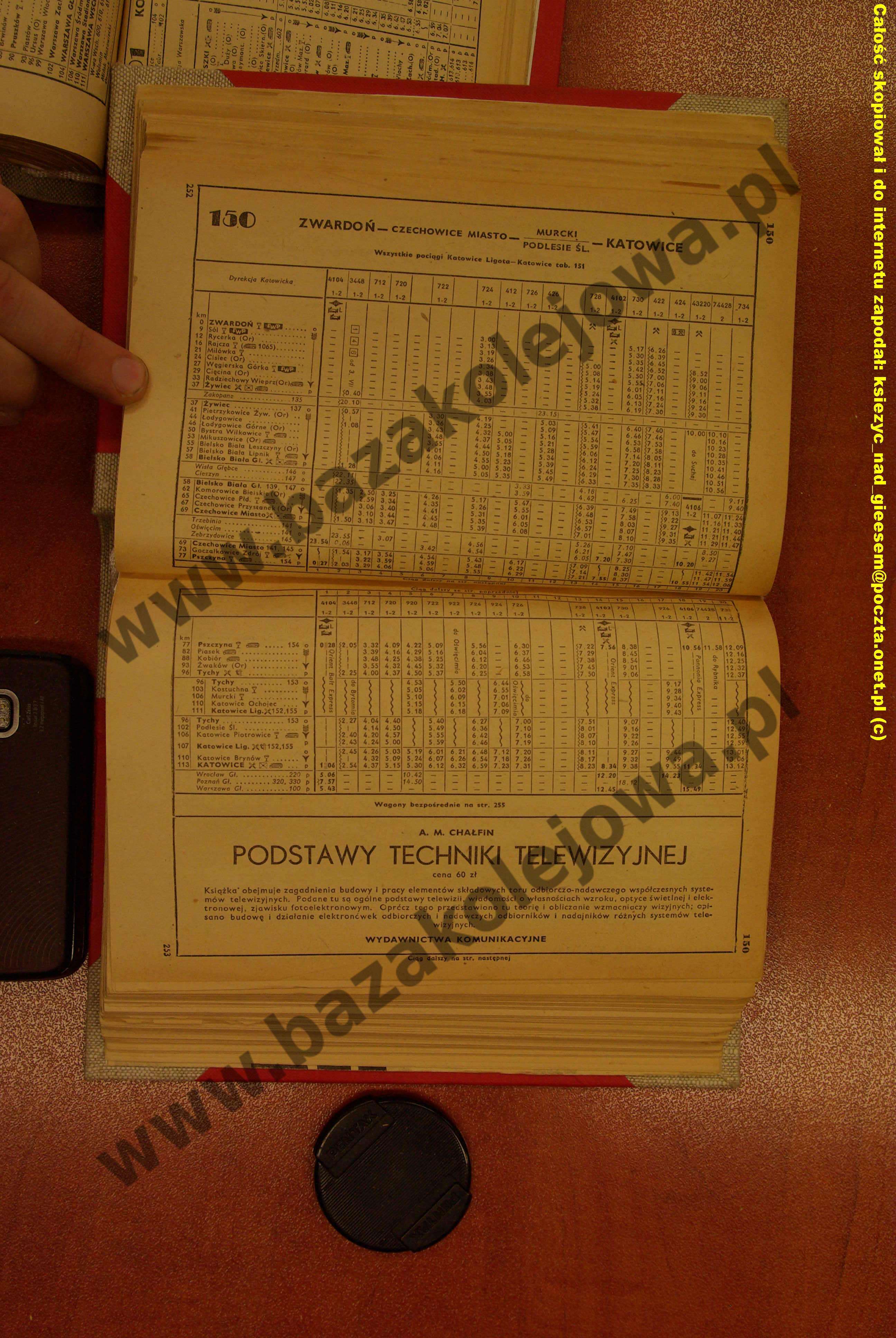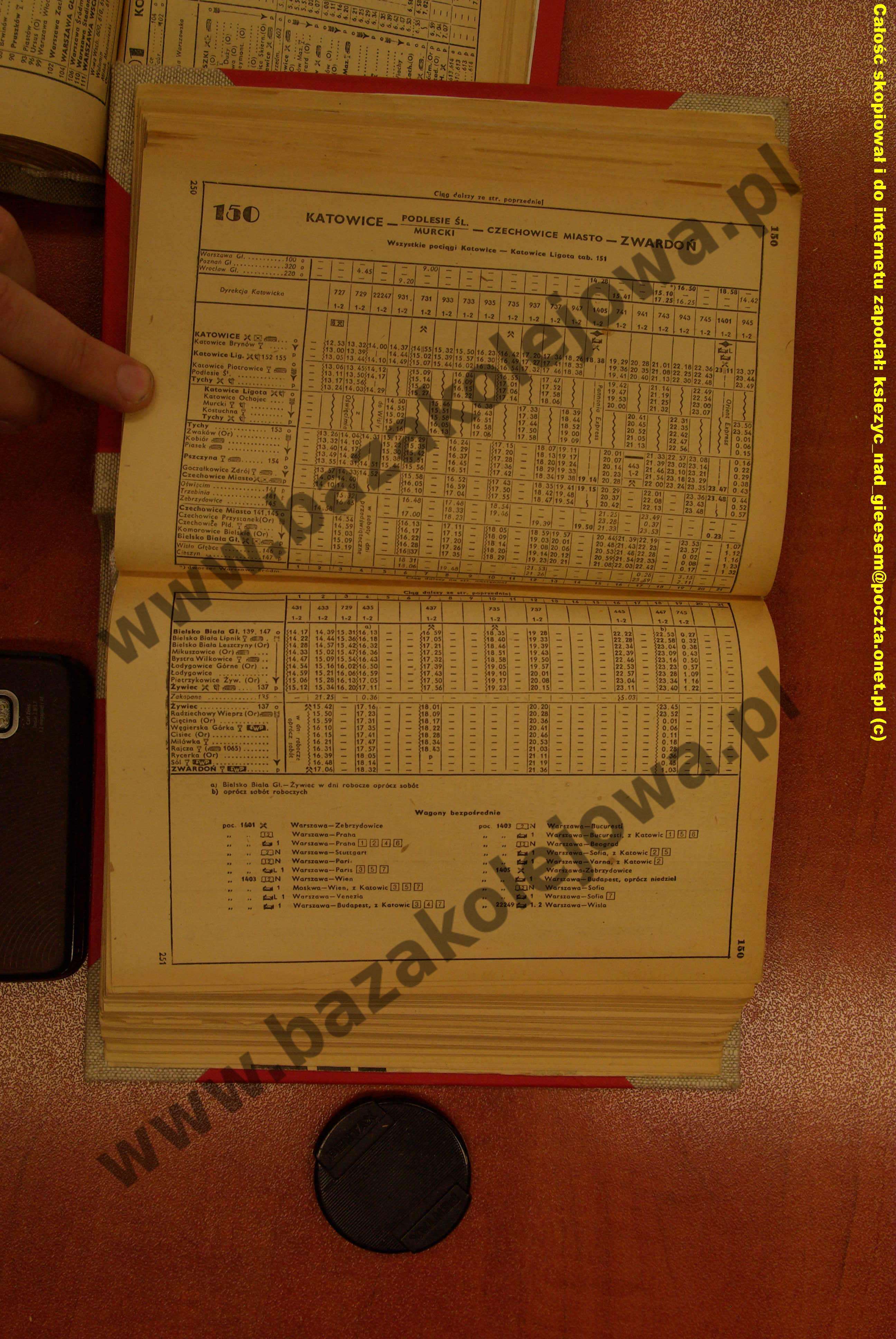 Tab. 150: Katowice – Podlesie Śl./Murcki – Czechowice Miasto – Zwardoń (RJP: Polska, lato 1958)