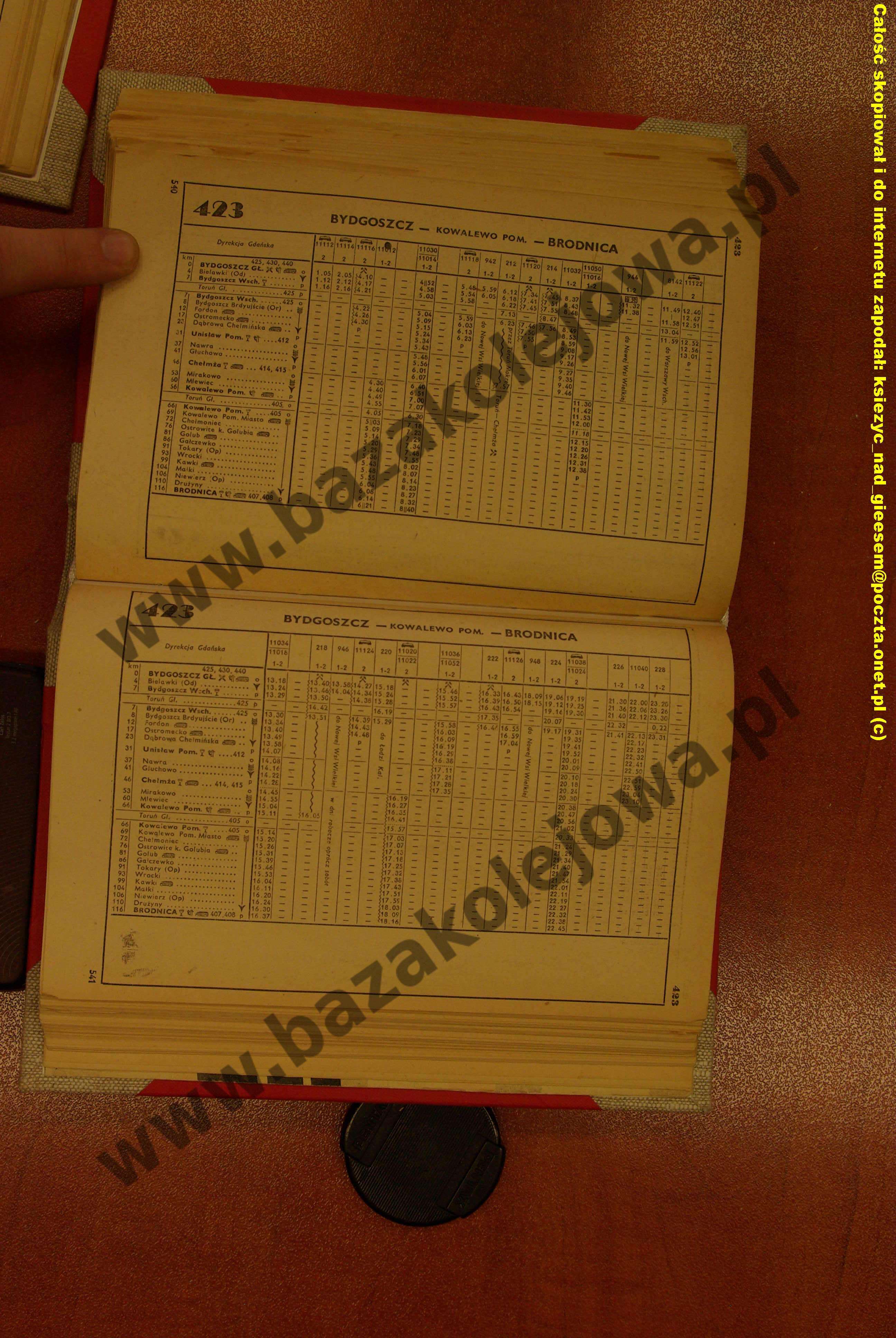 Tab. 423: Brodnica – Kowalewo Pom. – Bydgoszcz (RJP: Polska, lato 1958)