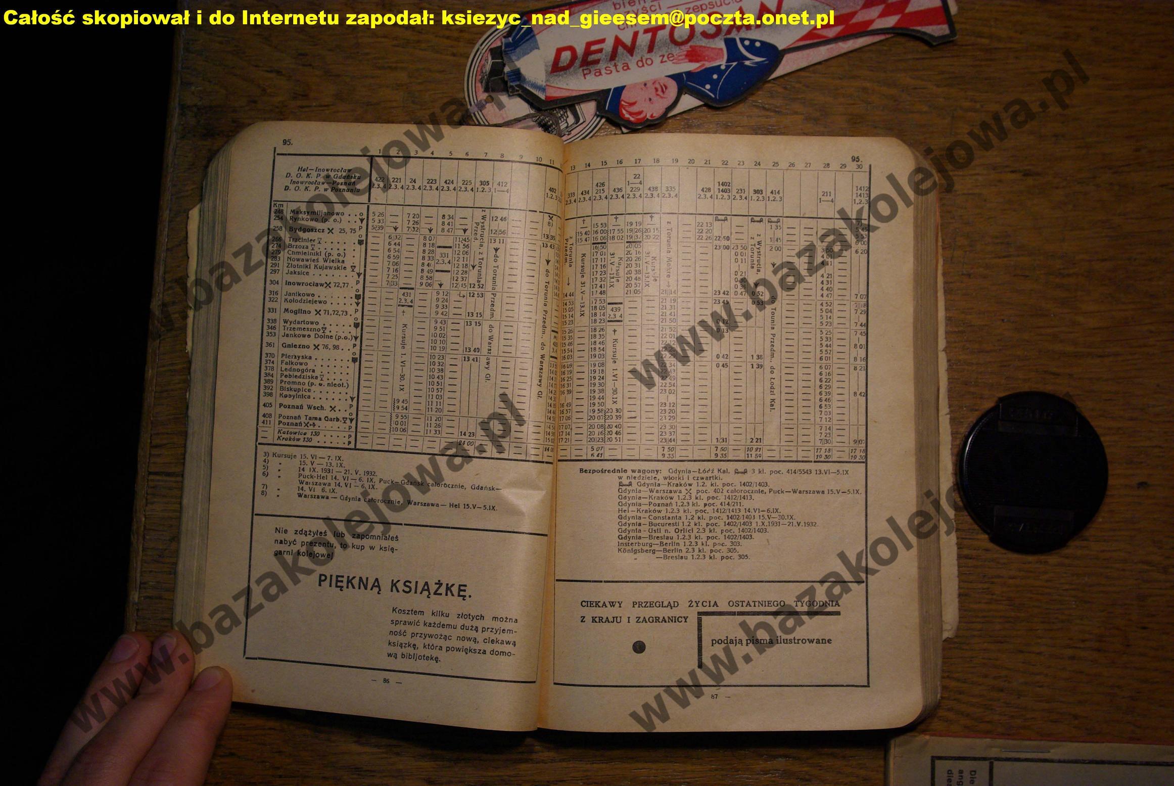 Tab. 95: Poznań – Inowrocław – Bydgoszcz – Danzig (Gdańsk) – Hel (RJP: Polska, lato 1931)