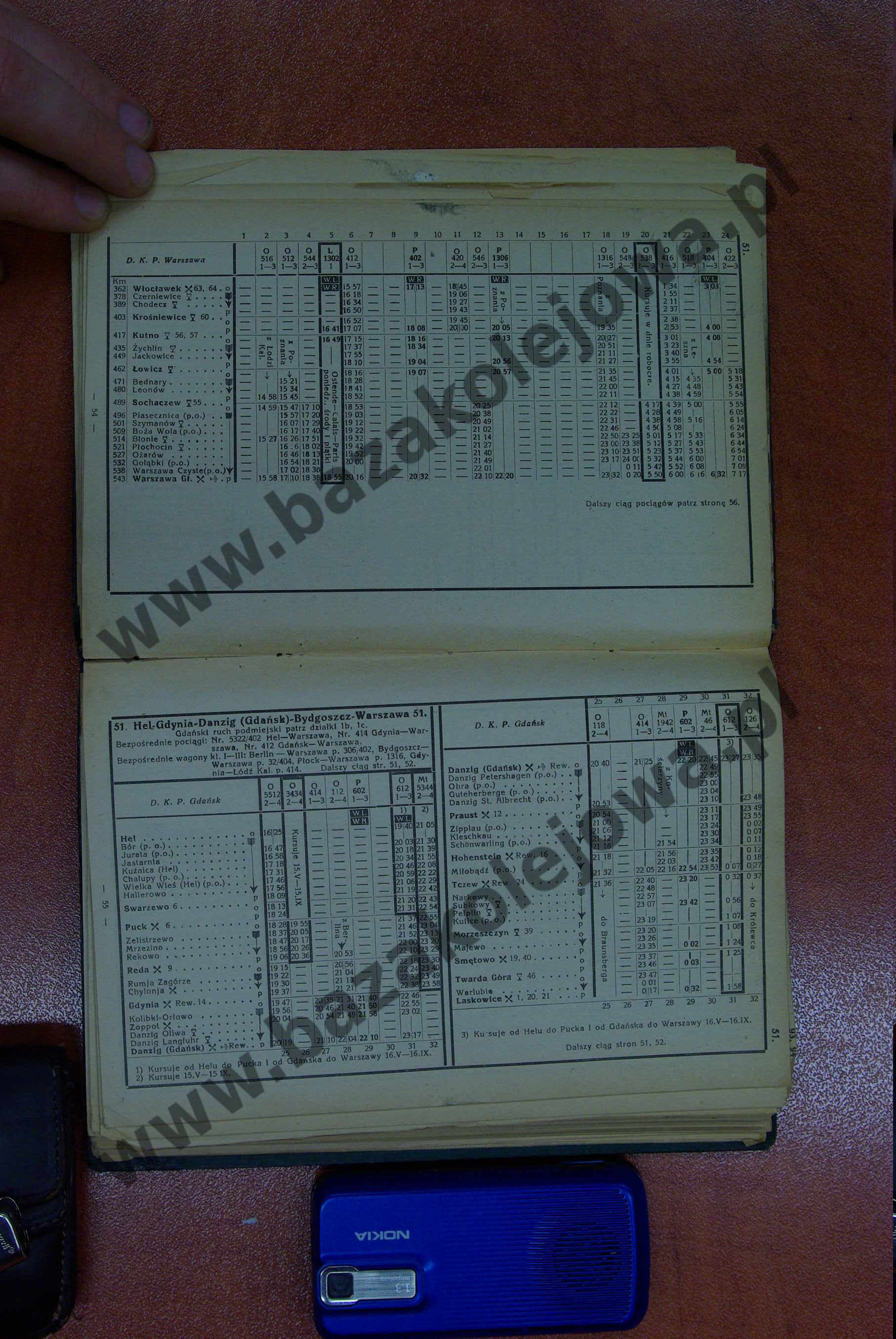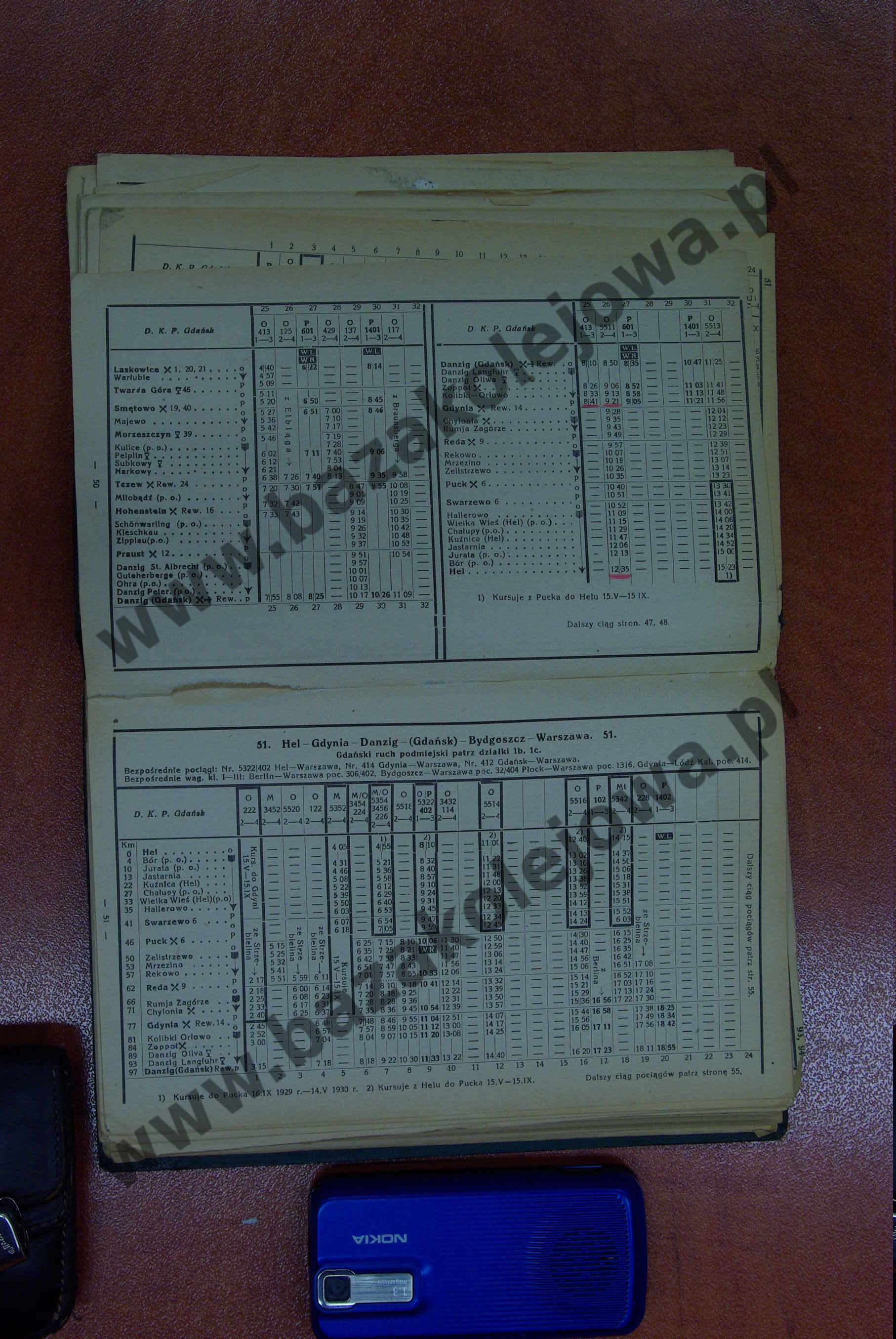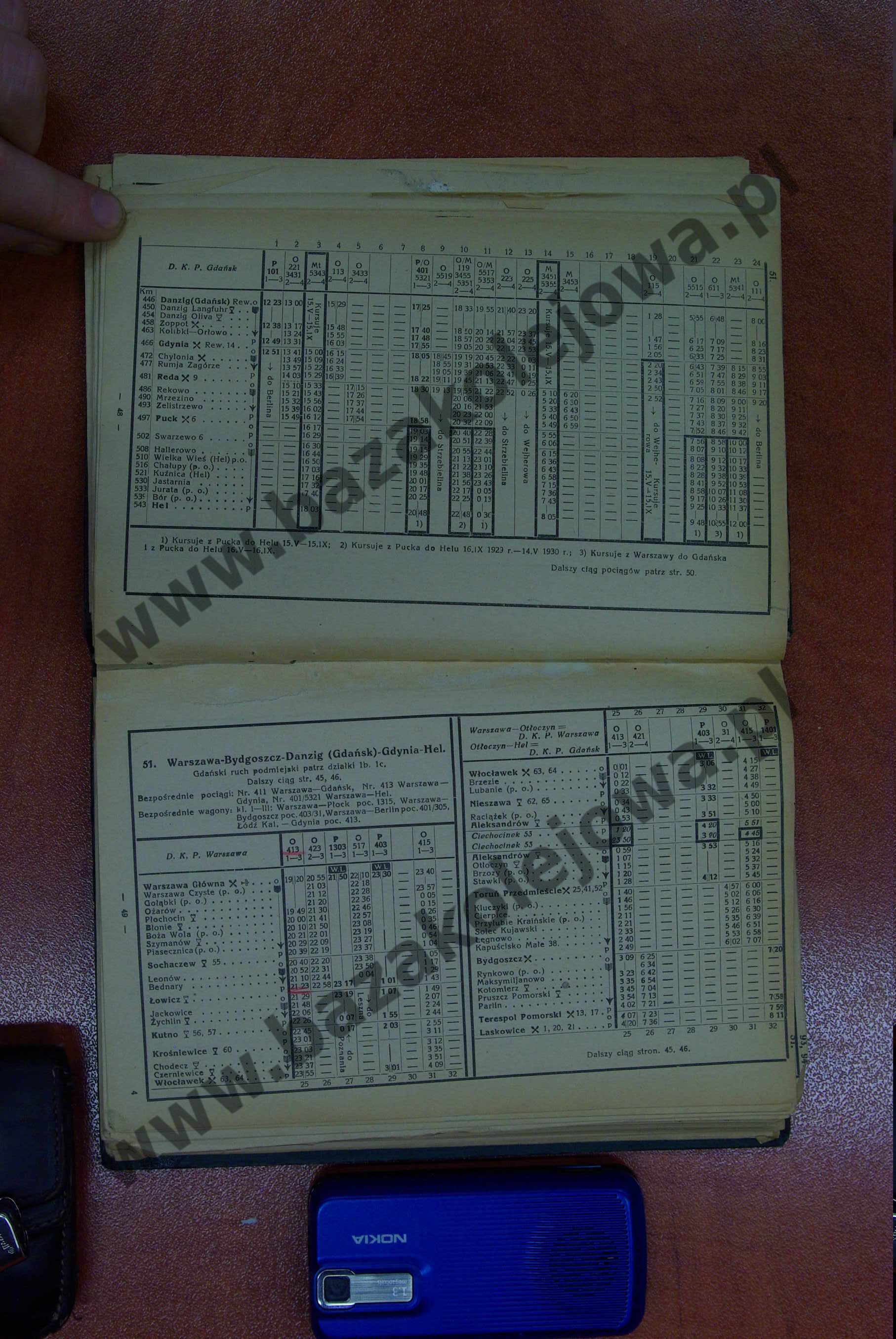 Tab. 51: Warszawa – Bydgoszcz – Danzig (Gdańsk) – Gdynia – Hel (RJP: Polska, lato 1929)