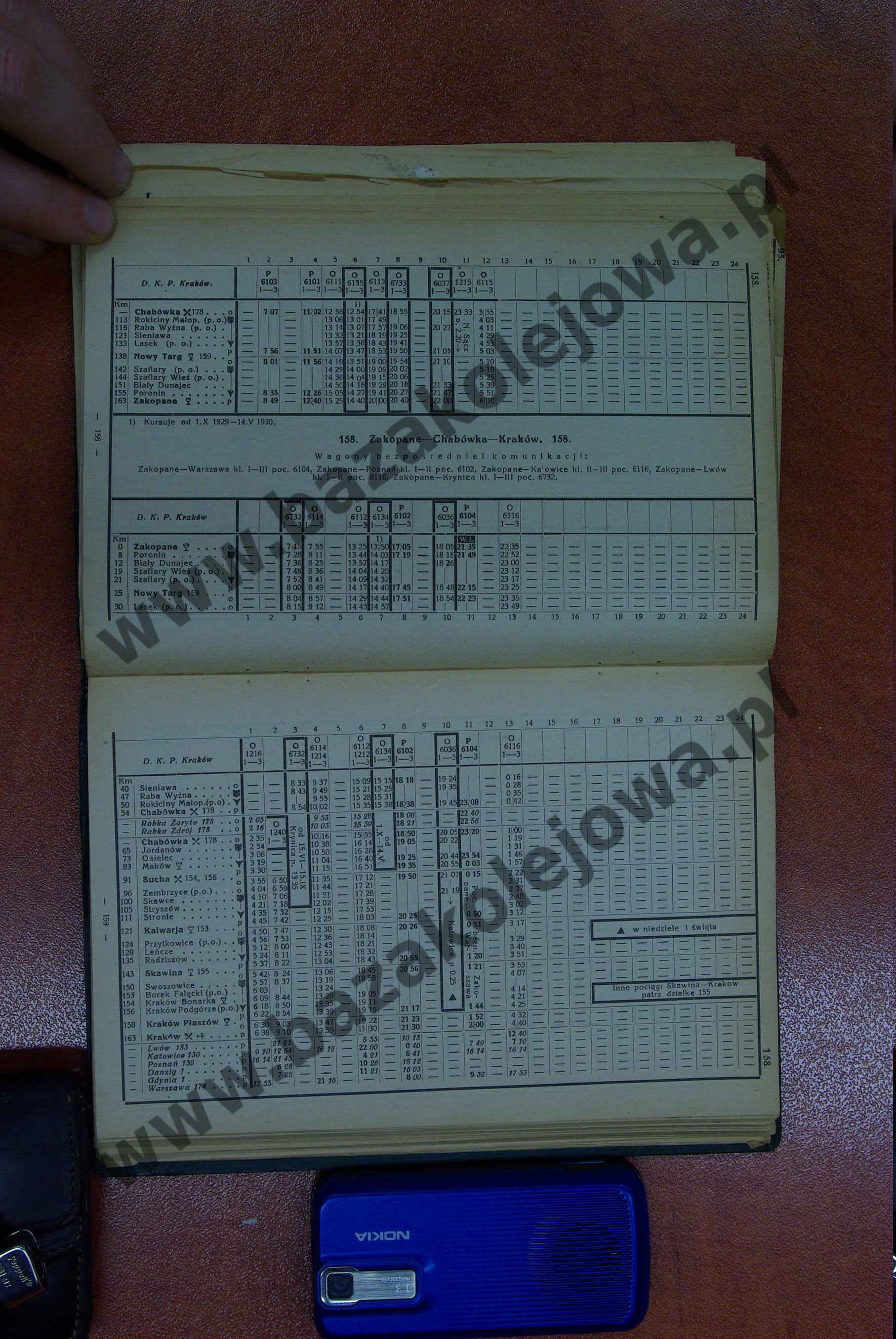 Tab. 158: Kraków – Chabówka – Zakopane (RJP: Polska, lato 1929)