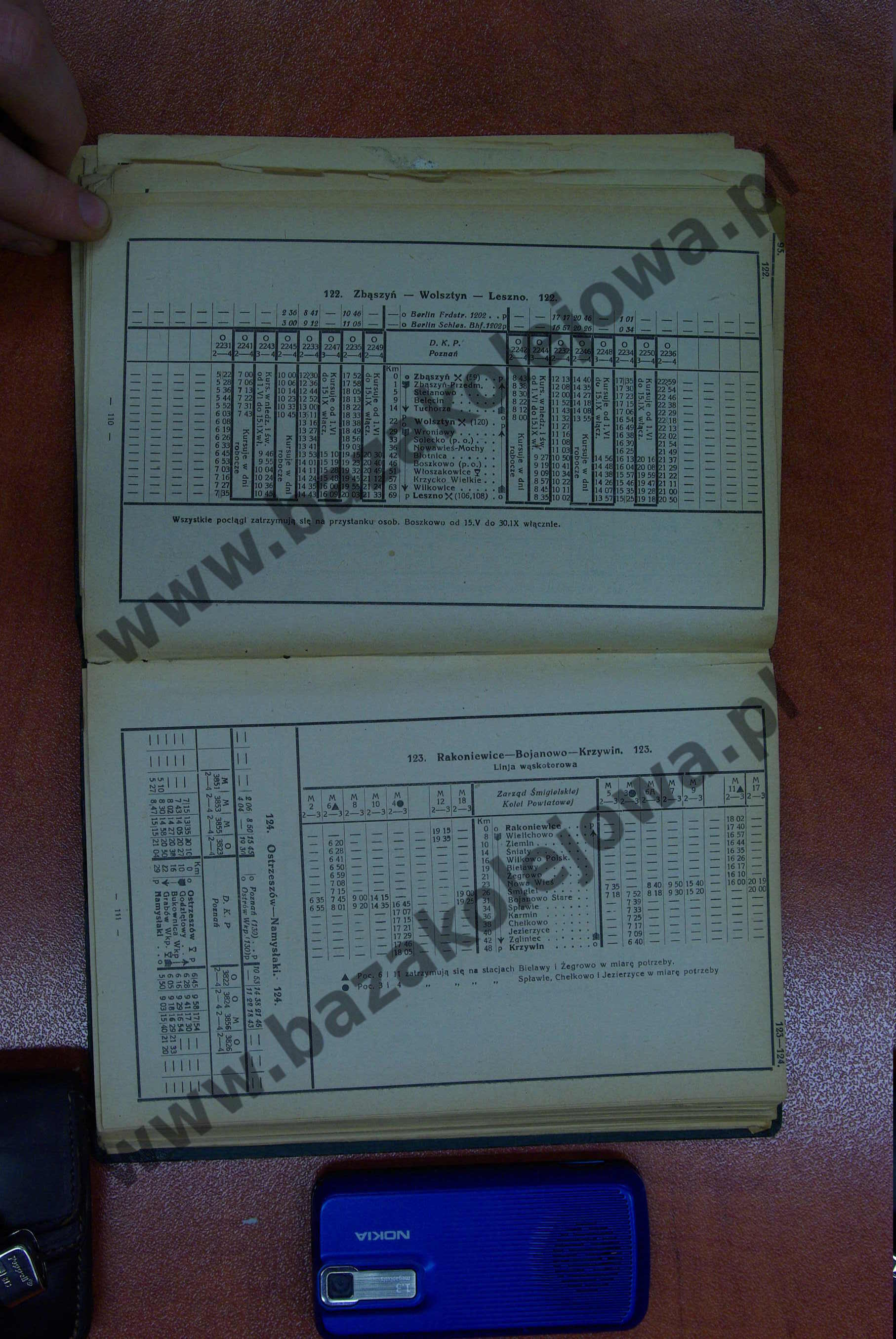 Tab. 122: Zbąszyń – Wolsztyn – Leszno (RJP: Polska, lato 1929)