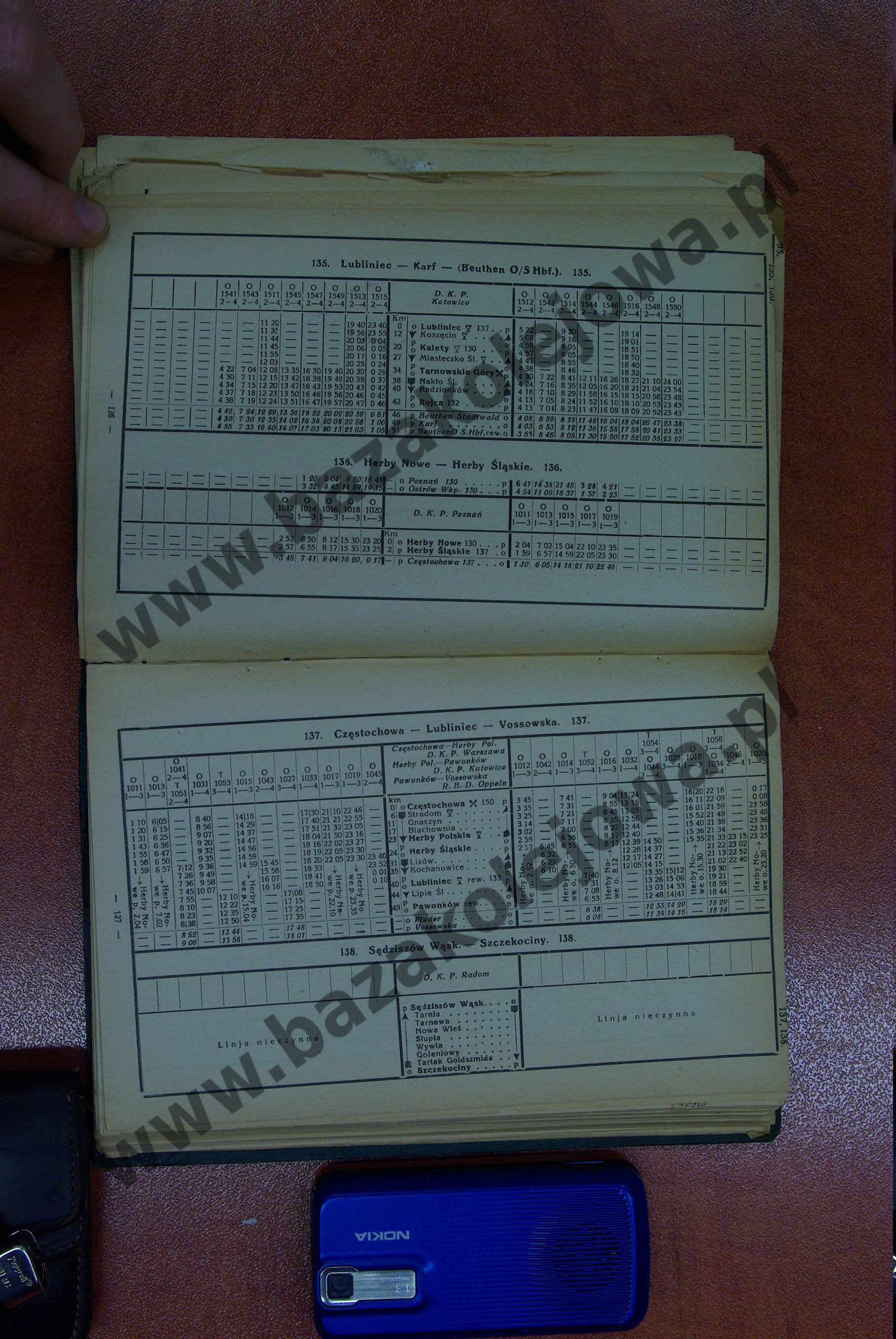 Tab. 135: Lubliniec – Karf – (Beuthen O/S. Hbf.) (RJP: Polska, lato 1929)