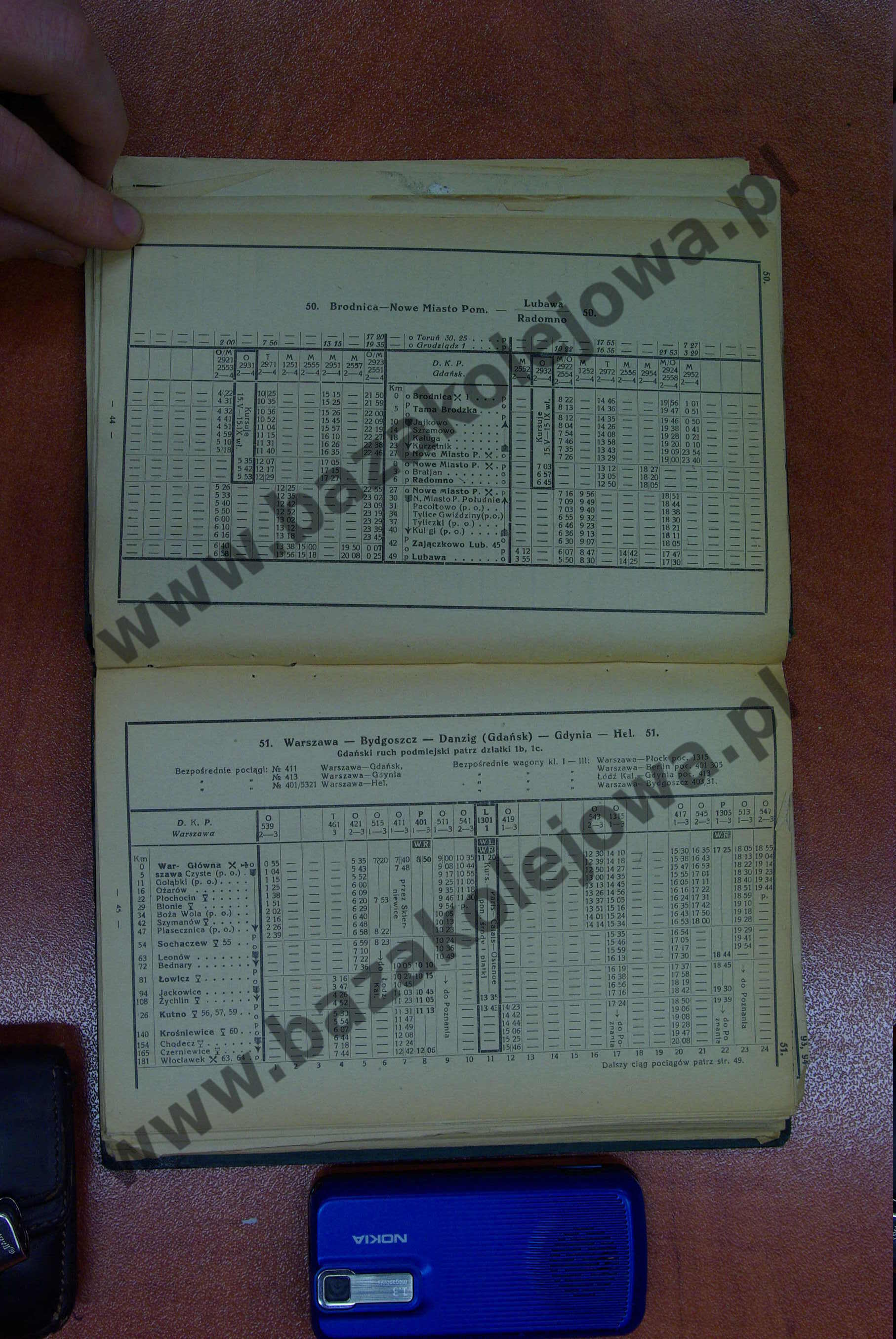 Tab. 50: Brodnica – Nowe Miasto Pom. – Lubawa/Radomno (RJP: Polska, lato 1929)