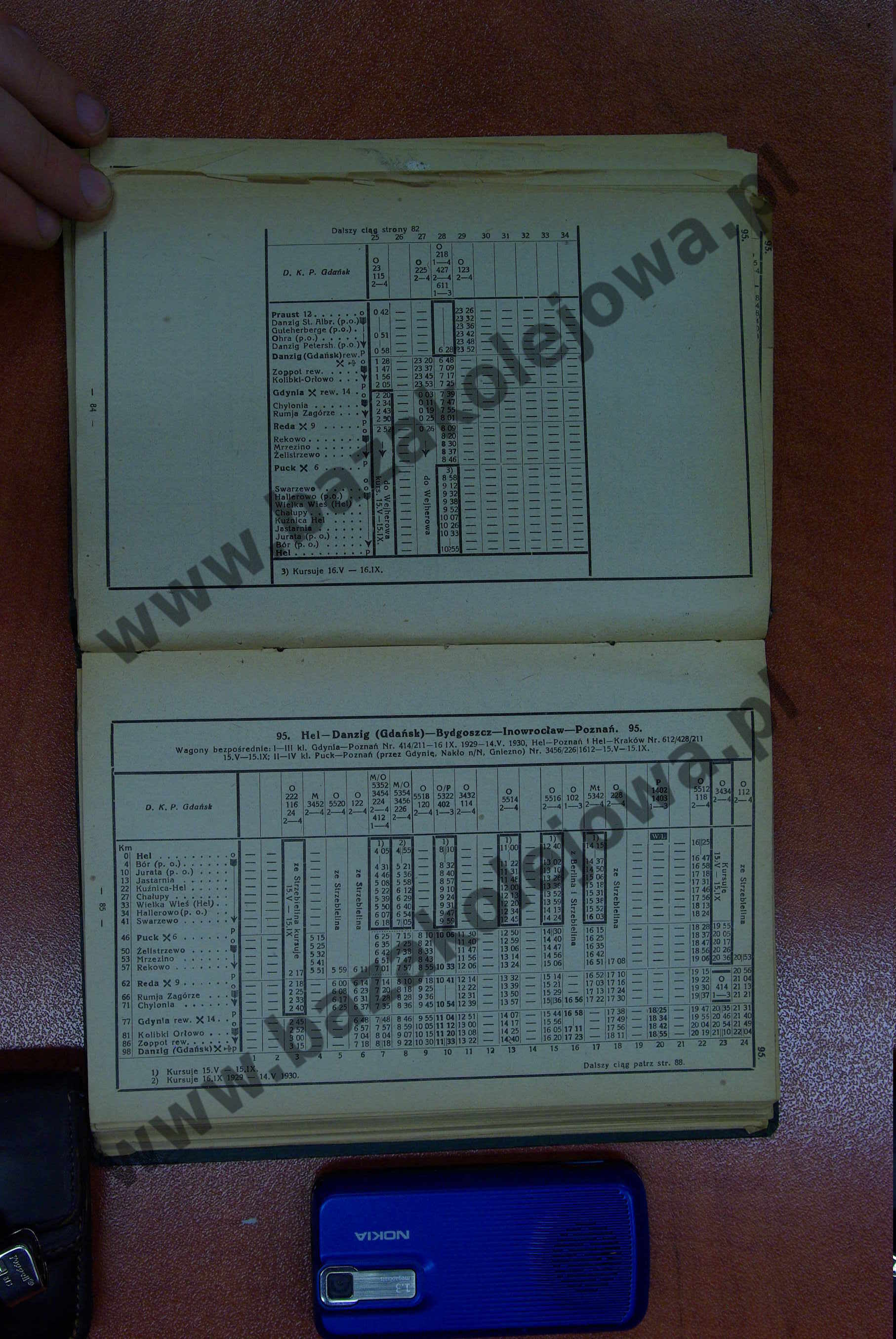 Tab. 95: Poznań – Inowrocław – Bydgoszcz – Danzig (Gdańsk) – Gdynia – Hel (RJP: Polska, lato 1929)