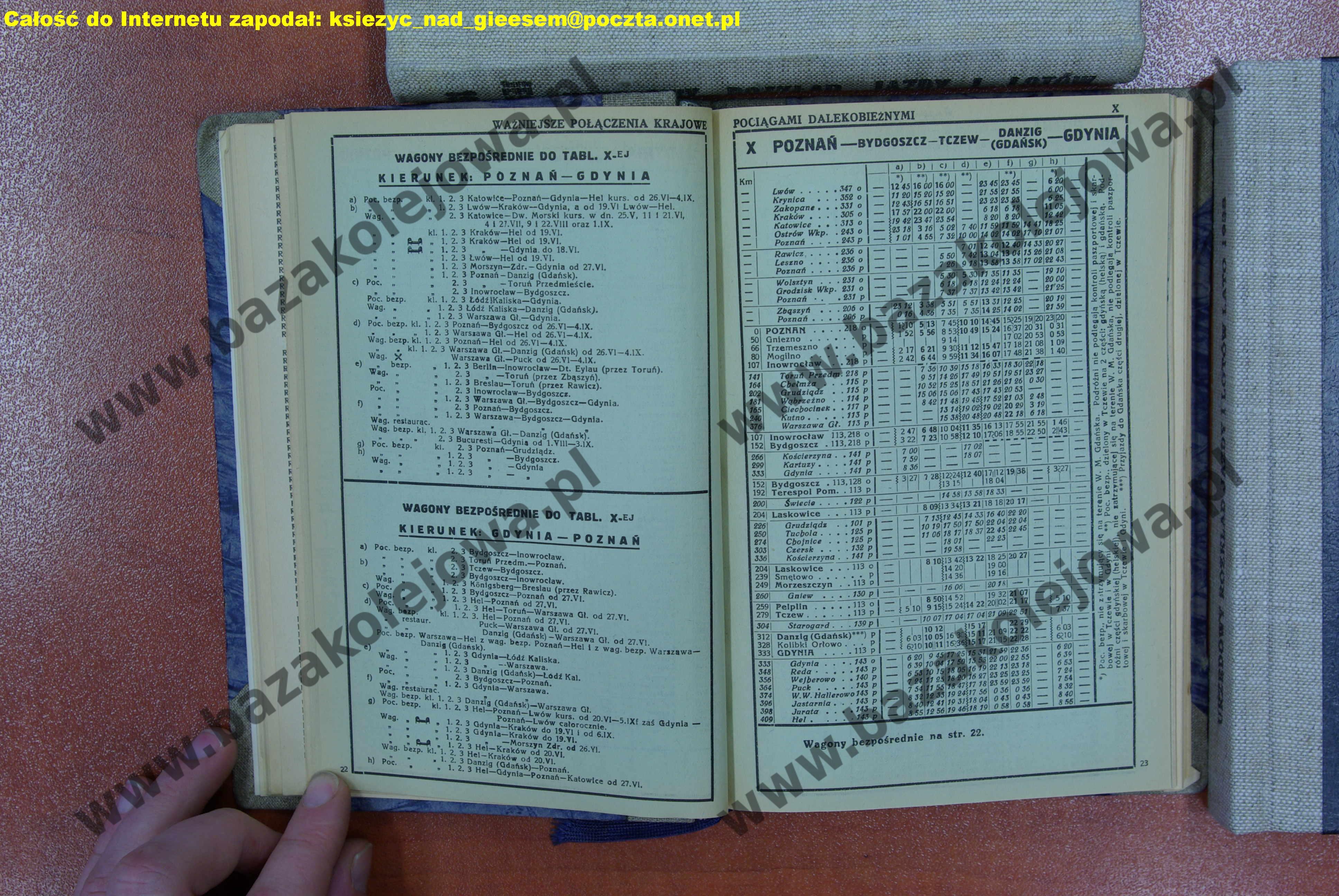 Tabela X: Gdynia – Danzig (Gdańsk) – Tczew – Bydgoszcz – Poznań