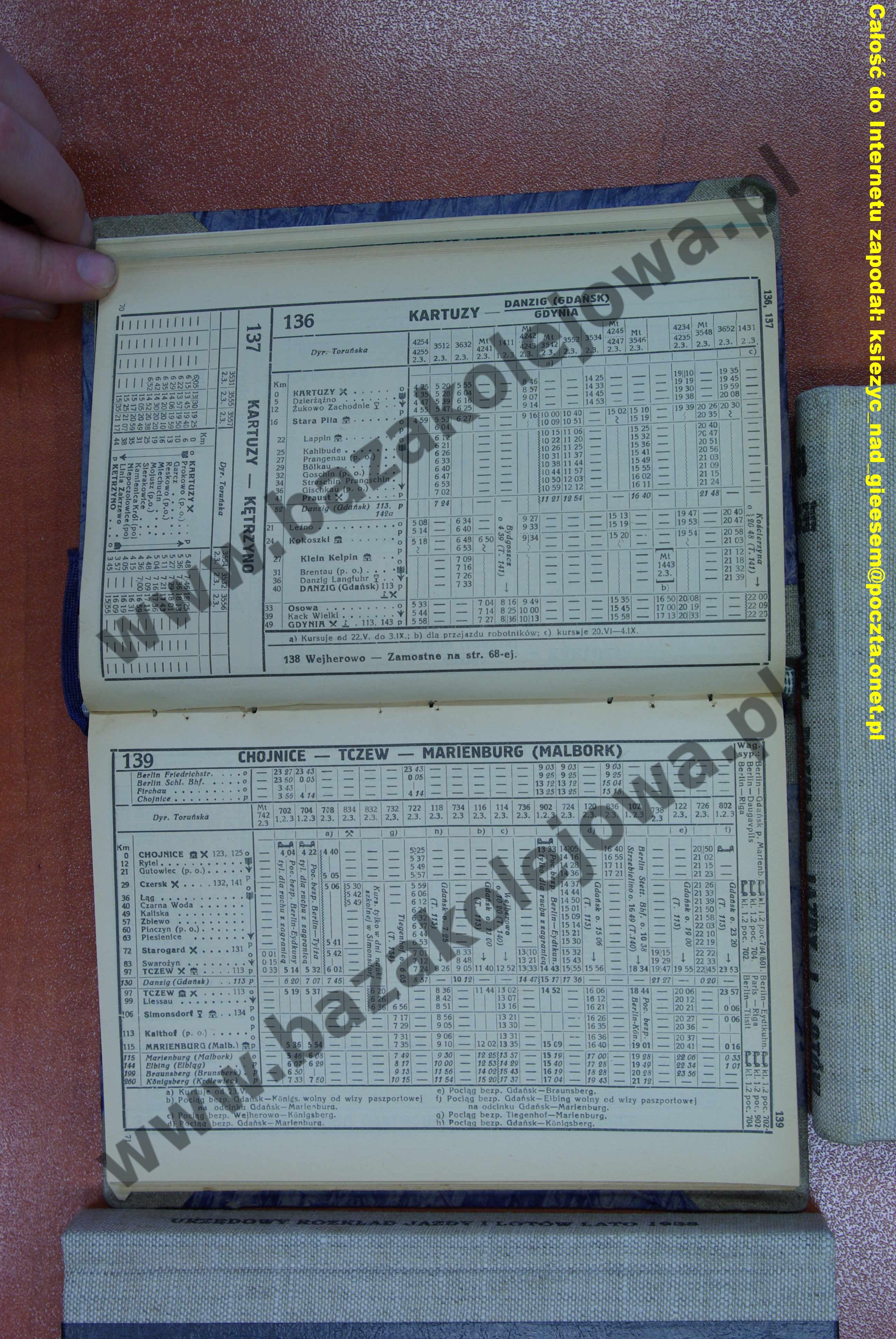 Tab. 139: Chojnice – Tczew – Mareinburg (Malbork) (RJP: Polska, lato 1937)