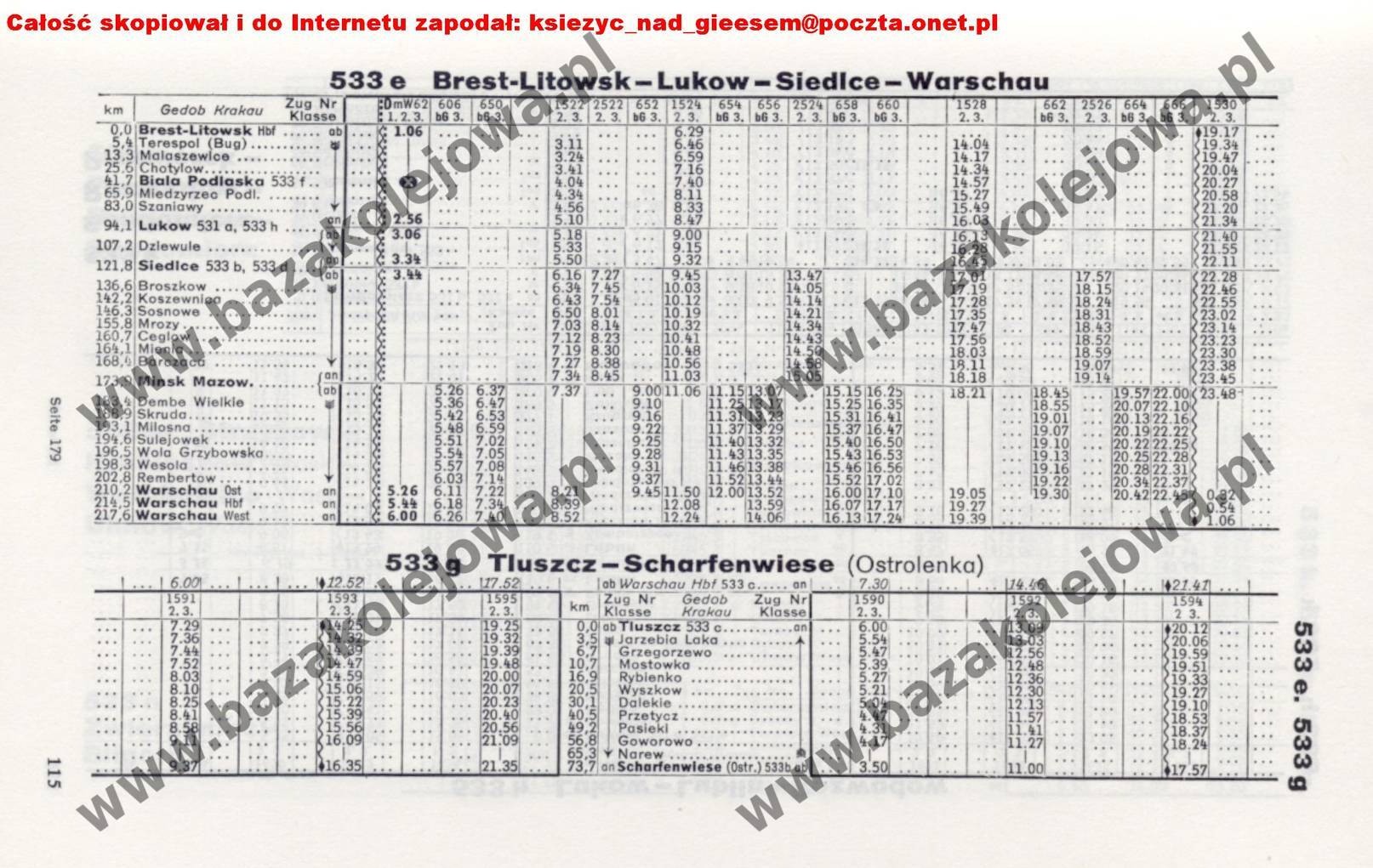 Tabela 533e: Warschau – Siedlce – Lukow – Brest-Litowsk