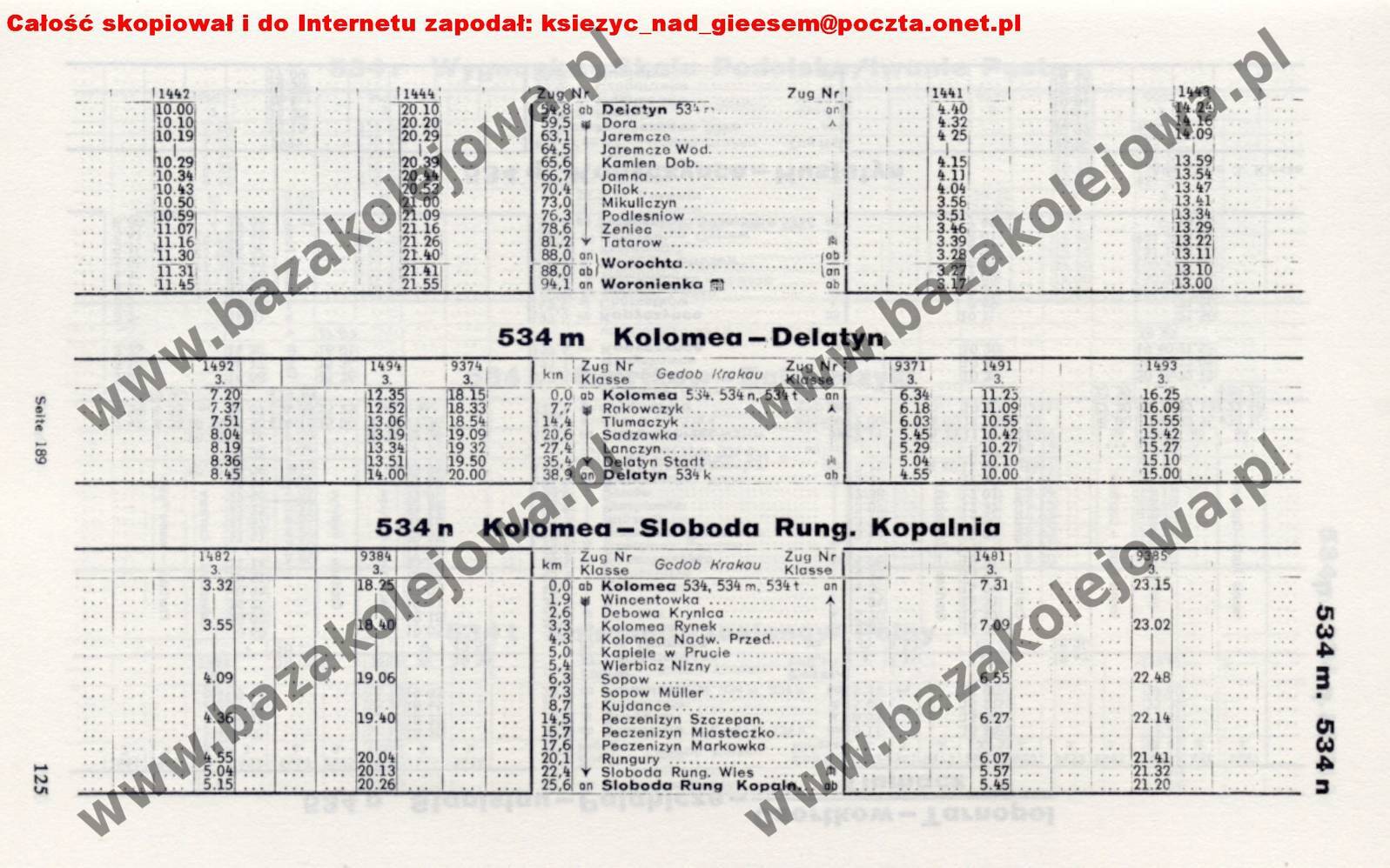 Tab. 534k: Stanislau – Worochta – Woronienka (RJP: Generalne Gubernatorstwo, zima 1942/1943)