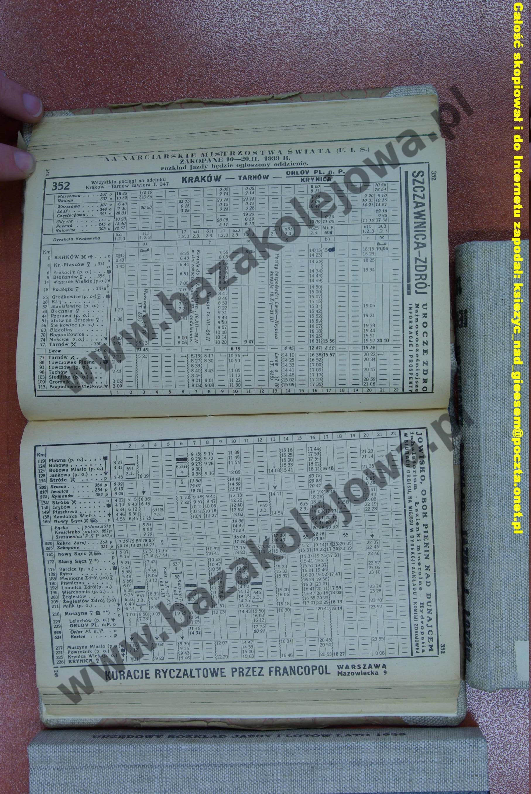 Tab. 352: Kraków – Tarnów – Orlov Pl. n. P/Krynica (RJP: Polska, zima 1938/1939)