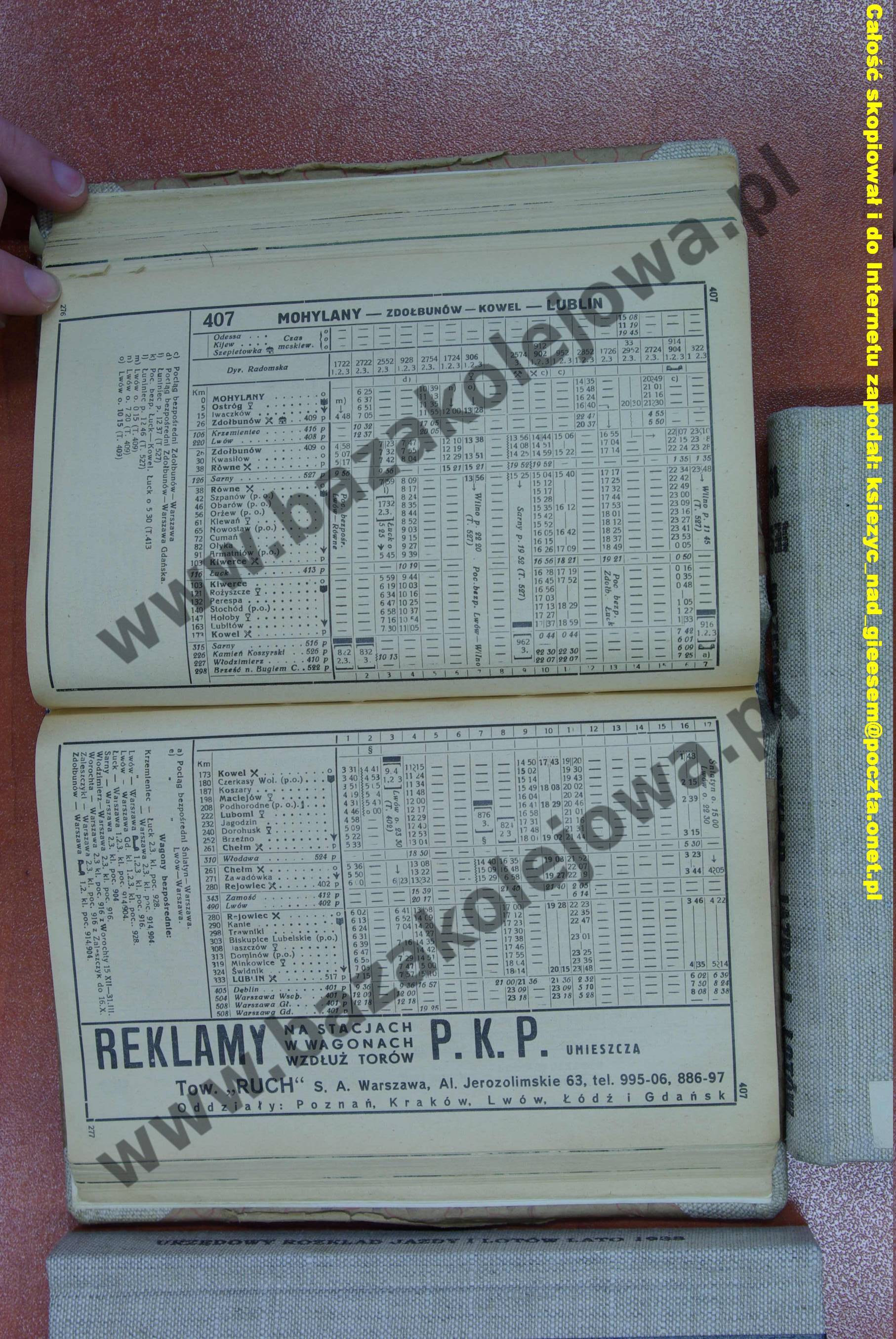 Tab. 407: Lublin – Kowel – Zdołbunów – Mohylany (RJP: Polska, zima 1938/1939)