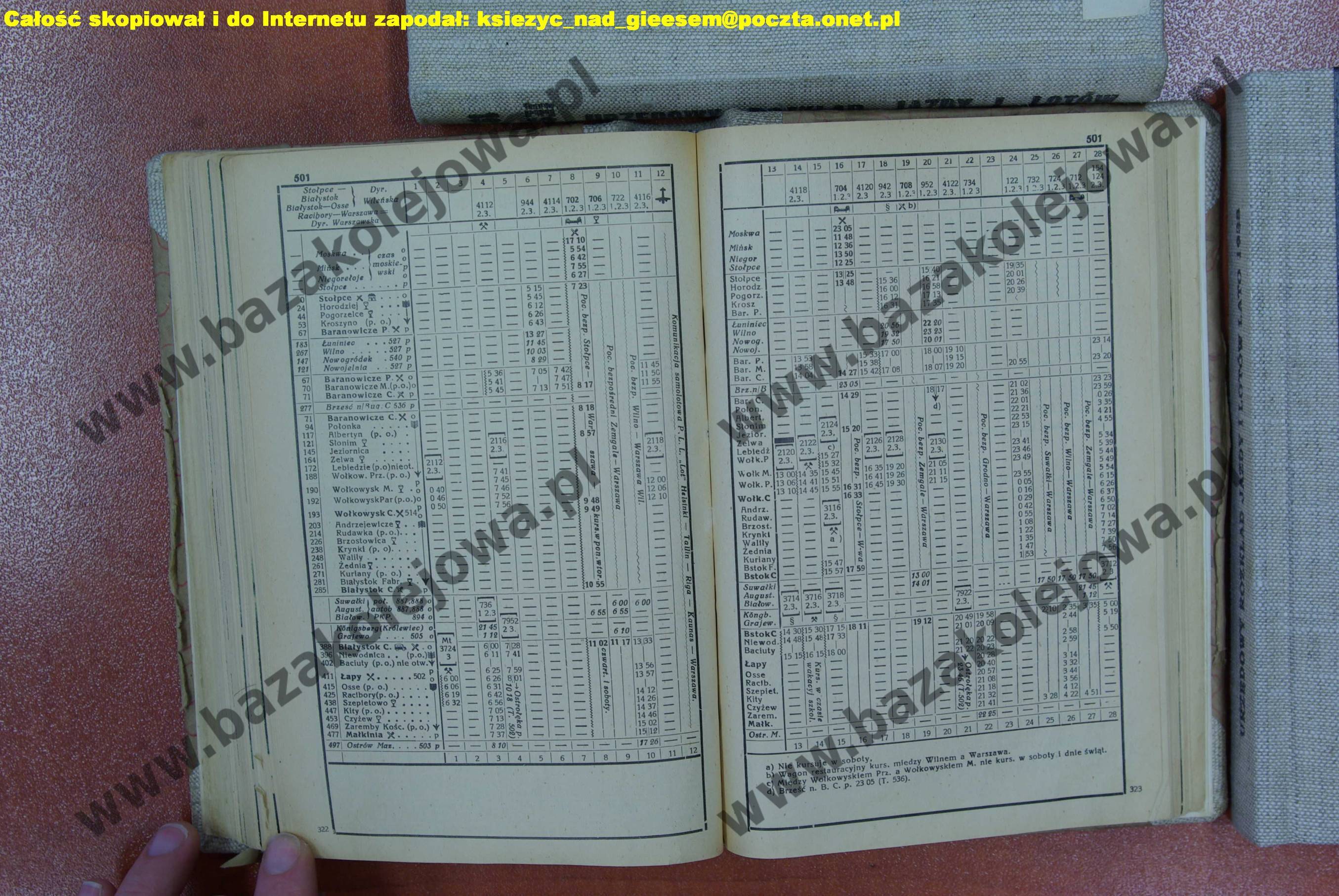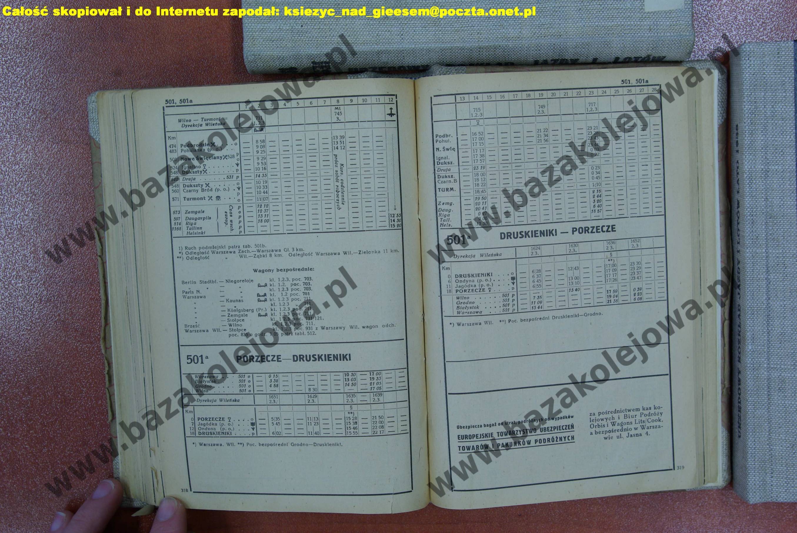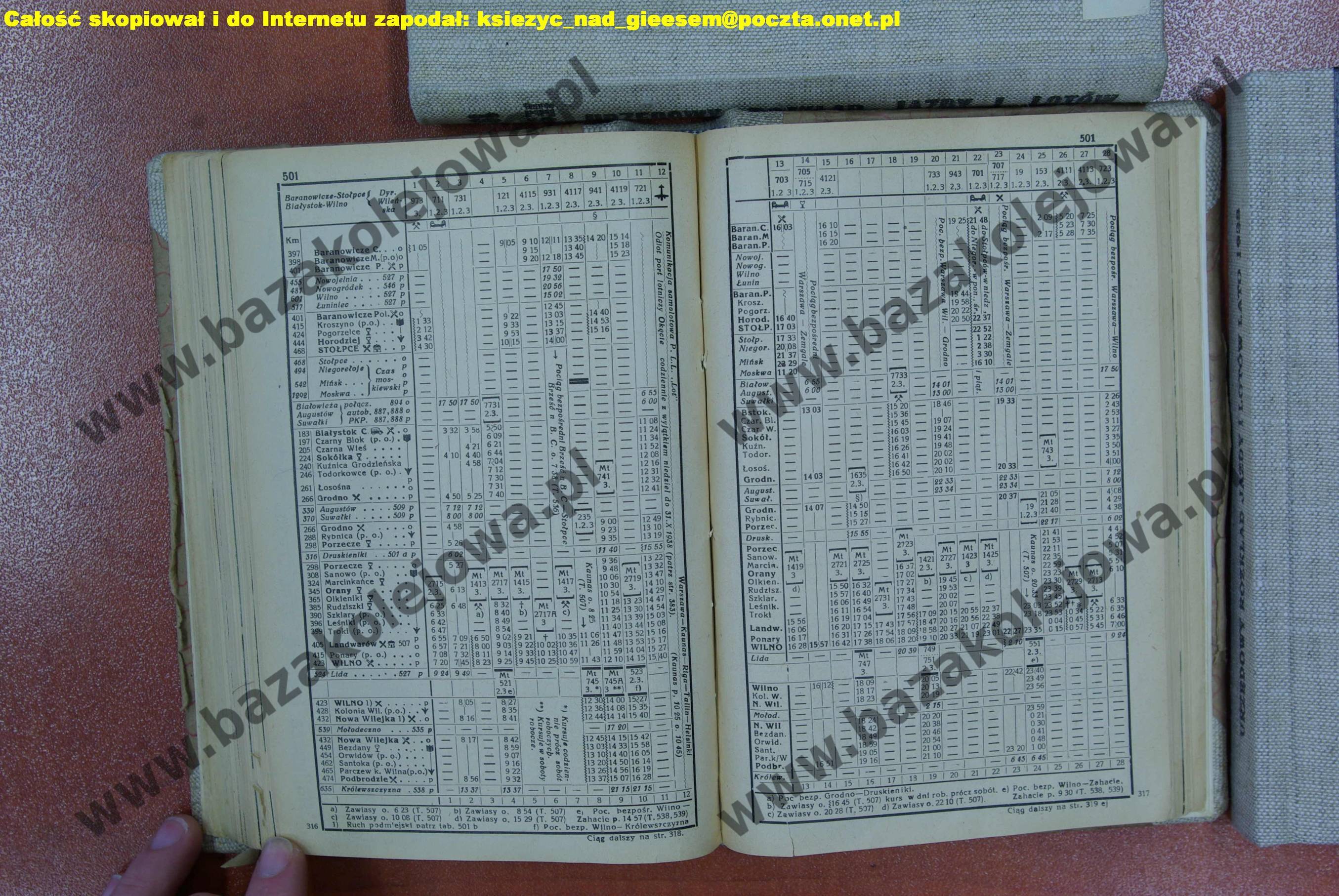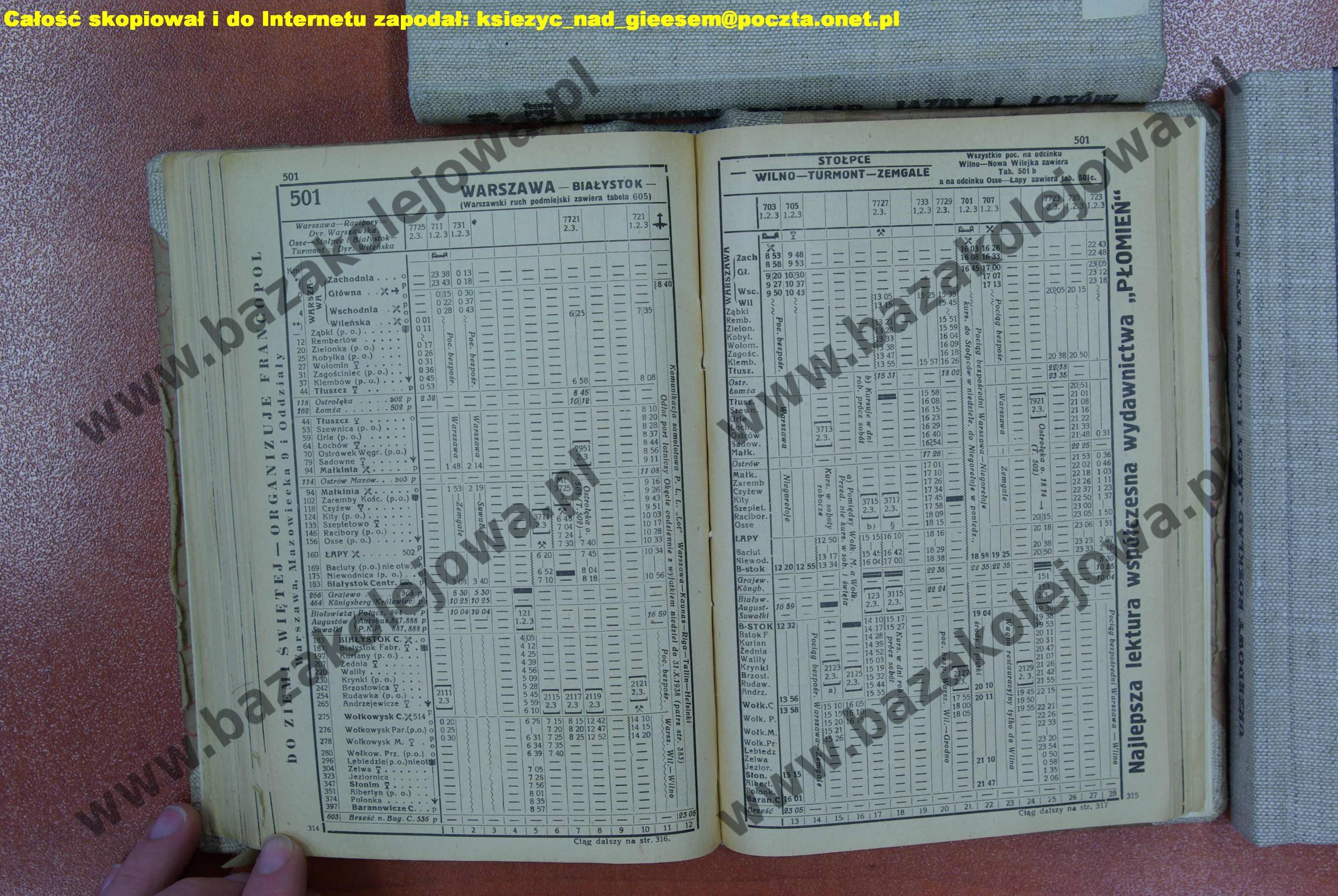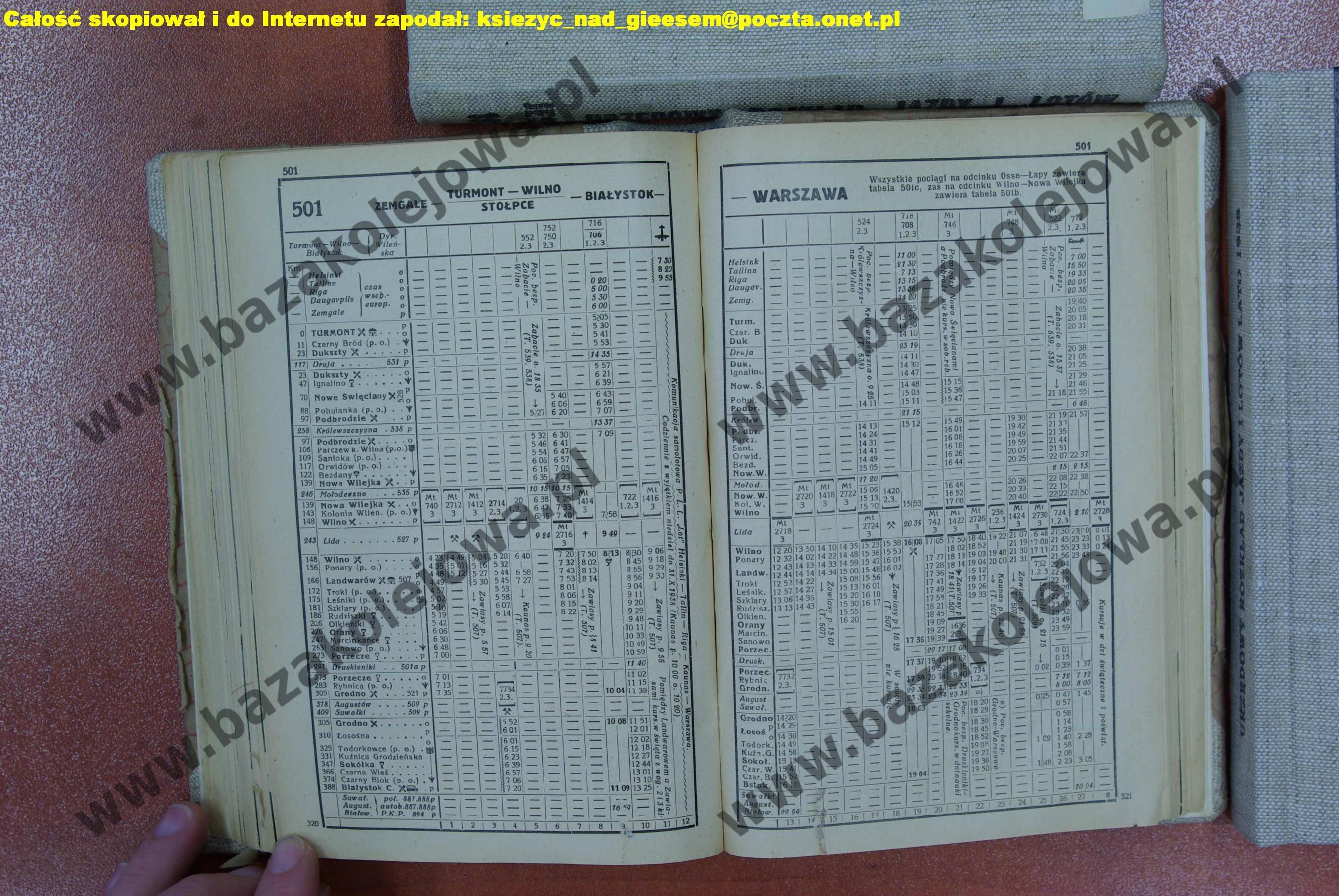 Tab. 501: Warszawa – Białystok – Stołpce/(Wilno – Turmont – Zemgale) (RJP: Polska, zima 1938/1939)