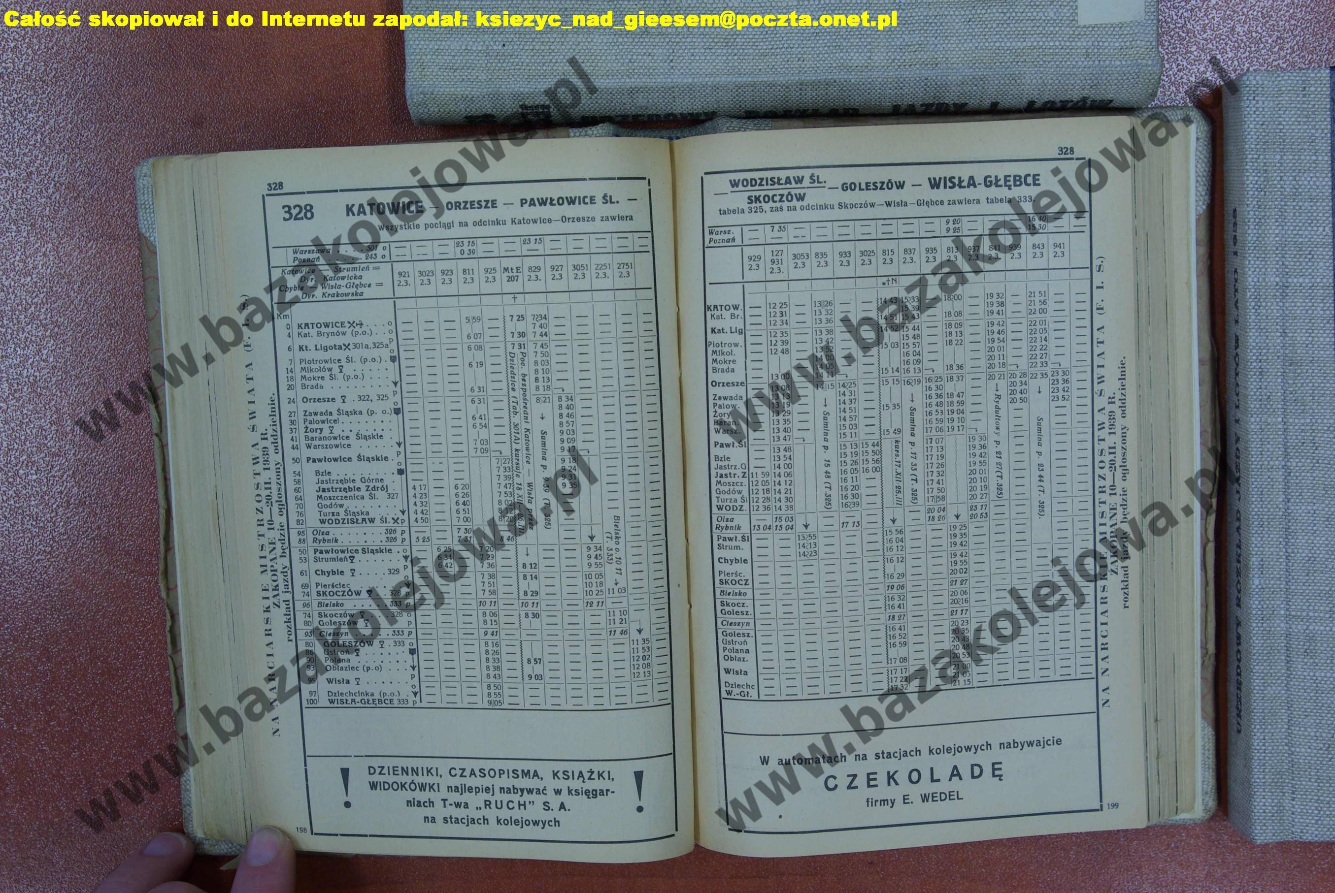 Tab. 328: Katowice – Orzesze – Pawłowice Śl. – Wodzisław Śl./Skoczów – Goleszów – Wisa Głębce (RJP: Polska, zima 1938/1939)